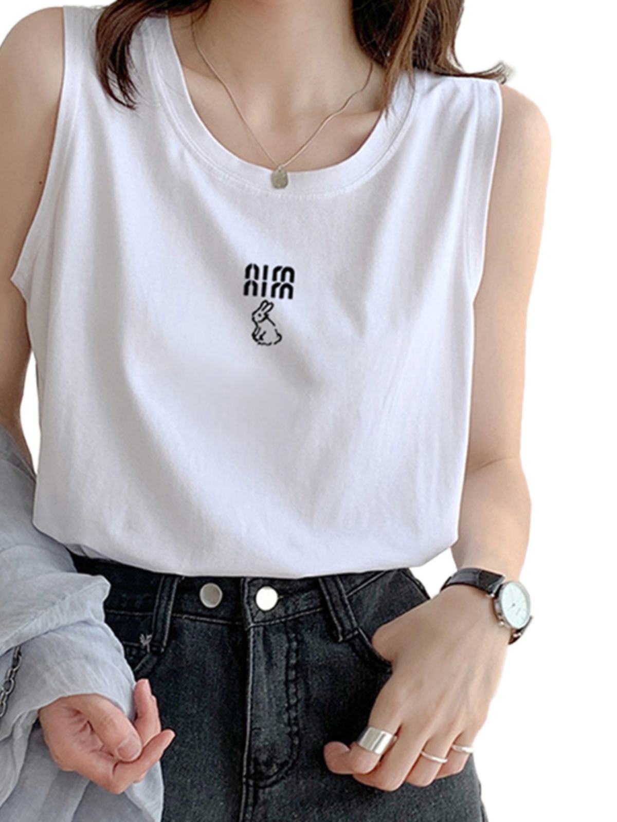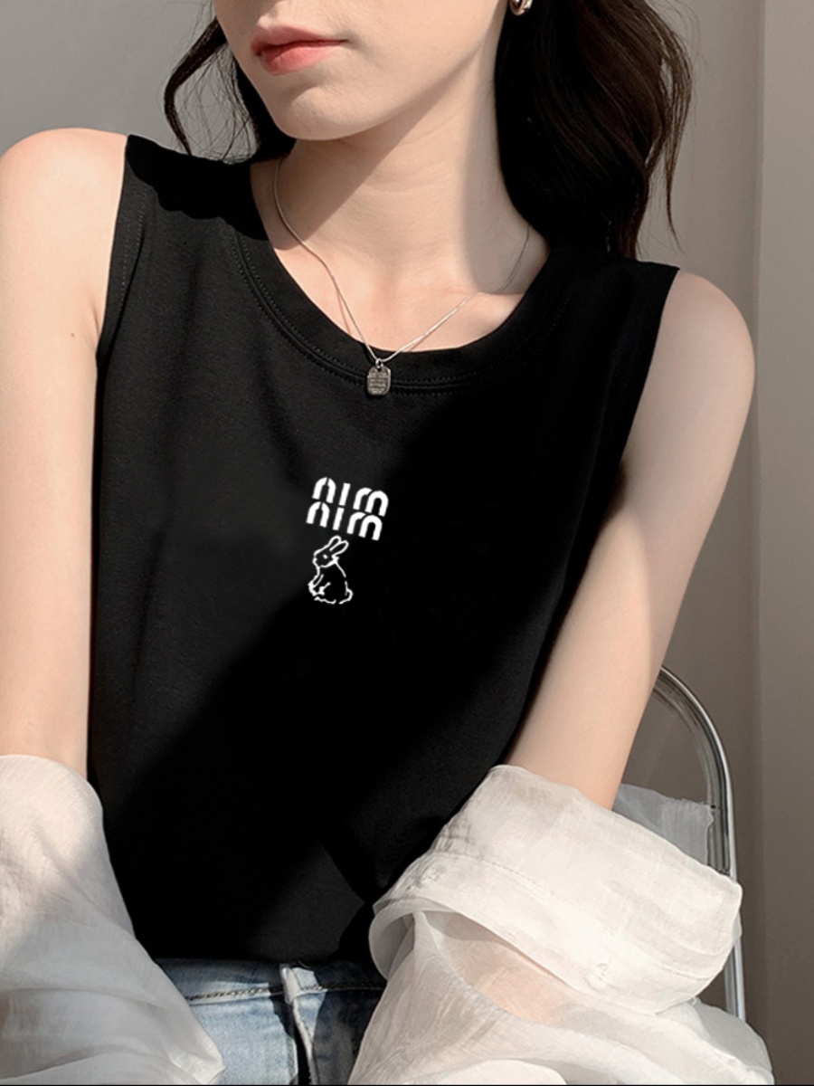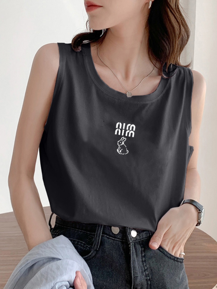 American Retro Stylish Niche Loose Sports Vest Women's Plus Size Plus Size Ladies Slim Looking Belly Covering Sleeveless T-shirt Women's Fashion