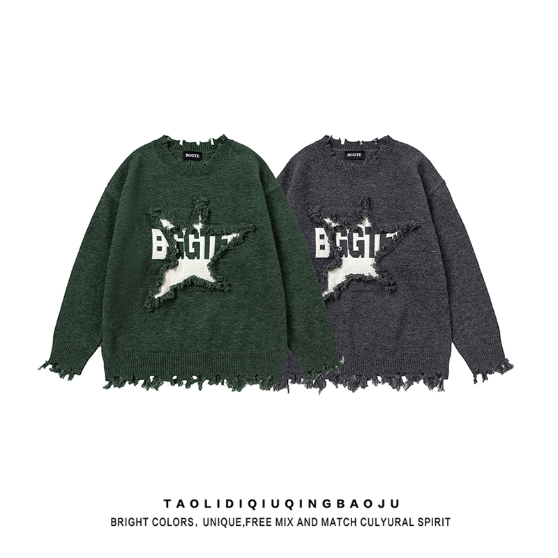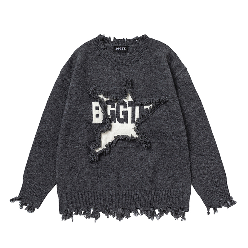 American Retro XINGX Worn Lazy Sweater Women's Winter High Street Loose Couple Casual Gray Knitwear Tide