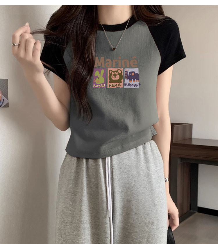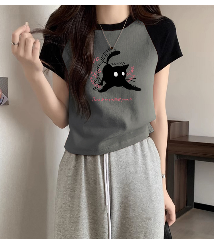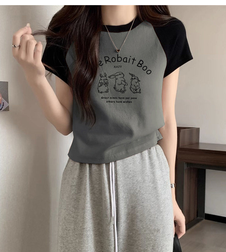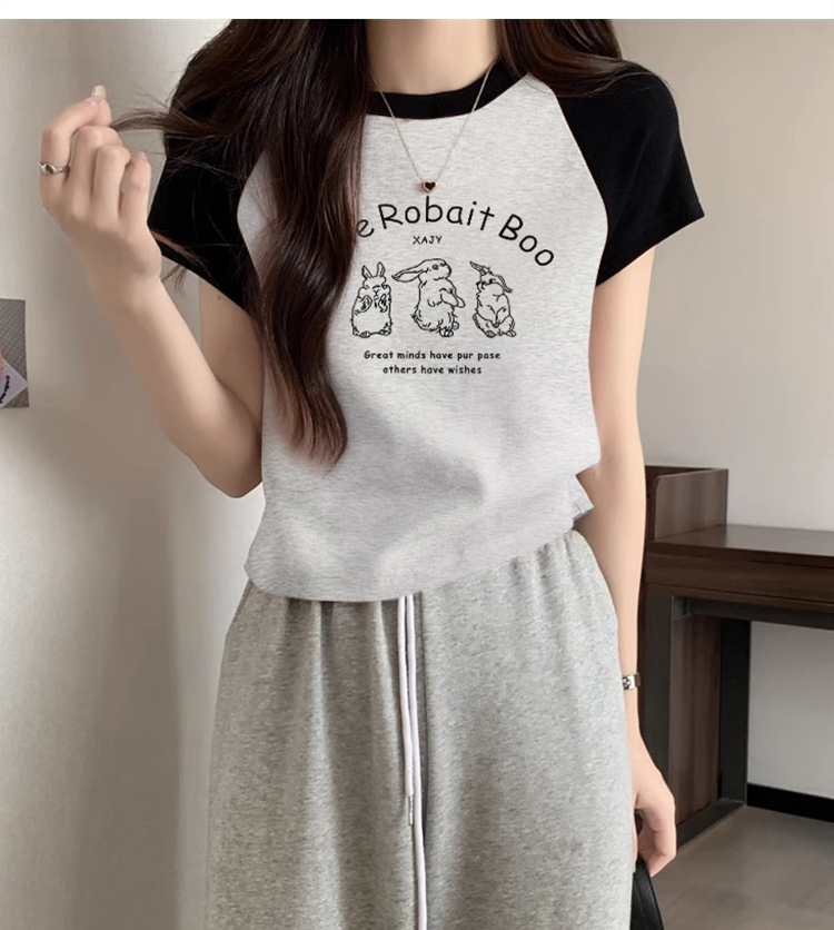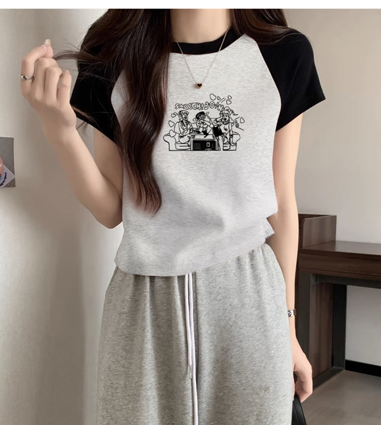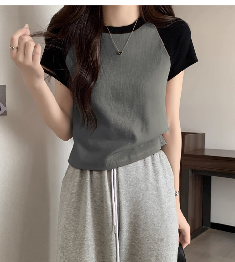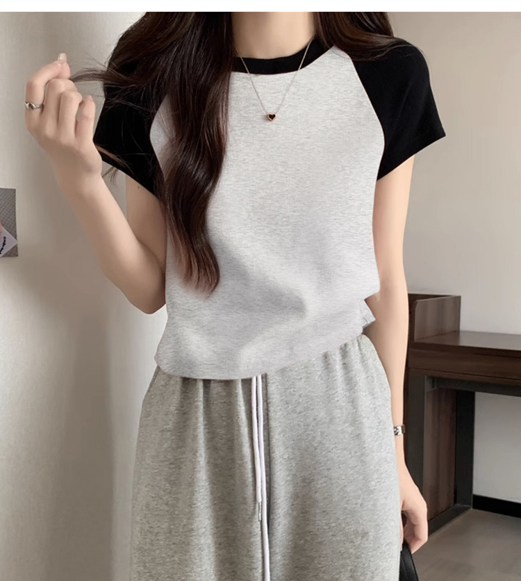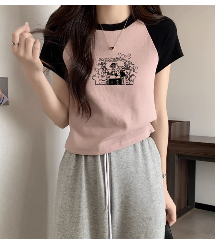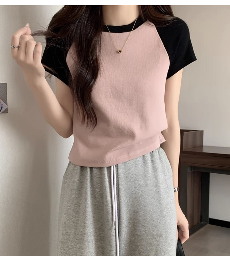 American Short Sleeve T-Shirt Women's Summer 2025 New Arrival Raglan Sleeve Pure Cotton Silm Short Contrast Color Half Sleeve Pink Tops