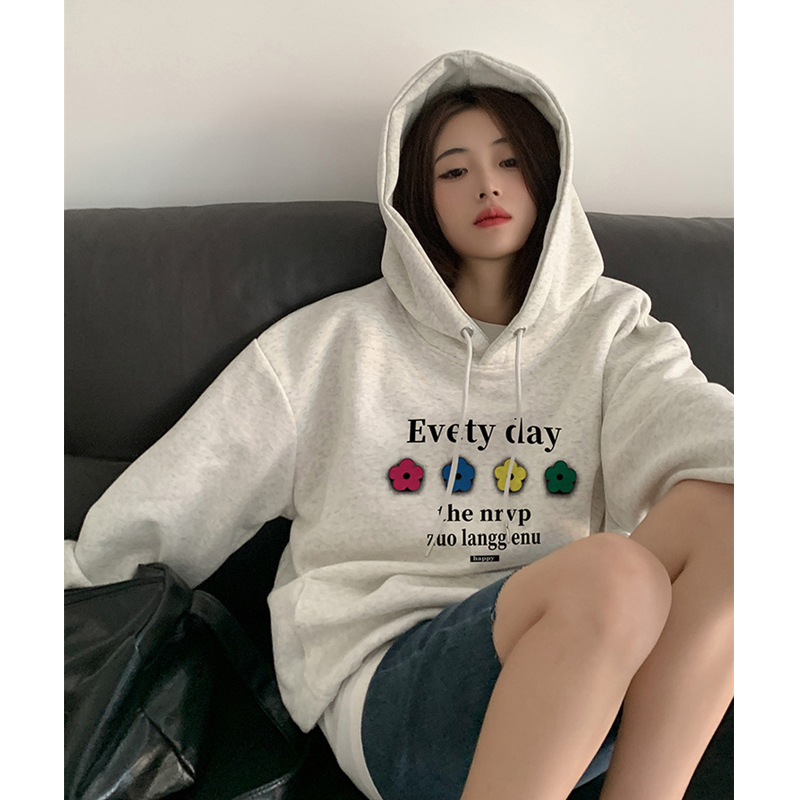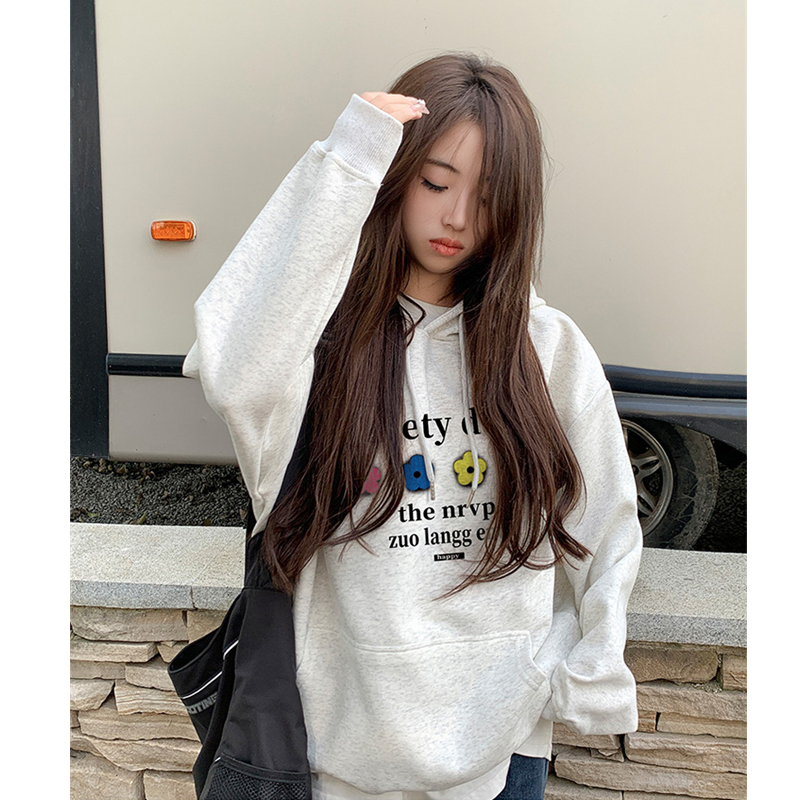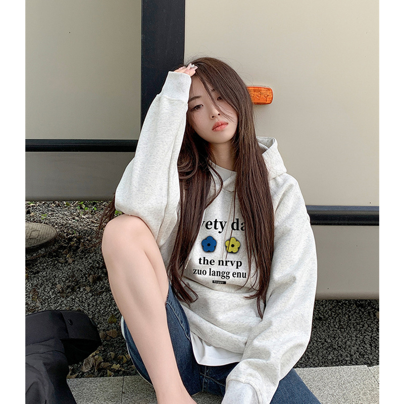 American Style Chinese Fad Velvet Padded Hooded Sweatshirt Female Couple 2024 Autumn and Winter Thin Niche Design Easy Matching Coat