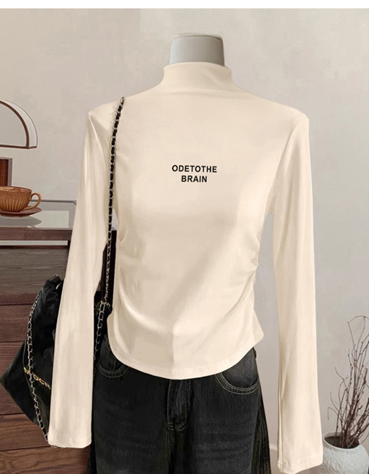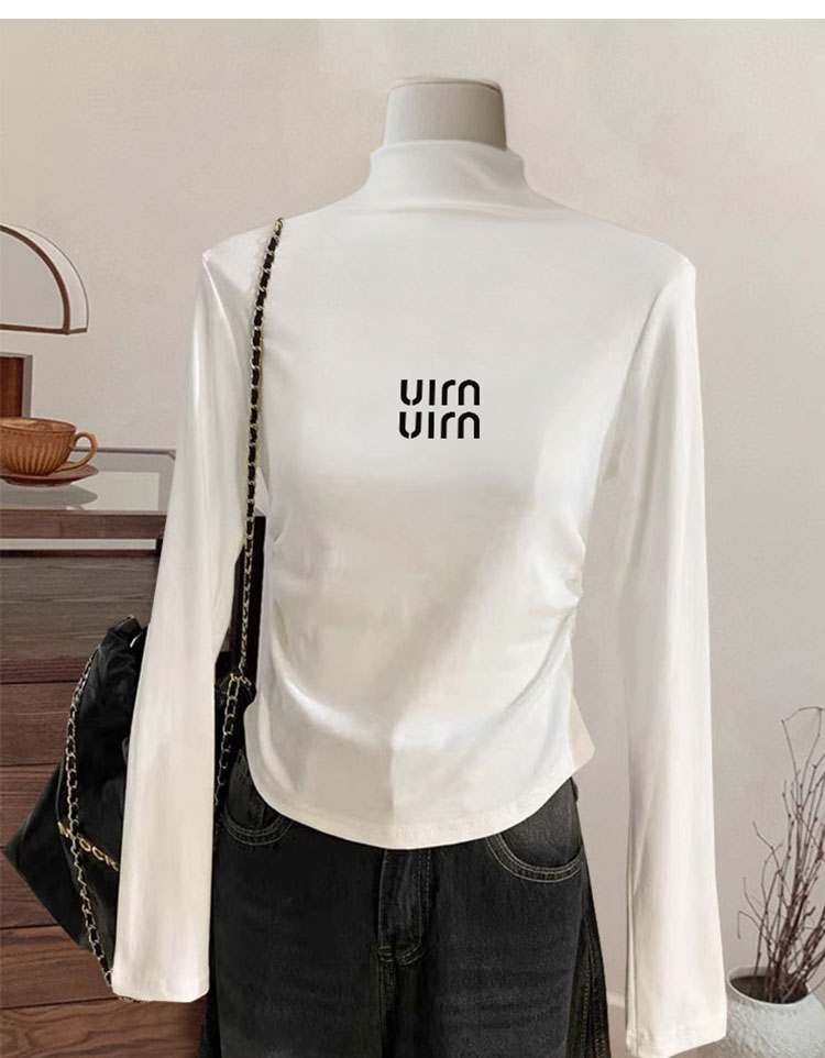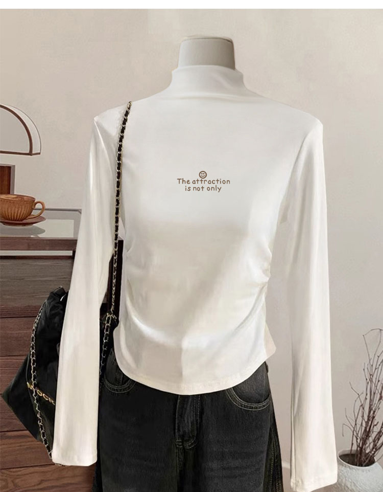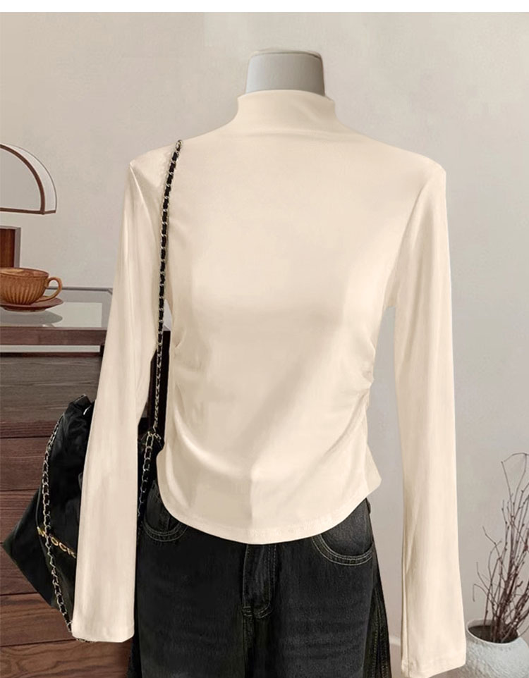 American-Style Double-Sided Dralon Long Sleeves Bottoming Shirt Women's Autumn New Arrival Pure Desire Style Half Turtleneck Silm Slimming Short Top