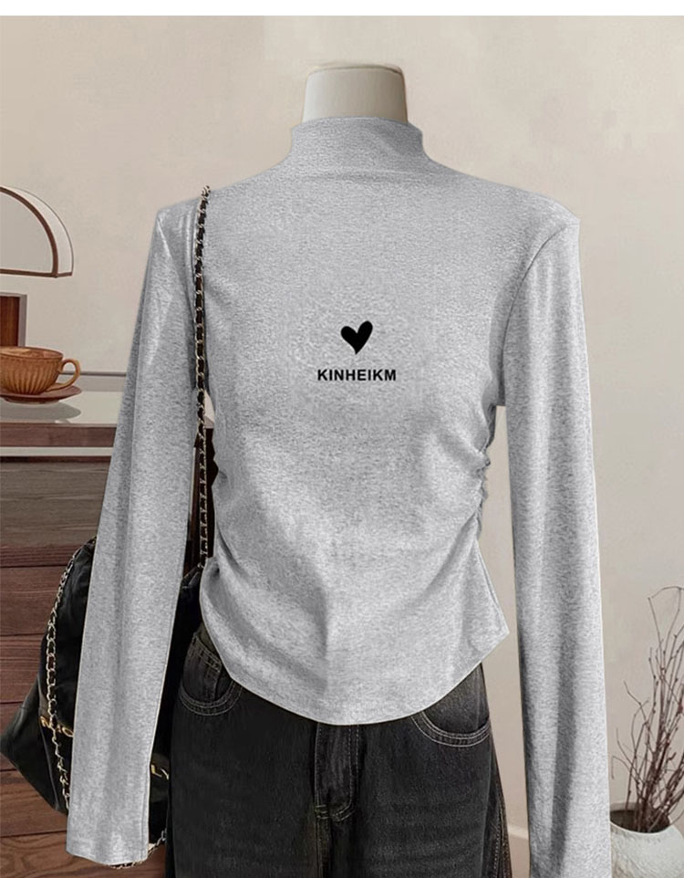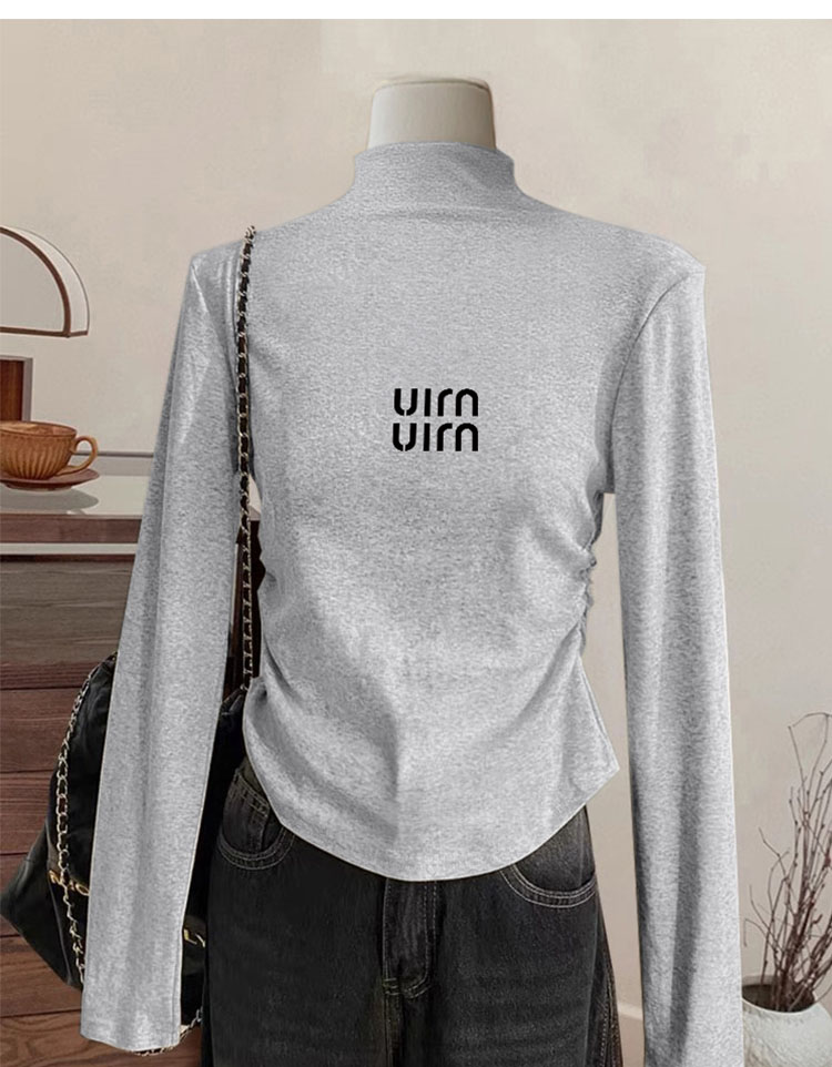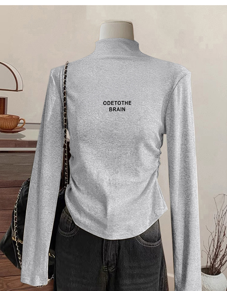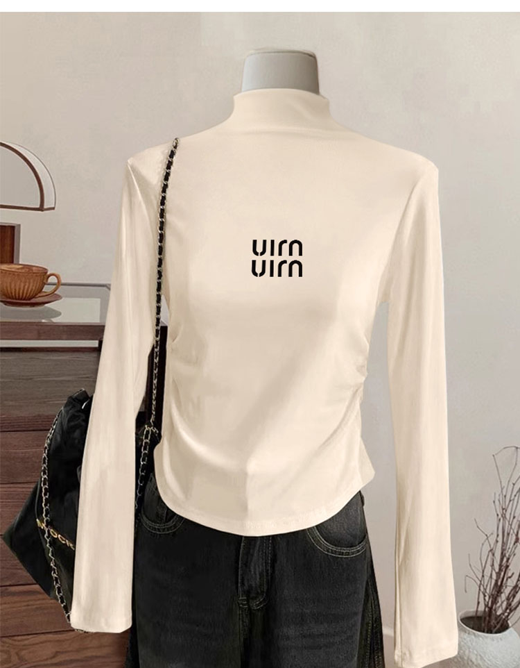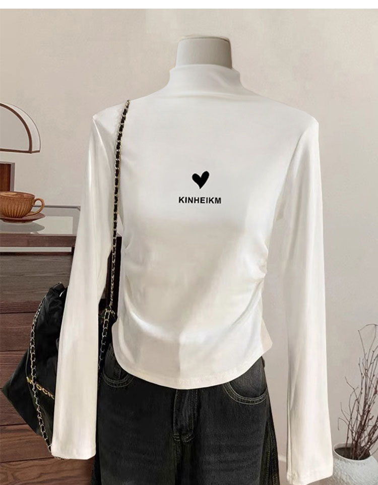 American-Style Double-Sided Dralon Long Sleeves Bottoming Shirt Women's Autumn New Arrival Pure Desire Style Half Turtleneck Silm Slimming Short Top