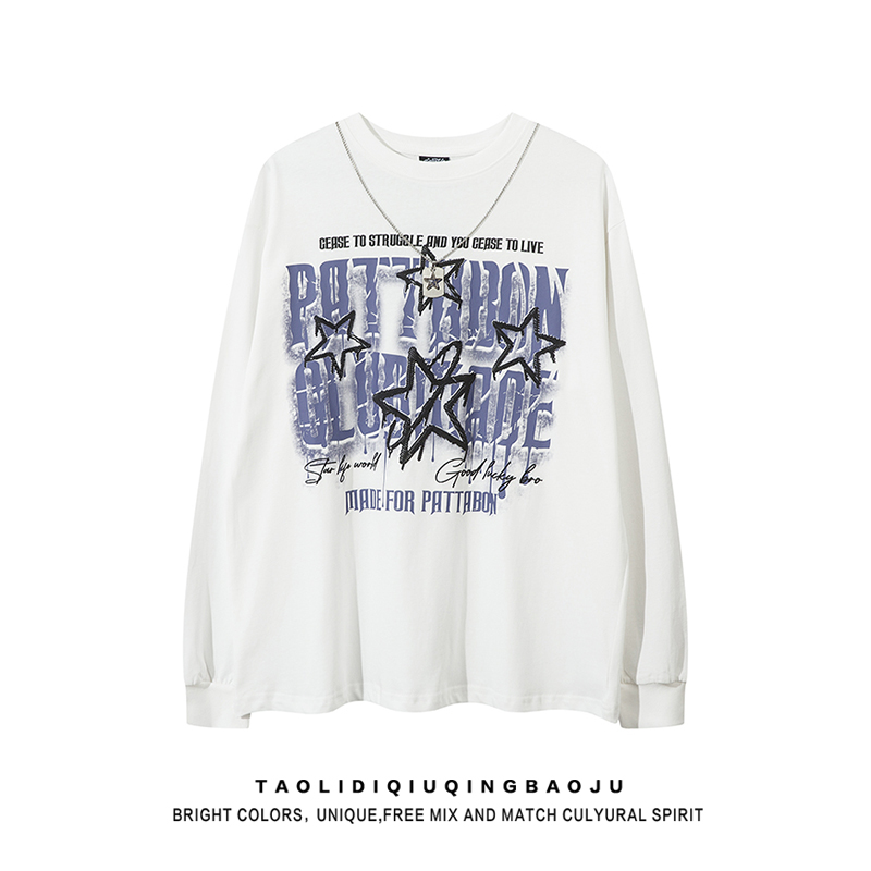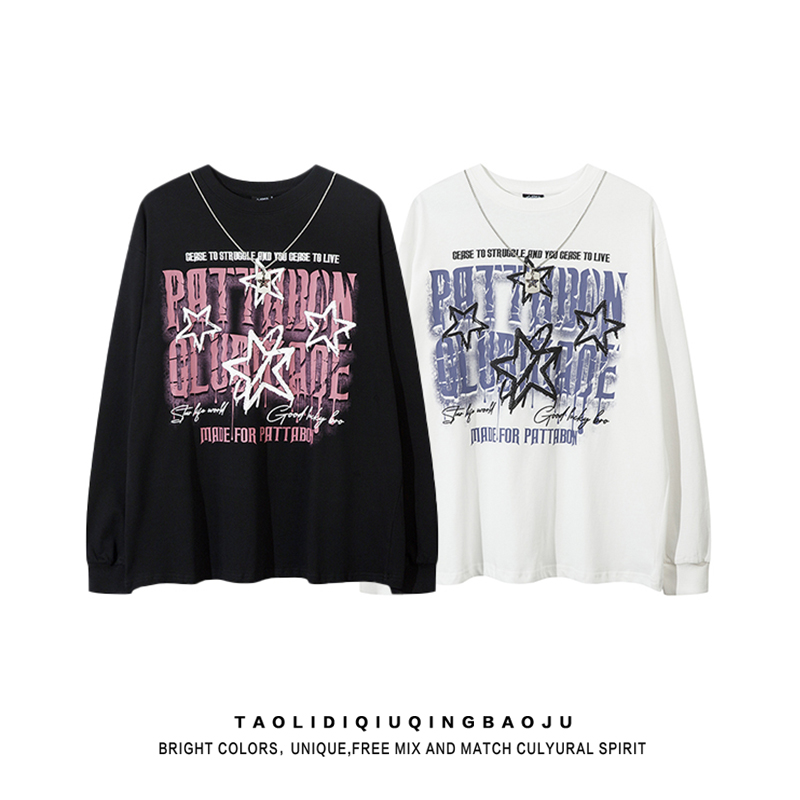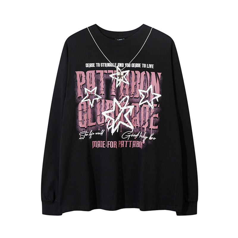 American Style Hip Hop Letter XINGX Necklace Long Sleeves T-shirt Female Autumn Fashion Brand Loose Street Casual T-shirt Tops