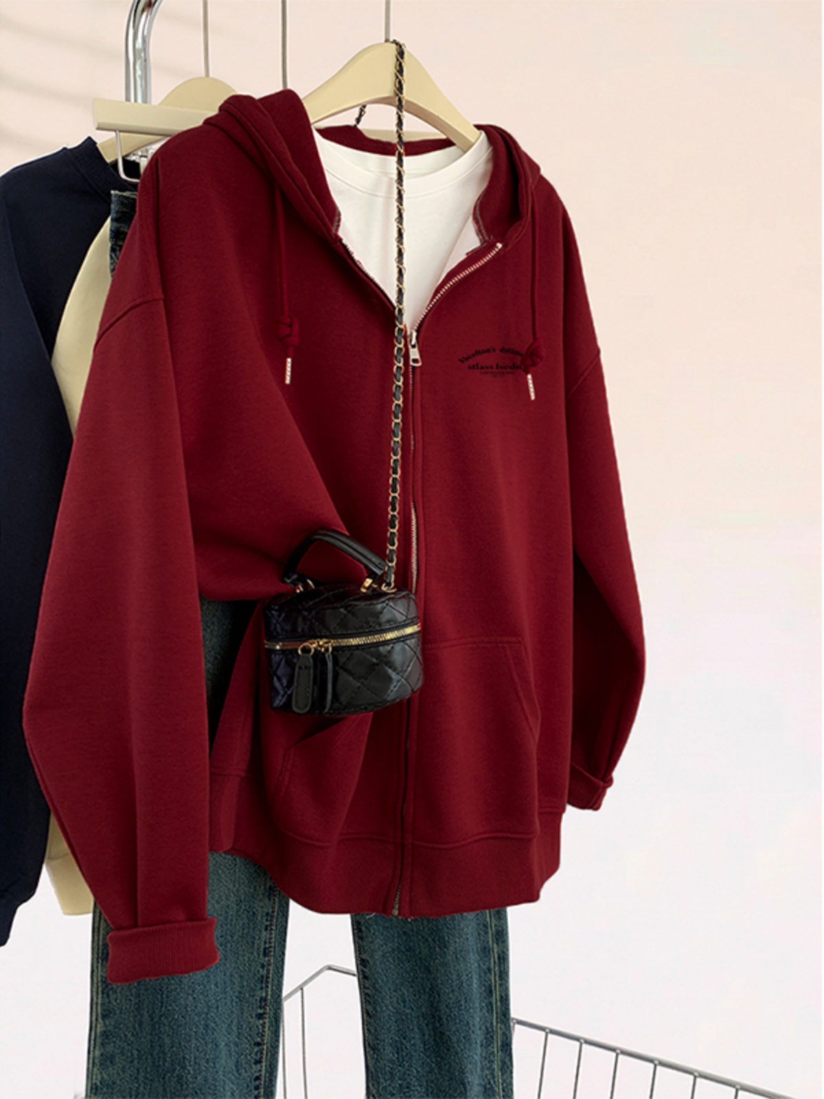 American Style Hooded Sweatshirt Women's Autumn and Winter Stylish plus Size Zipper Oversize Korean Style Idle Style Cardigan Outwear