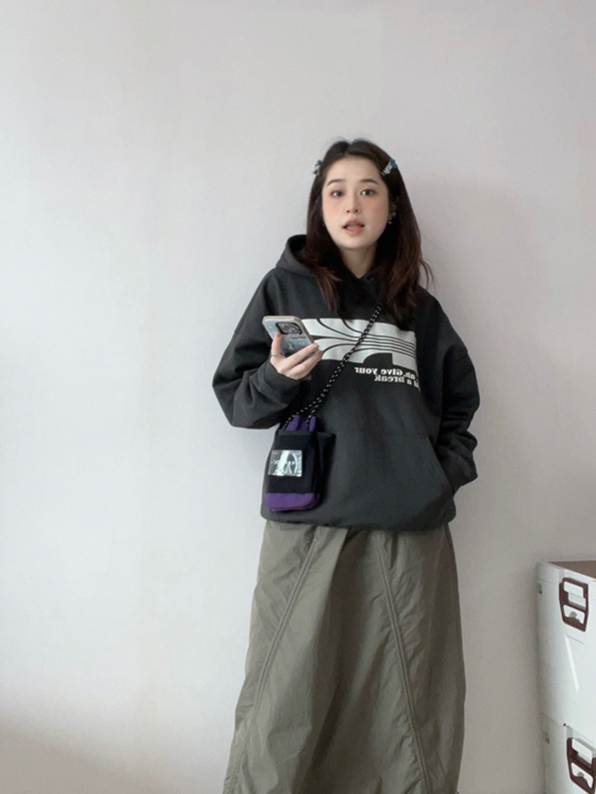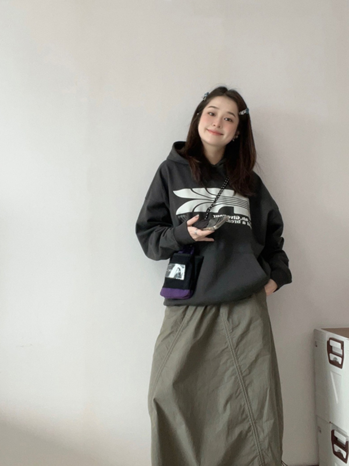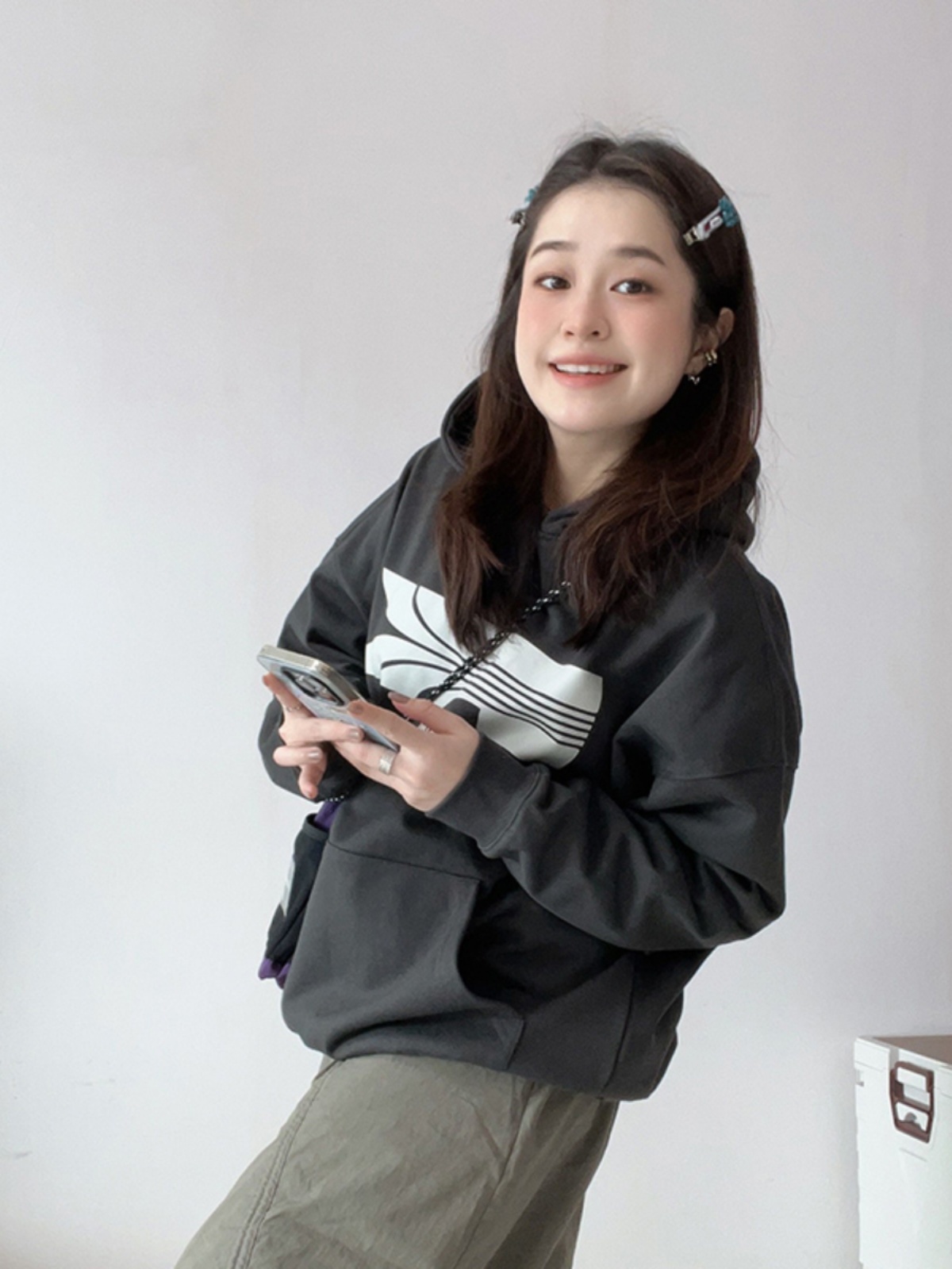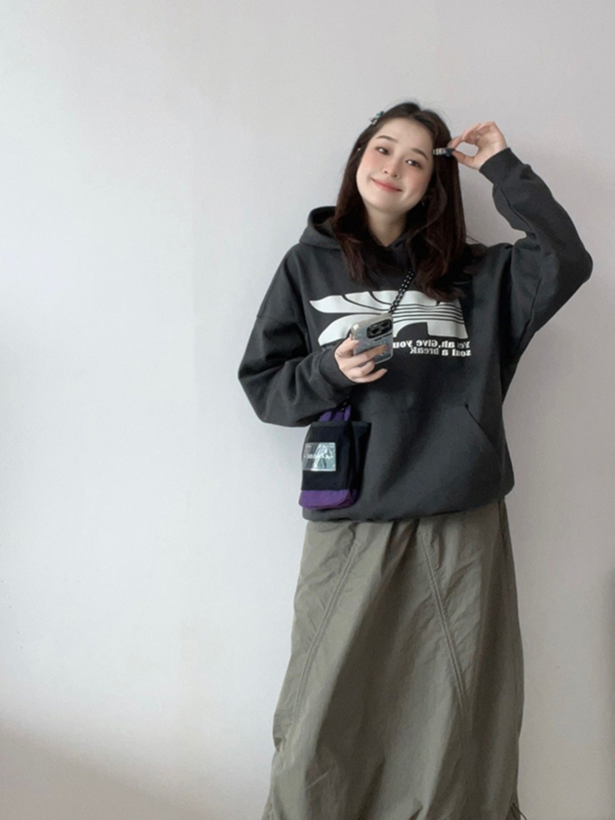 American-Style Lazy Chic Long Sleeves Sweatshirt Women's Spring and Autumn Fleece-lined Thickened Oversize Hooded Outwear Loose Tops