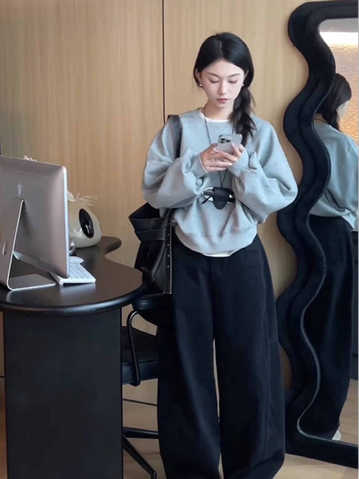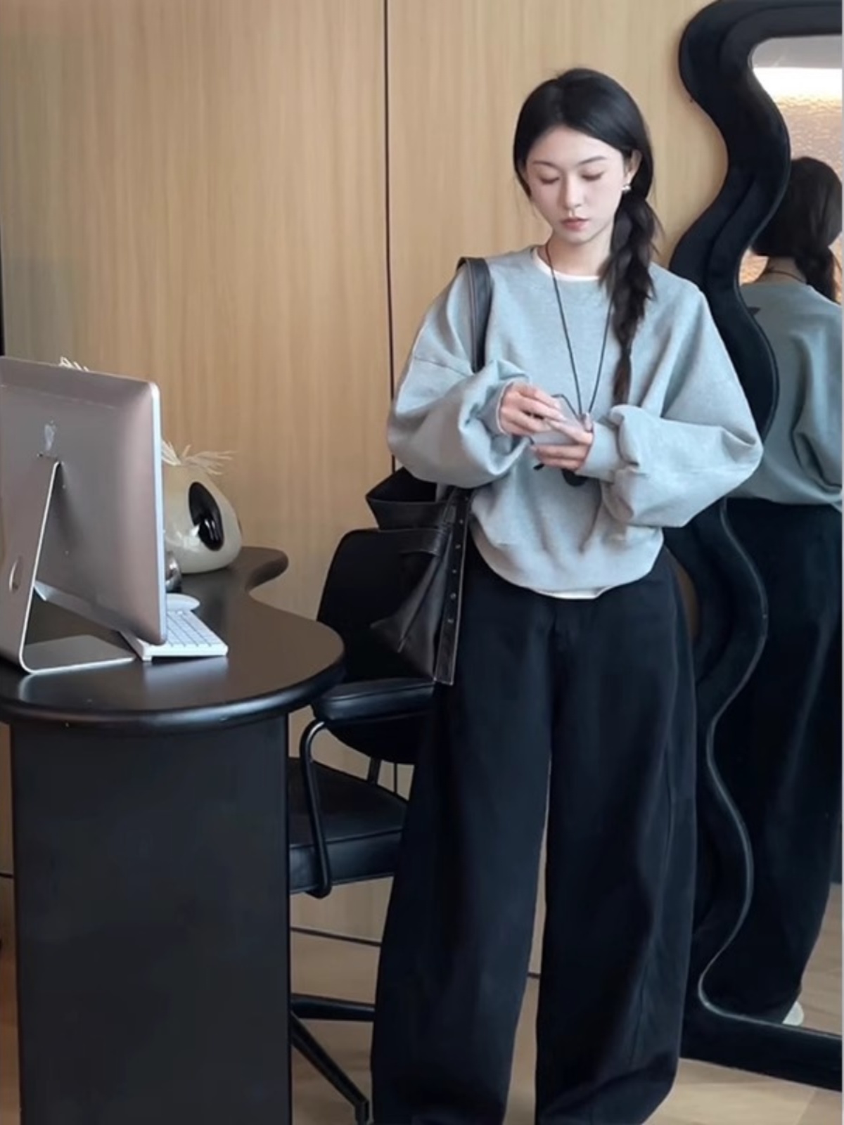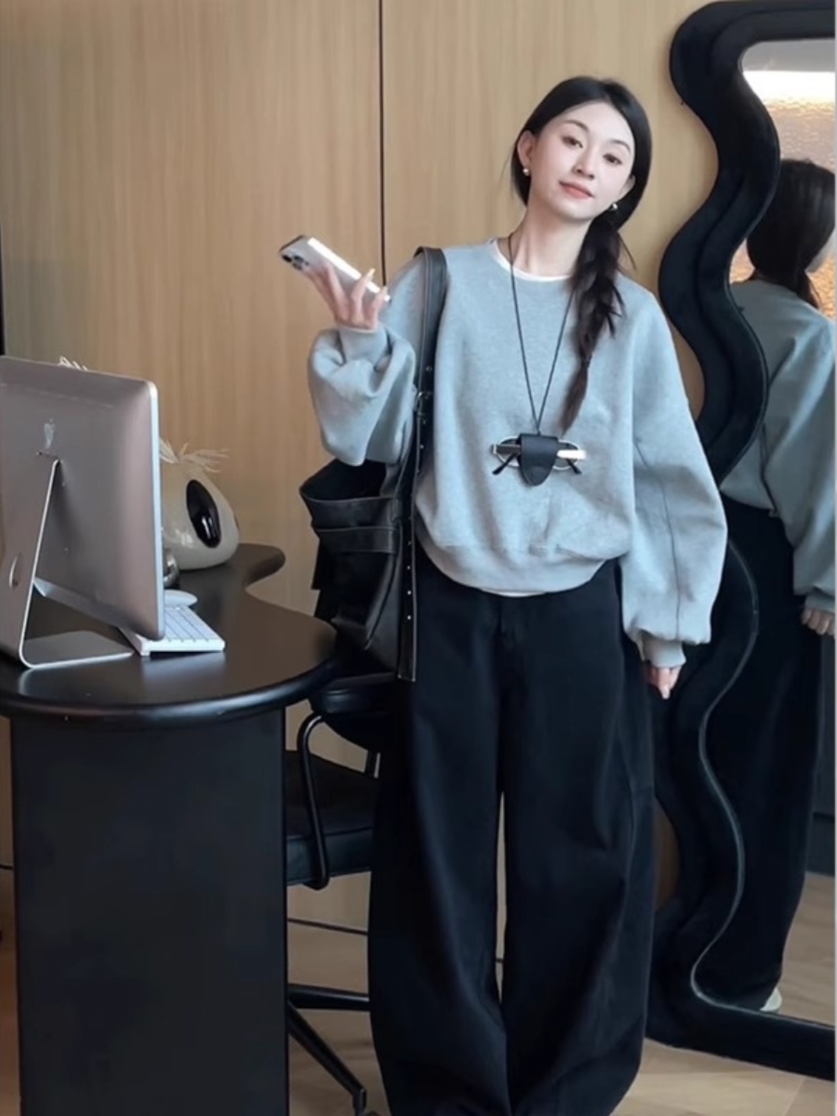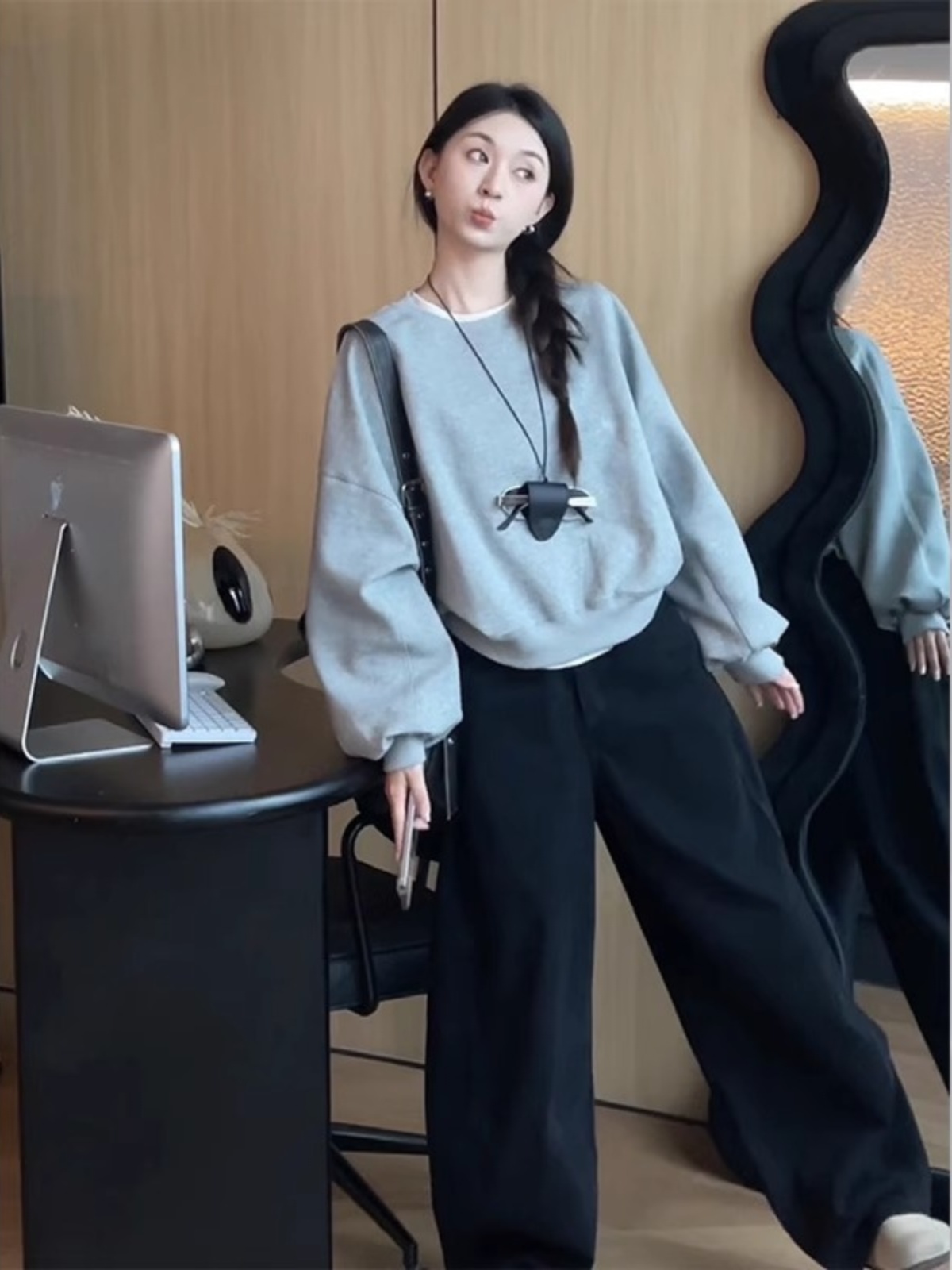 American Style Unique Chic Small Gray Spring and Autumn Women's Sweater Oversize American High Street Tops Women
