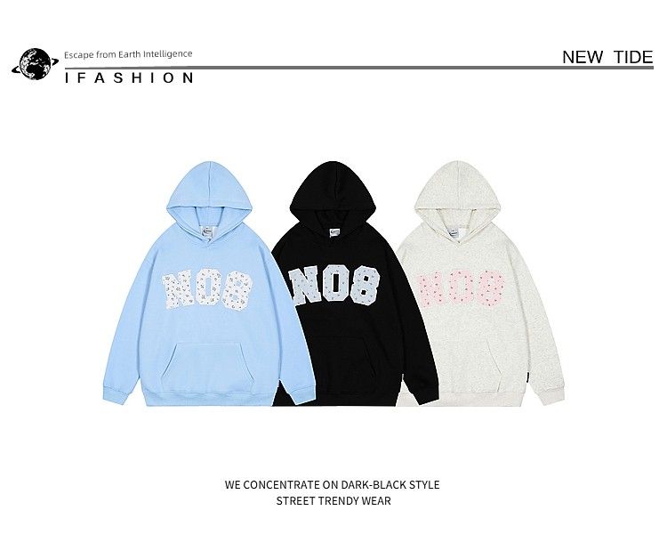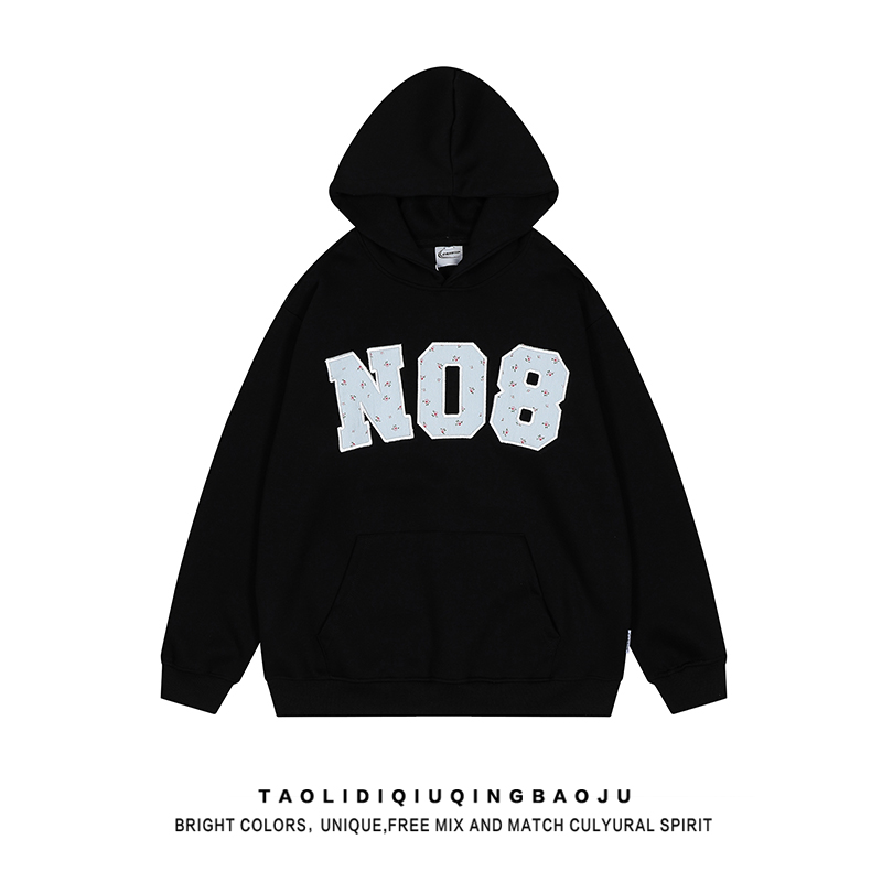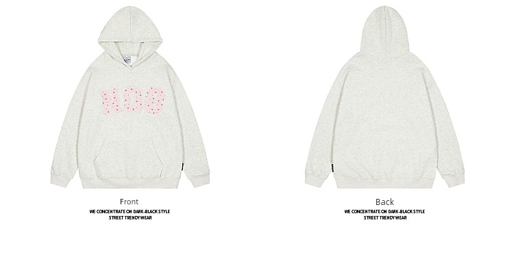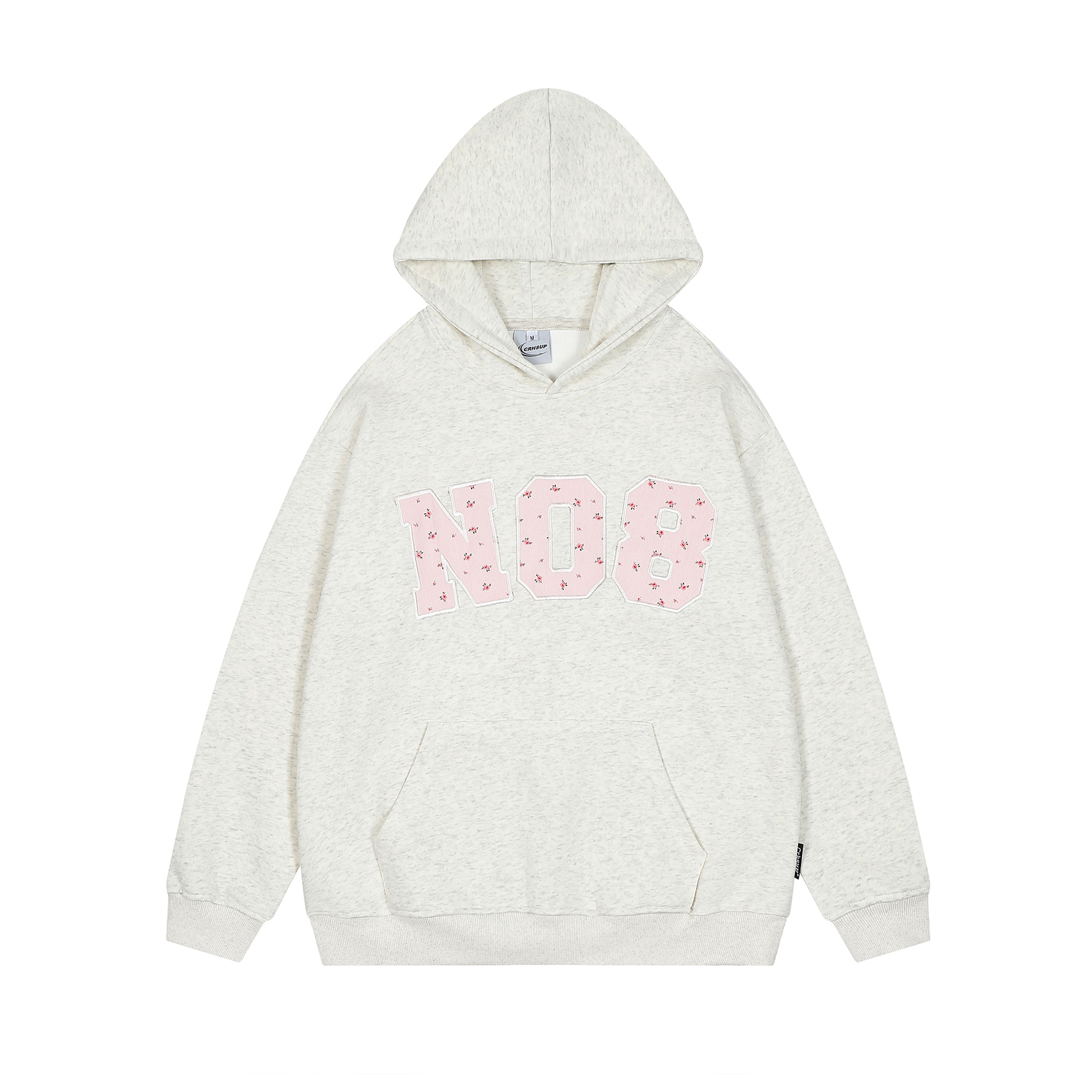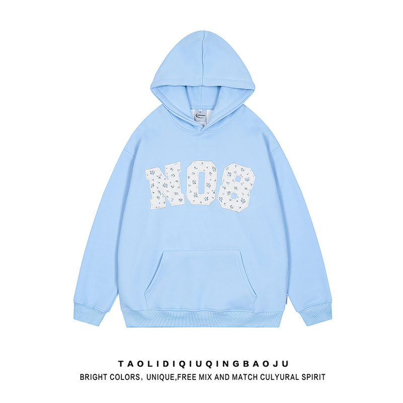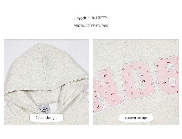 American-Style Vintage Small Floral Patch Hooded Sweatshirt Women's Autumn Easiest for Match Couple Loose Chic Lazy Gray Tops