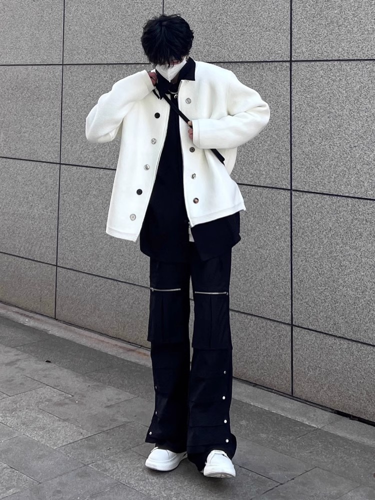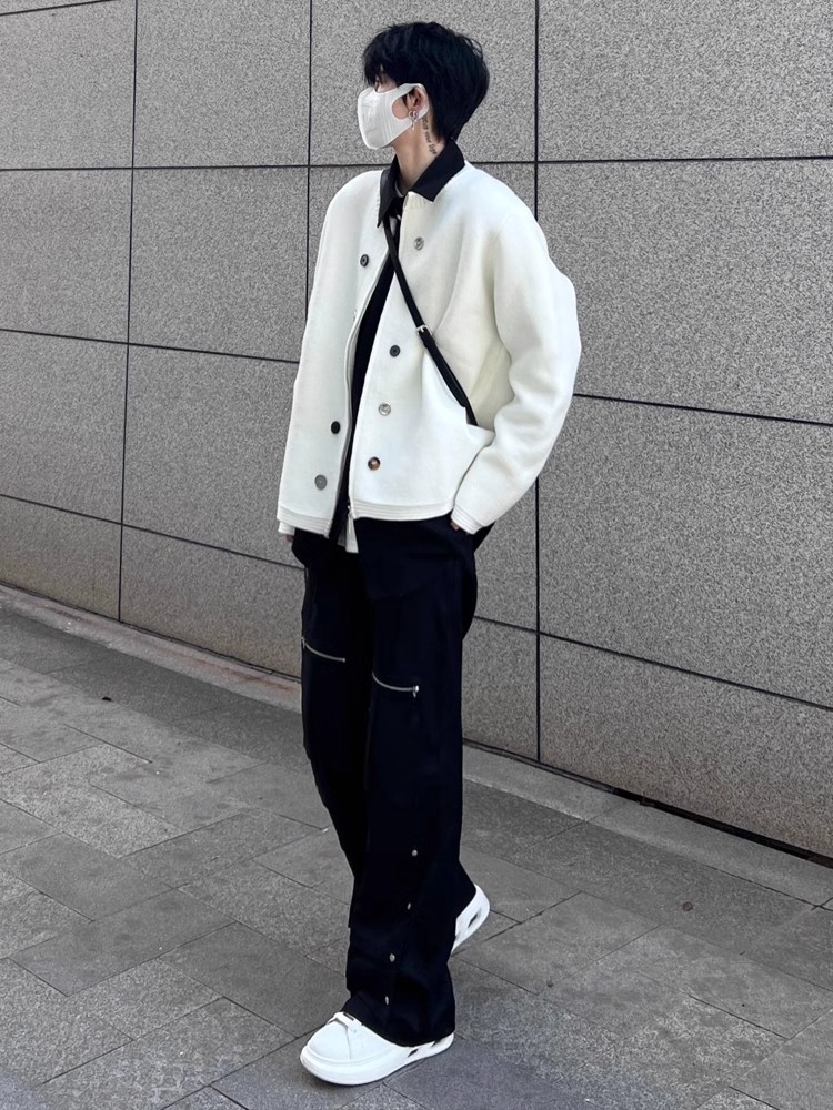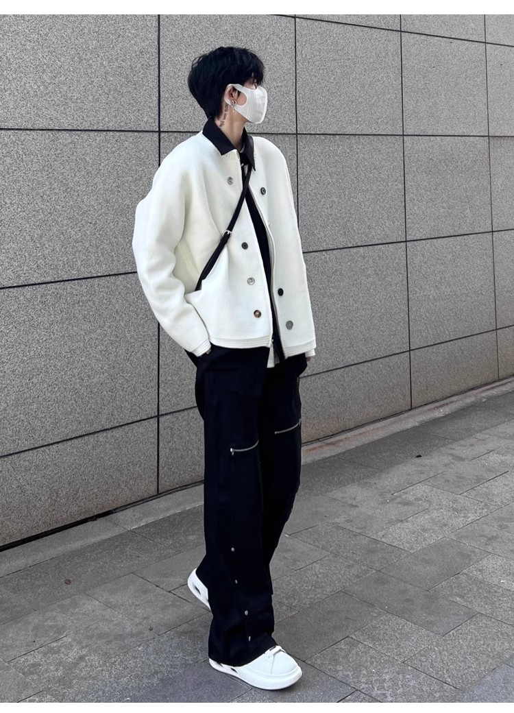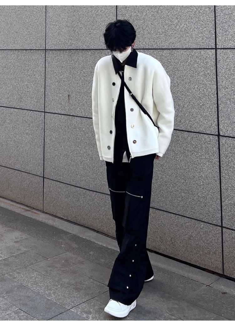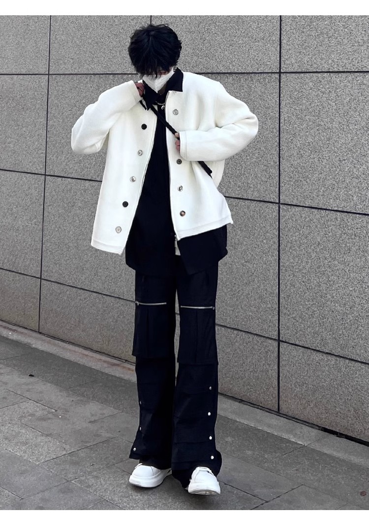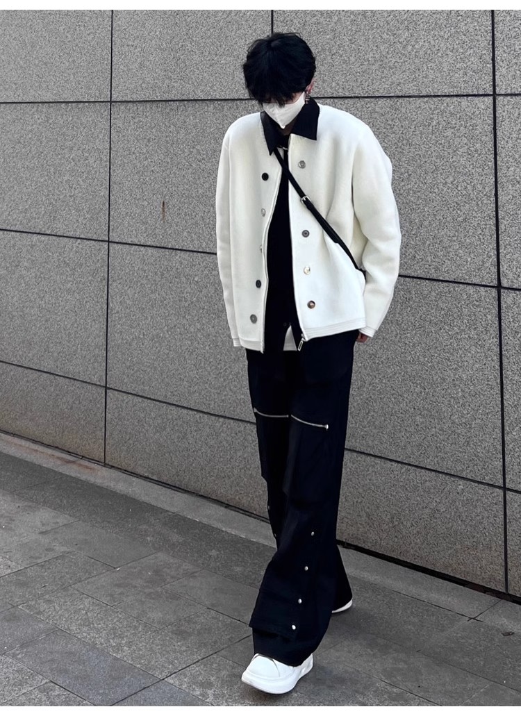 American Sweater Retro Design Cardigan White Men's and Women's Spring and Autumn Outdoor Casual Couple Outfit Knitwear Outwear