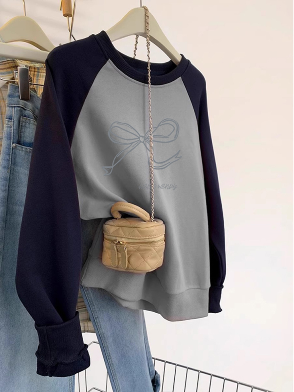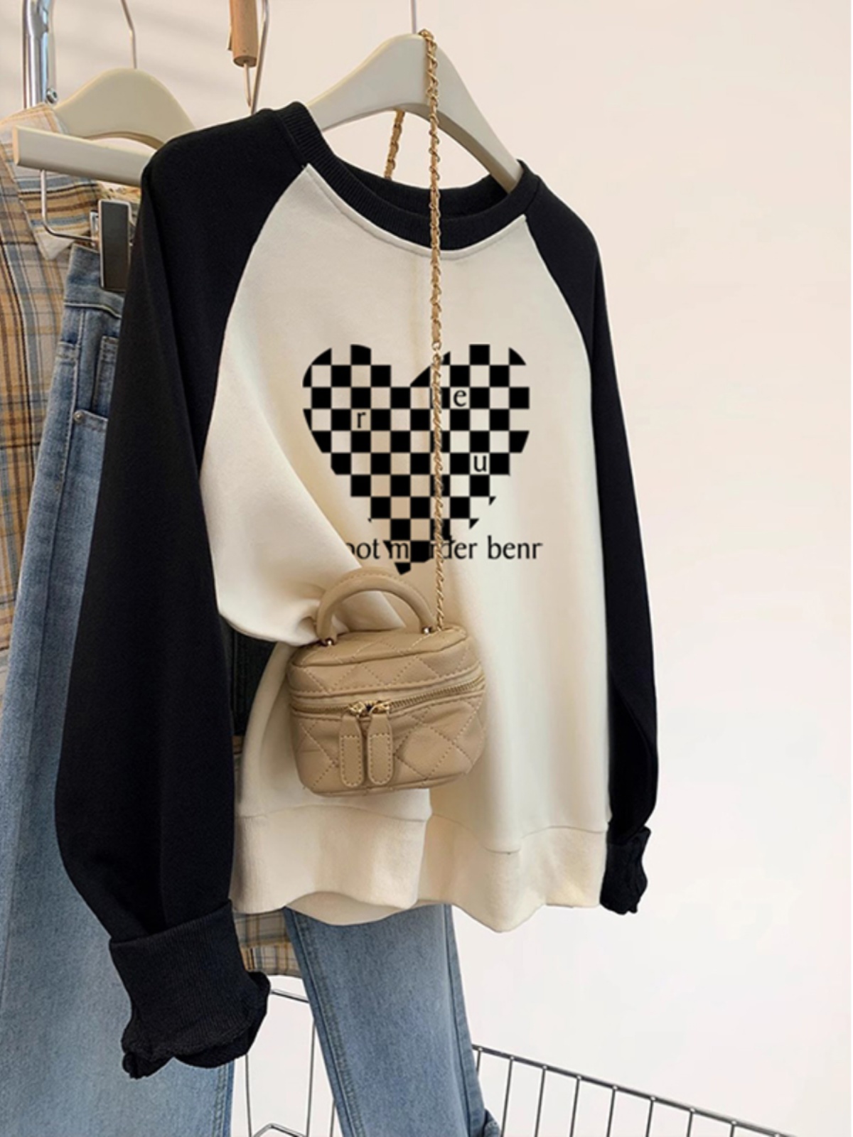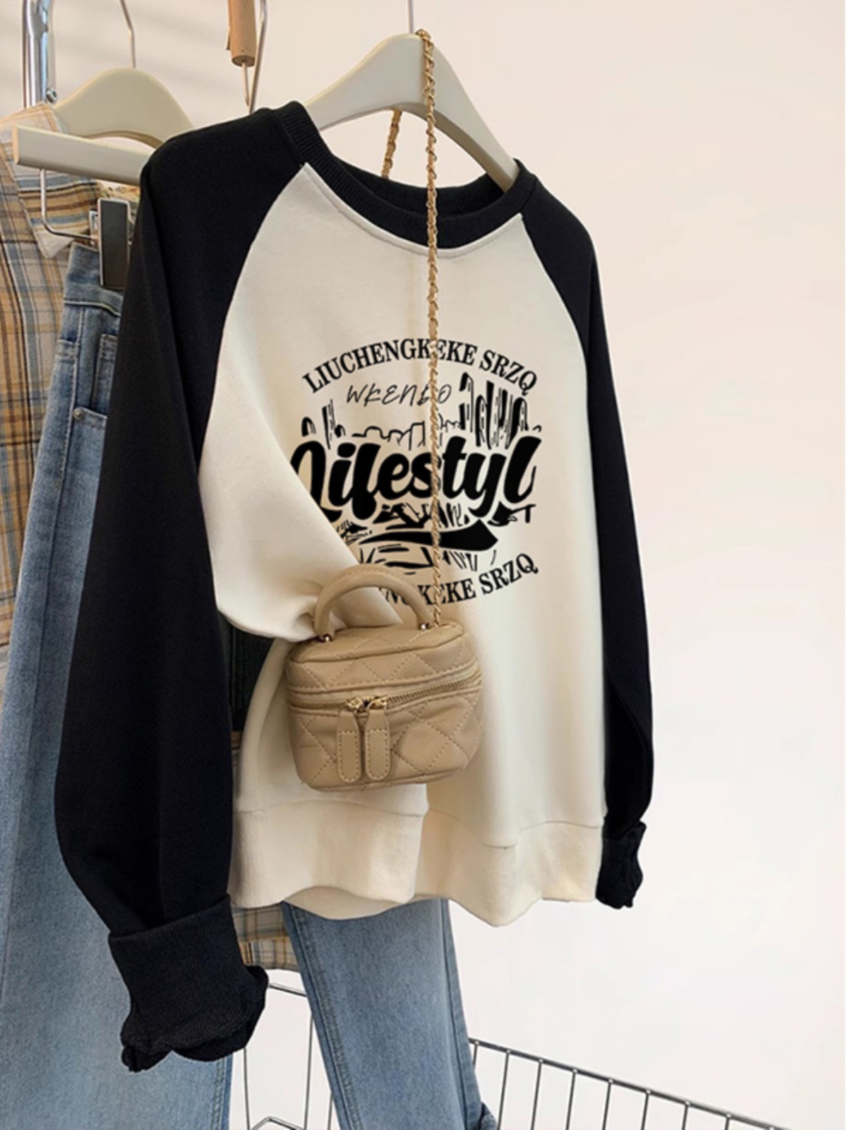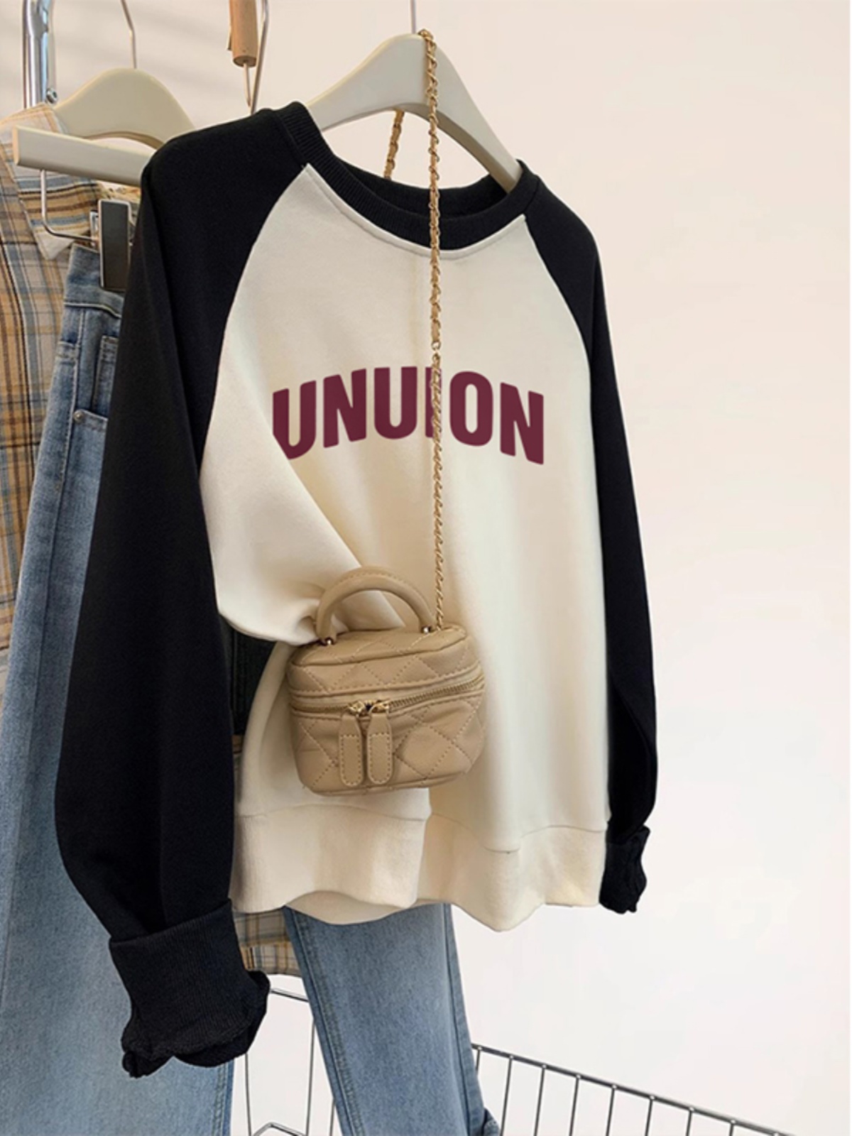 American Vintage Raglan Sleeve Hoodie - Autumn/Winter New Design Sense Niche Plus Size Chubby Girl Slimming Top Outerwear Fashion