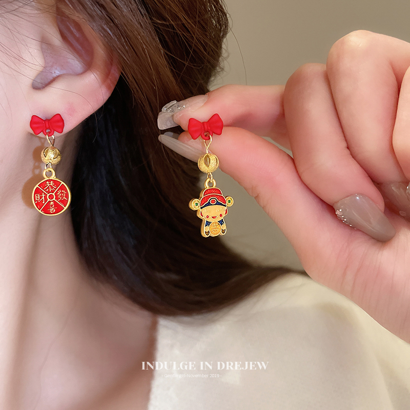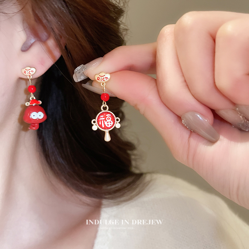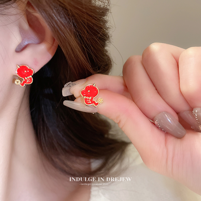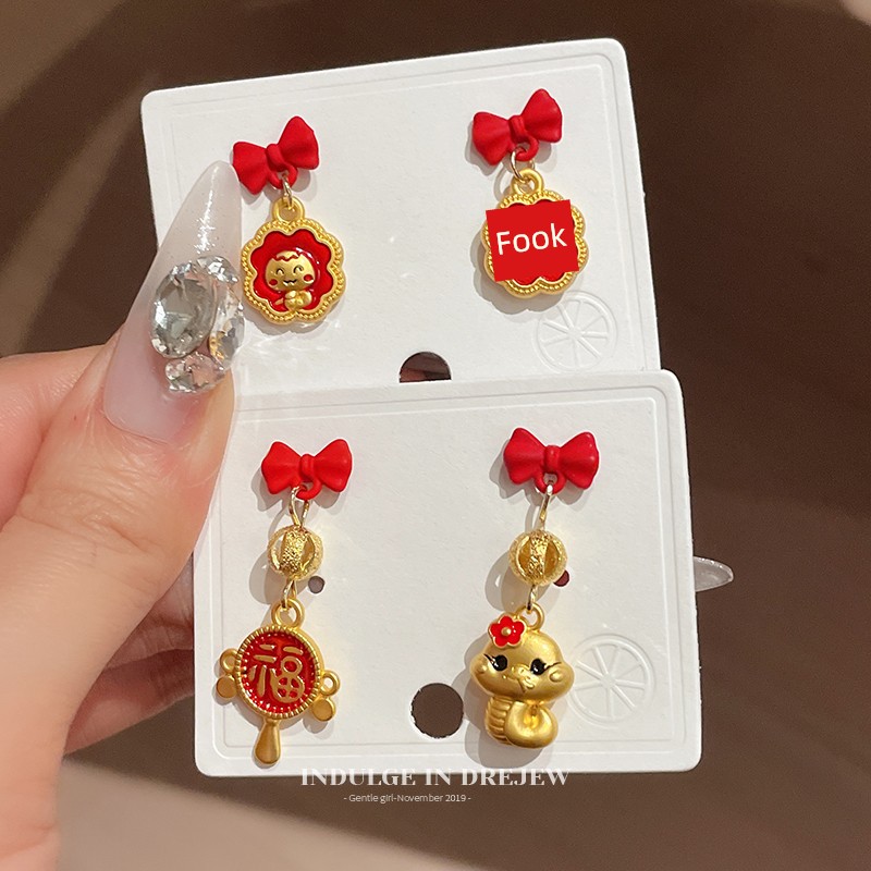 Animal Year Snake-Shaped Red Stud Earring Accessible Luxury Fancy Cute New Arrival Earrings Chinese New Year Joyous Earrings Women