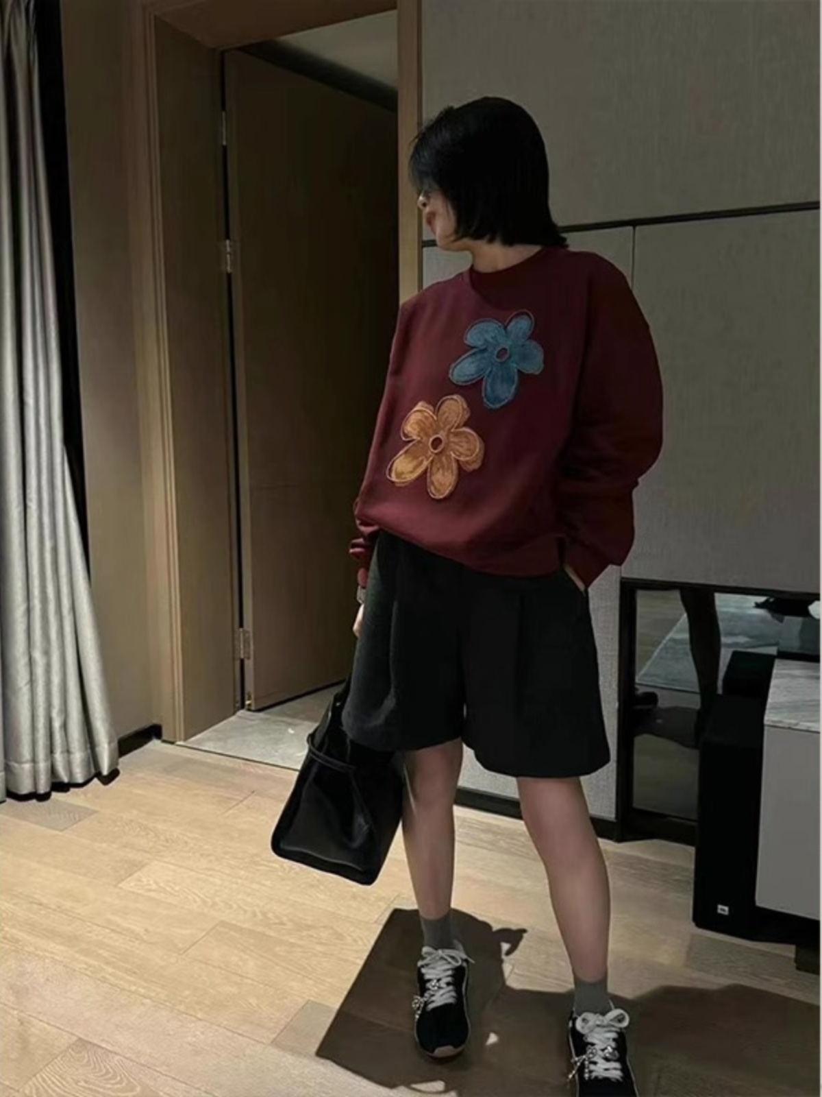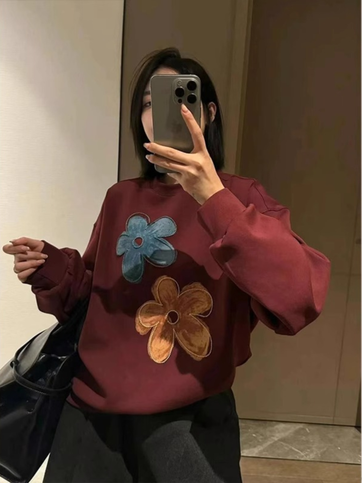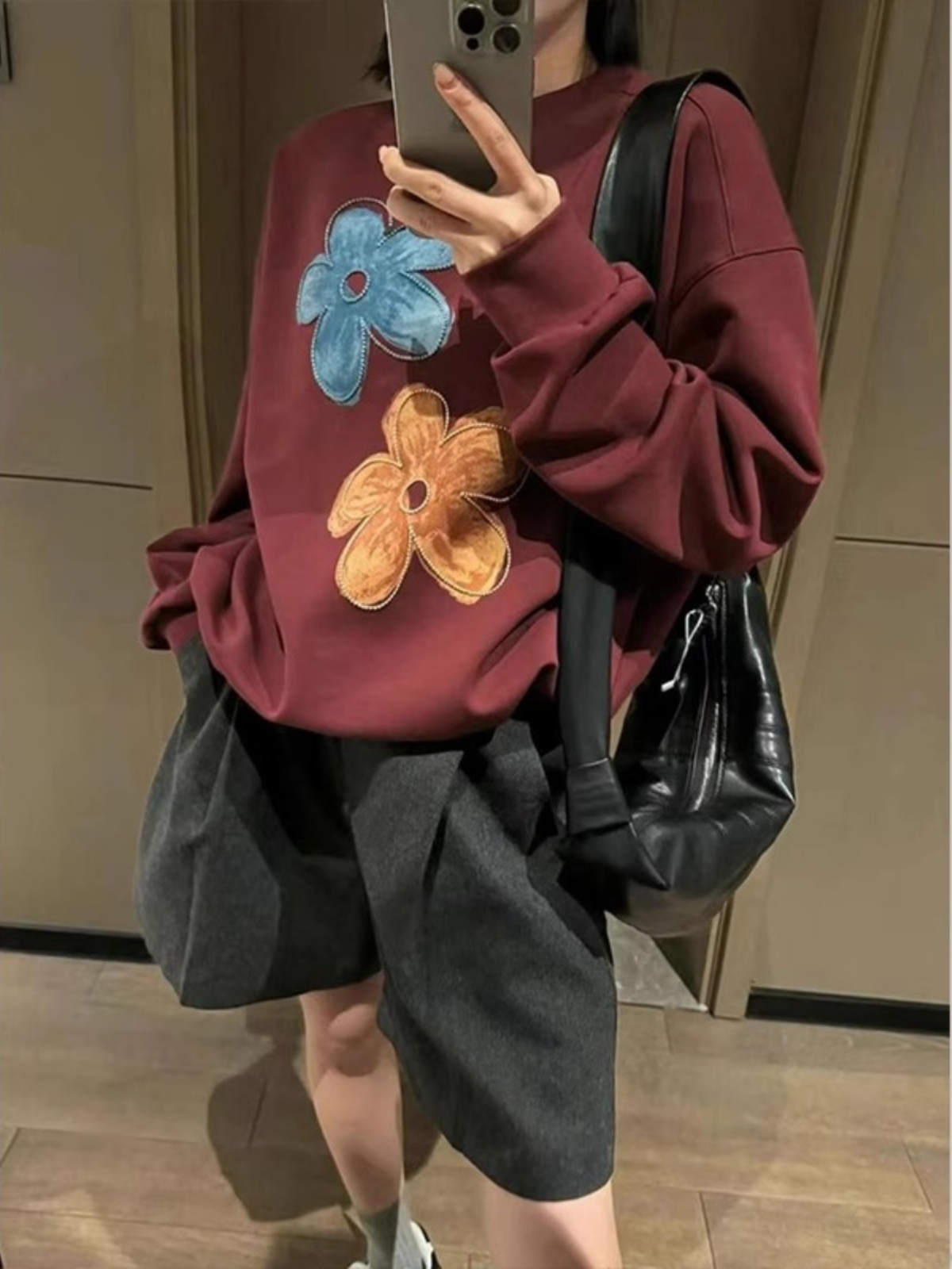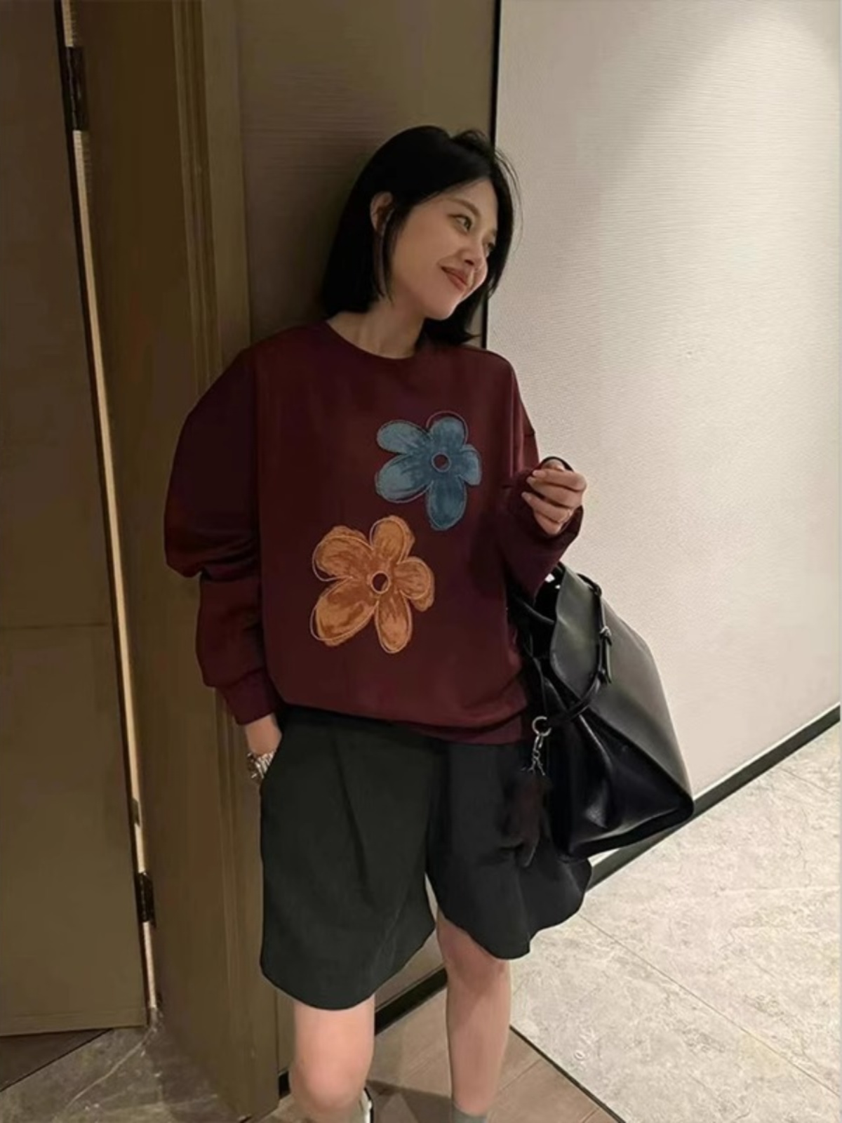 Ankela Red Small Loose and Lazy Style Korean Style Sweatshirt Spring and Autumn Women's Stylish Super Beautiful Tops