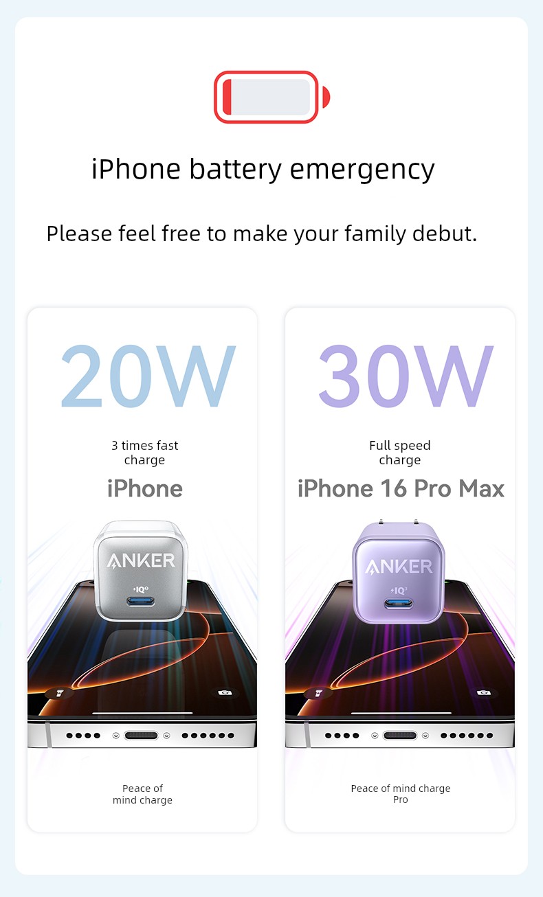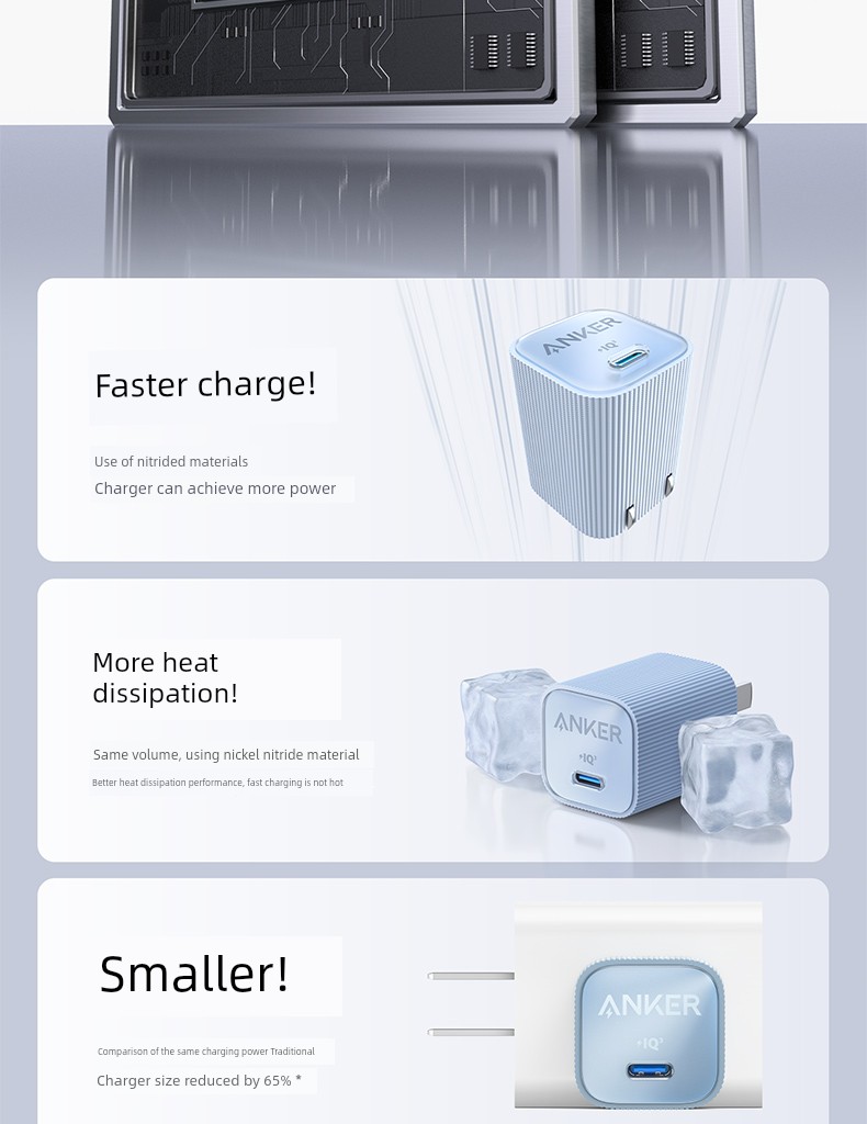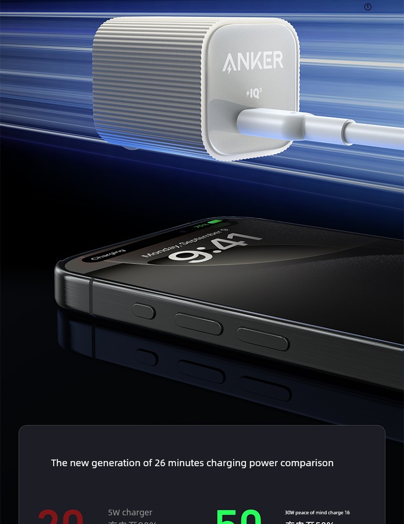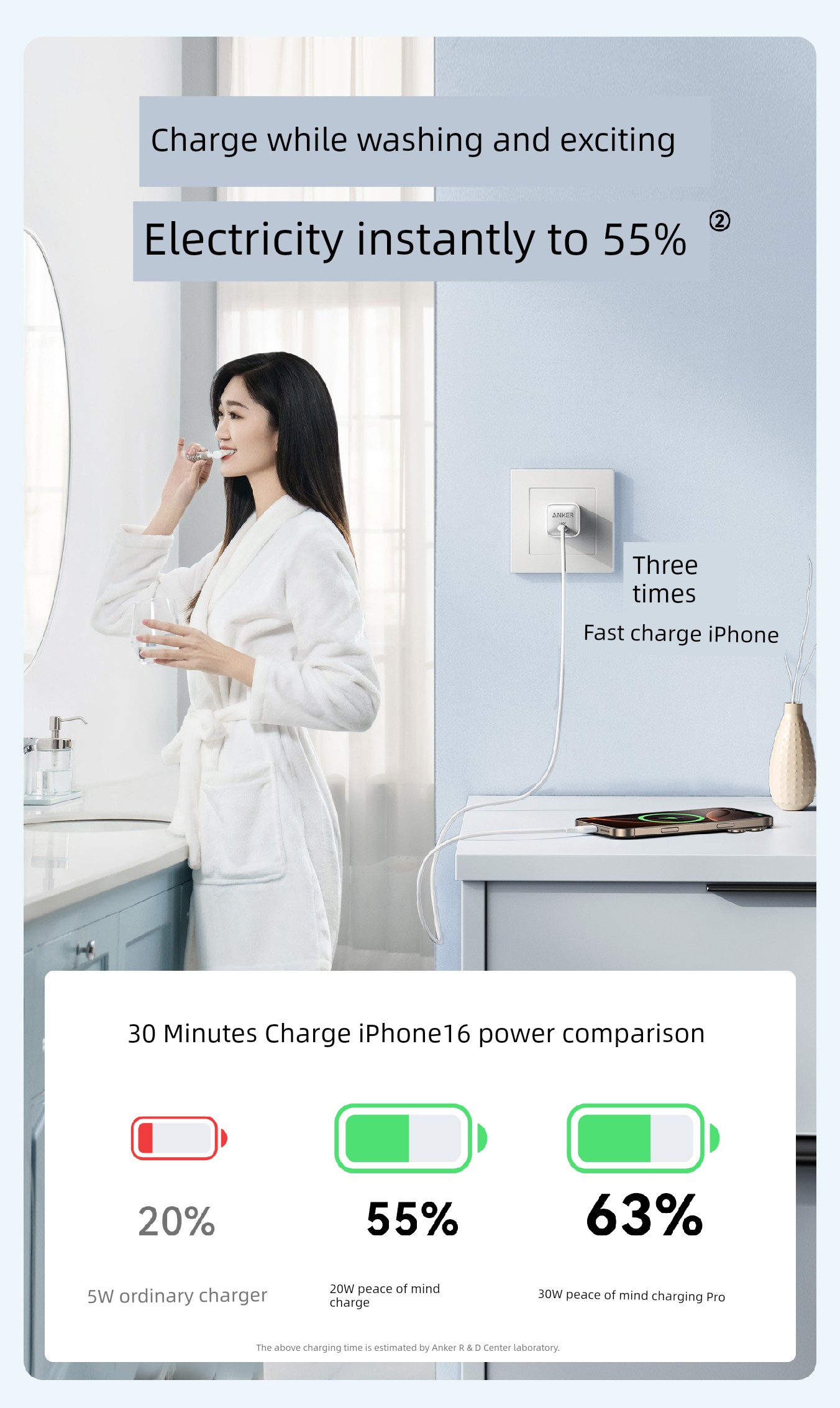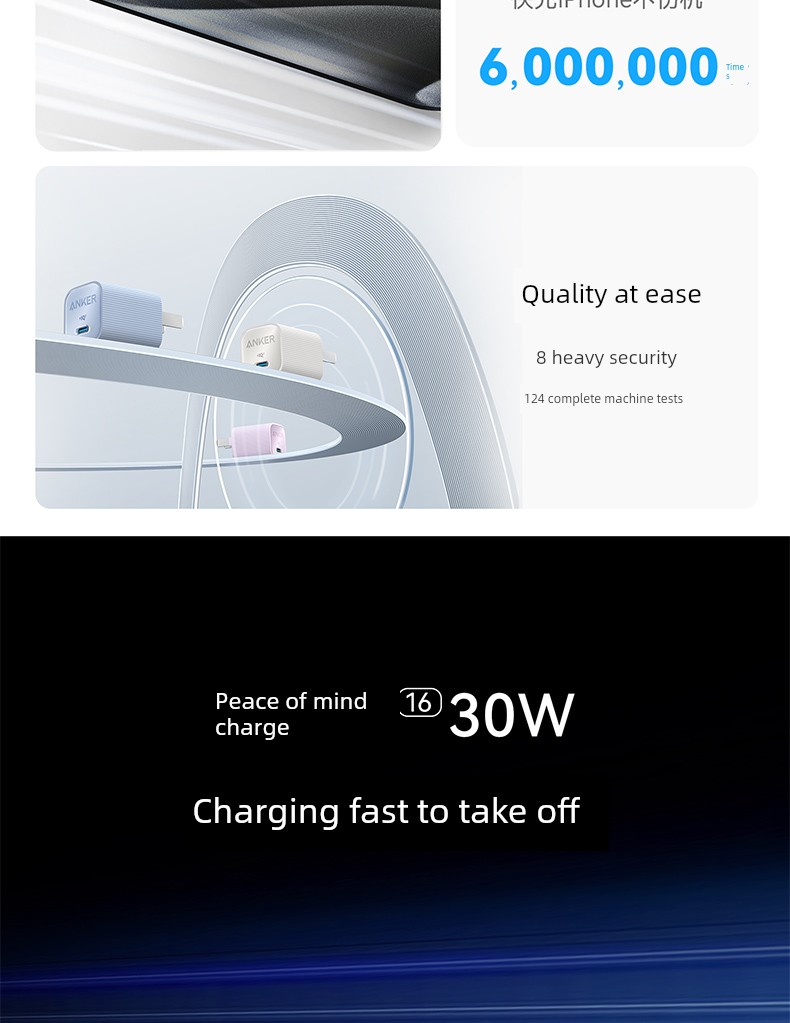 Anker Anke 30W Gallium Nitride PD Fast Charge Charger Safety Core Charge Apple Ultra Charging Plug Iphone15