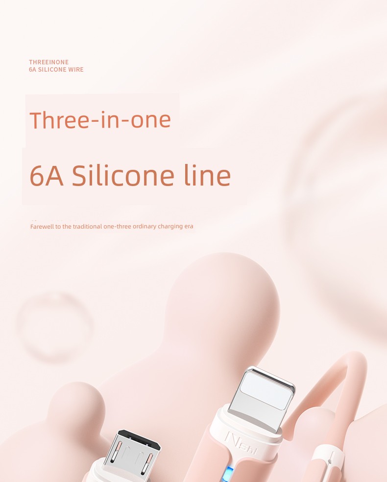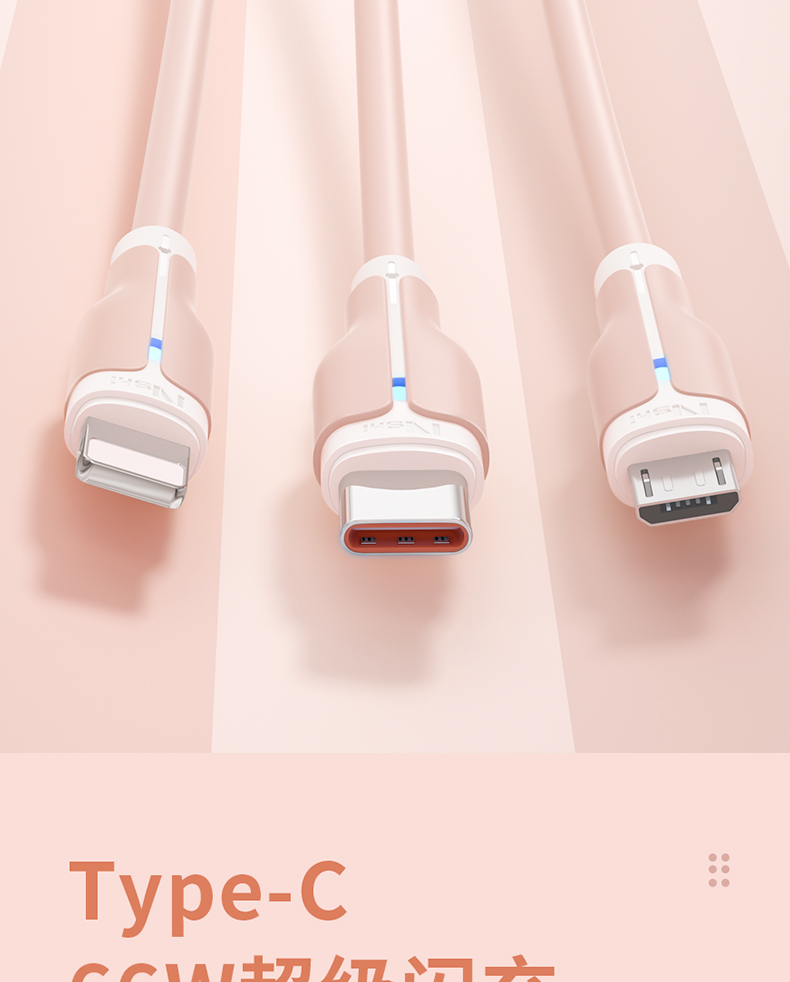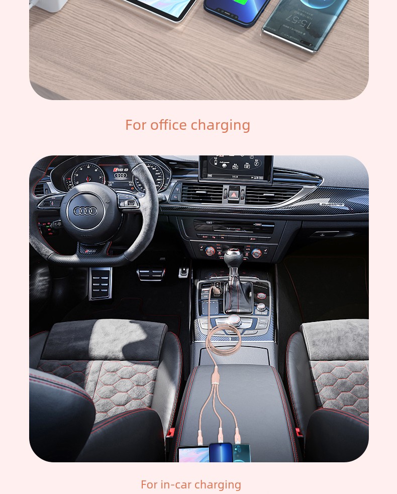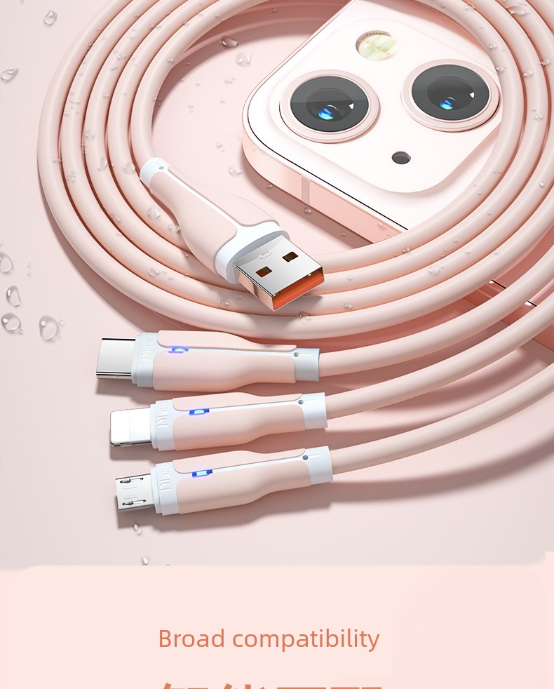 Applicable Charging Cable Three-in-One 100W Fast Charging One-to-Three Mobile Phone for Huawei Apple Vivo Xiaomi Oppo Glory Typec Car Vehicle Android Data Cable Multi-Head Neutral Three Suit