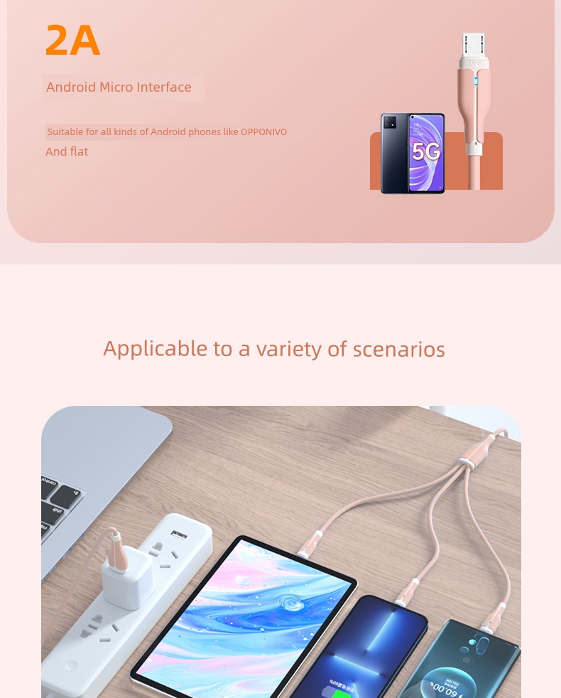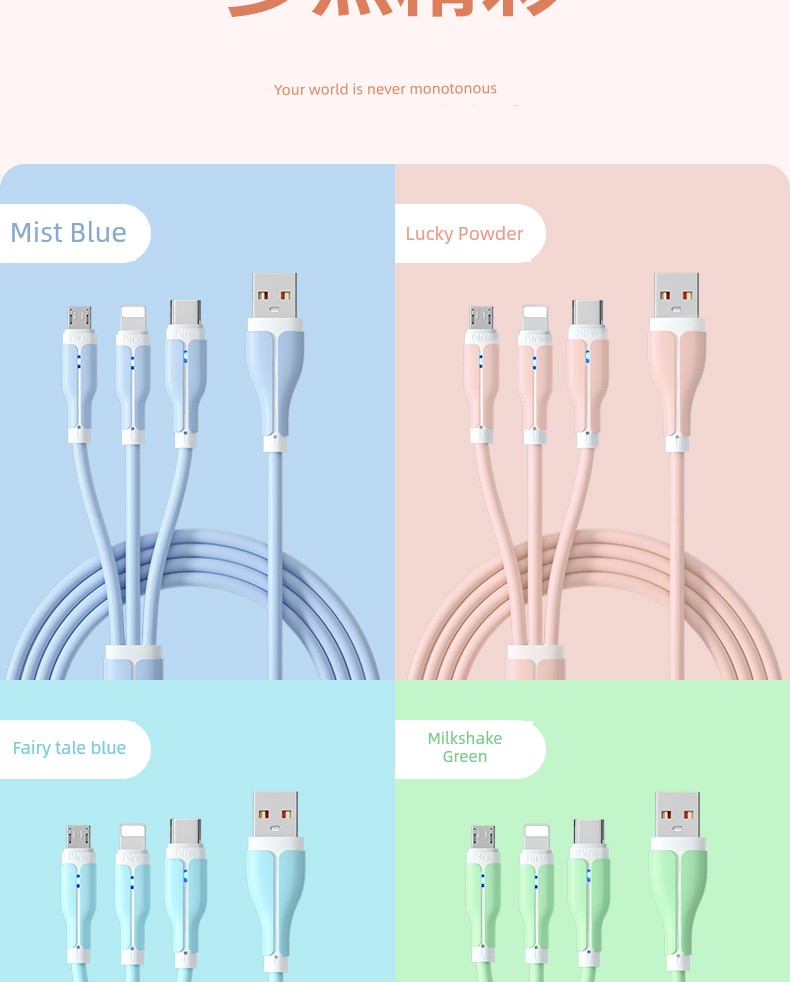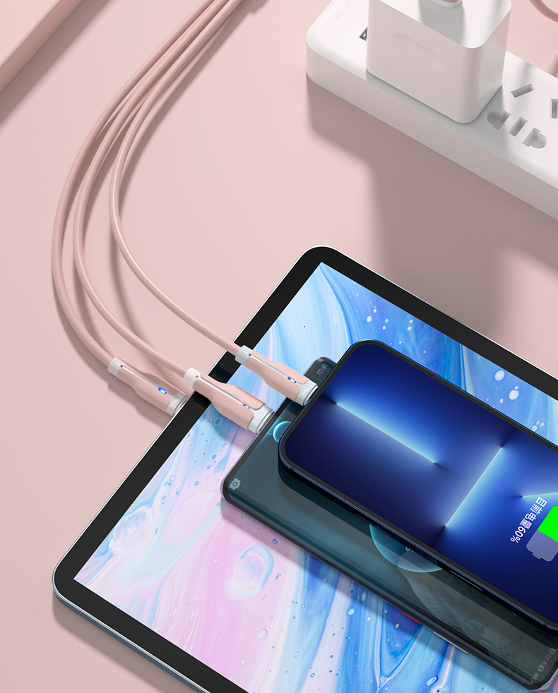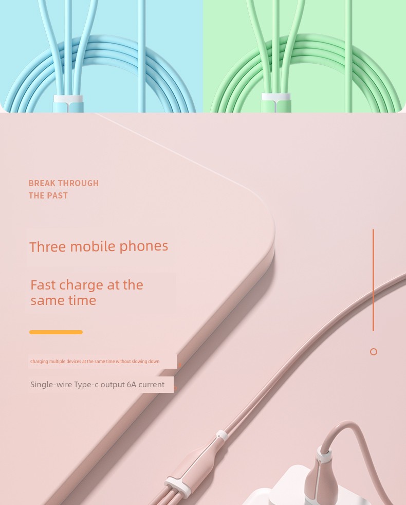 Applicable Charging Cable Three-in-One 100W Fast Charging One-to-Three Mobile Phone for Huawei Apple Vivo Xiaomi Oppo Glory Typec Car Vehicle Android Data Cable Multi-Head Neutral Three Suit