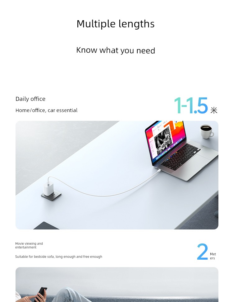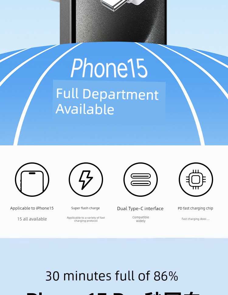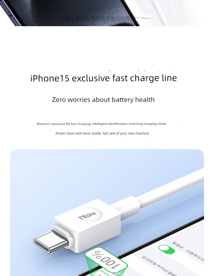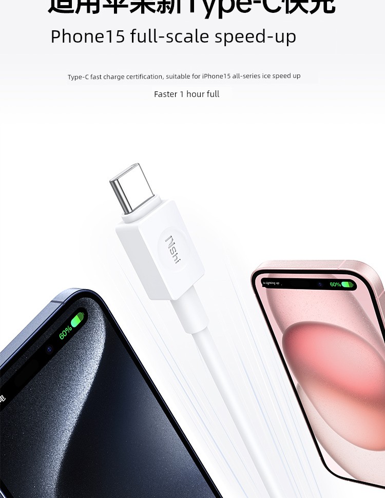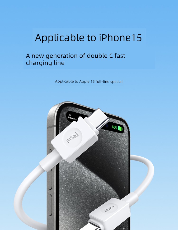 Applicable Dual Typec Data Cable for iPad Apple Iphone15 Charging Cable CTOC to Pro Head PD Fast Charge Tpye Charger Head USB-C Vehicle-Mounted Mobile Phone Two-Head Laptop