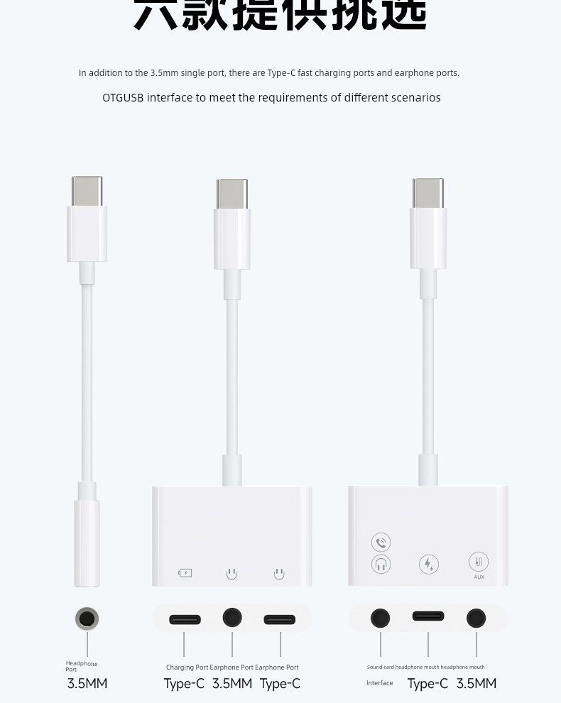 Applicable Headset Adapter for Huawei Honor Mate50 2-in-1 30pro Converter P50p30 Wired Type-c Mobile Phone Nova7/10/6/9/850E Audio Dedicated