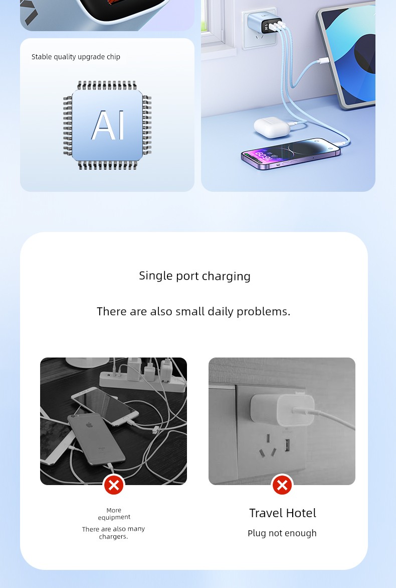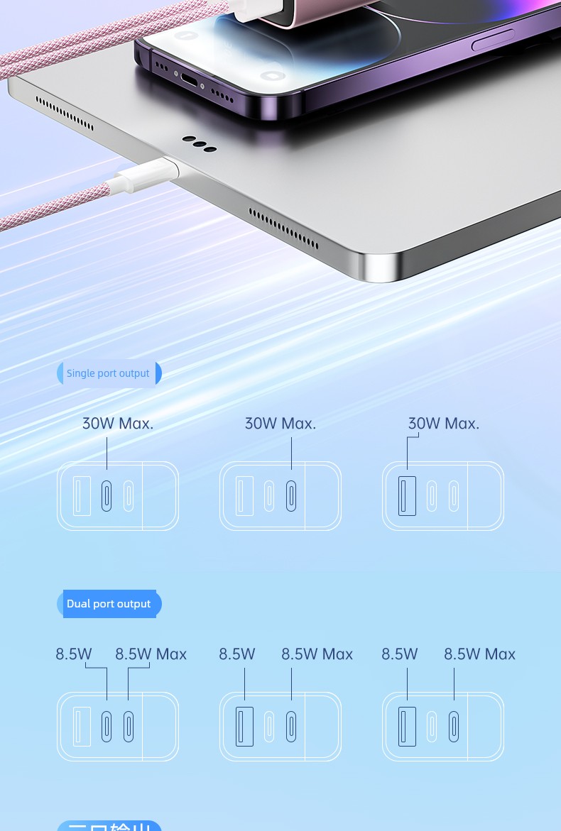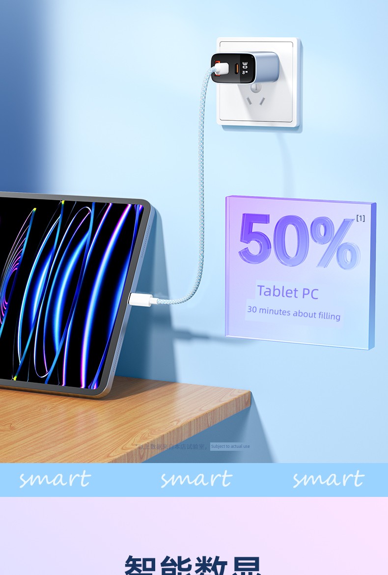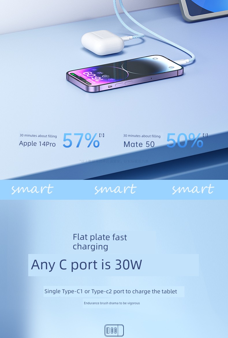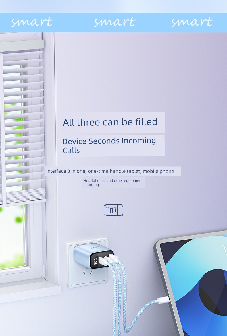 Applicable Pd30w Charger Suit Applicable to Apple Iphone15 Dual-Port Multi-Function 20W Fast Charging USB Mobile Phone iPad Watch 12 Flash 14promax Data Cable 13 Digital Display Plug Typec Three