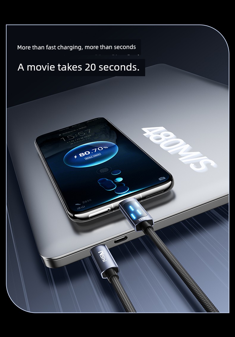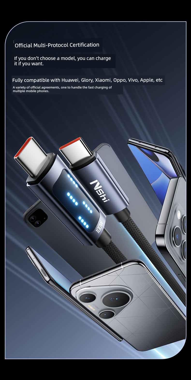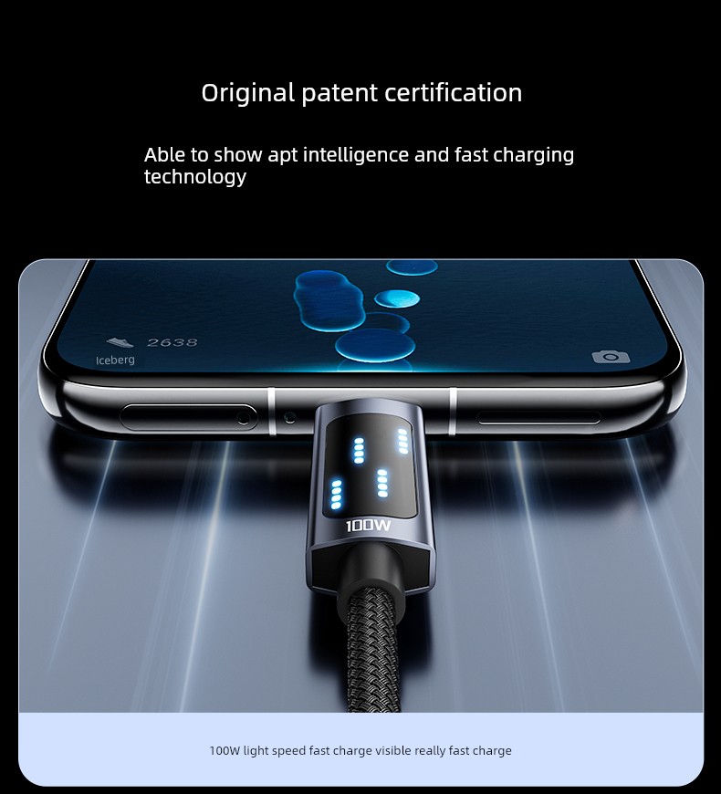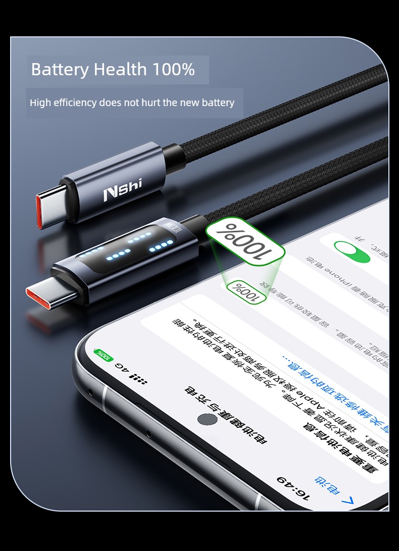 Applicable to 100W Super Fast Charge Data Cable Typec Smart Digital Display for Huawei Honor Xiaomi Oppo Flash Charger Vivo Android Mobile Phone Belt Display Light TPC Charging Cable 66W Punch