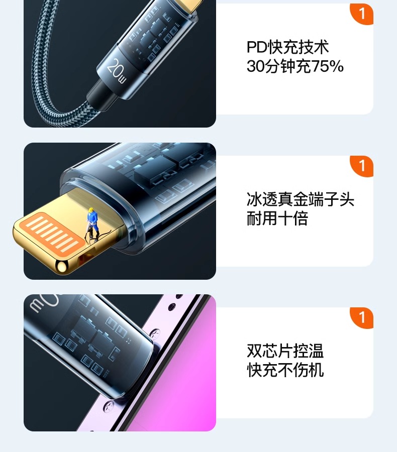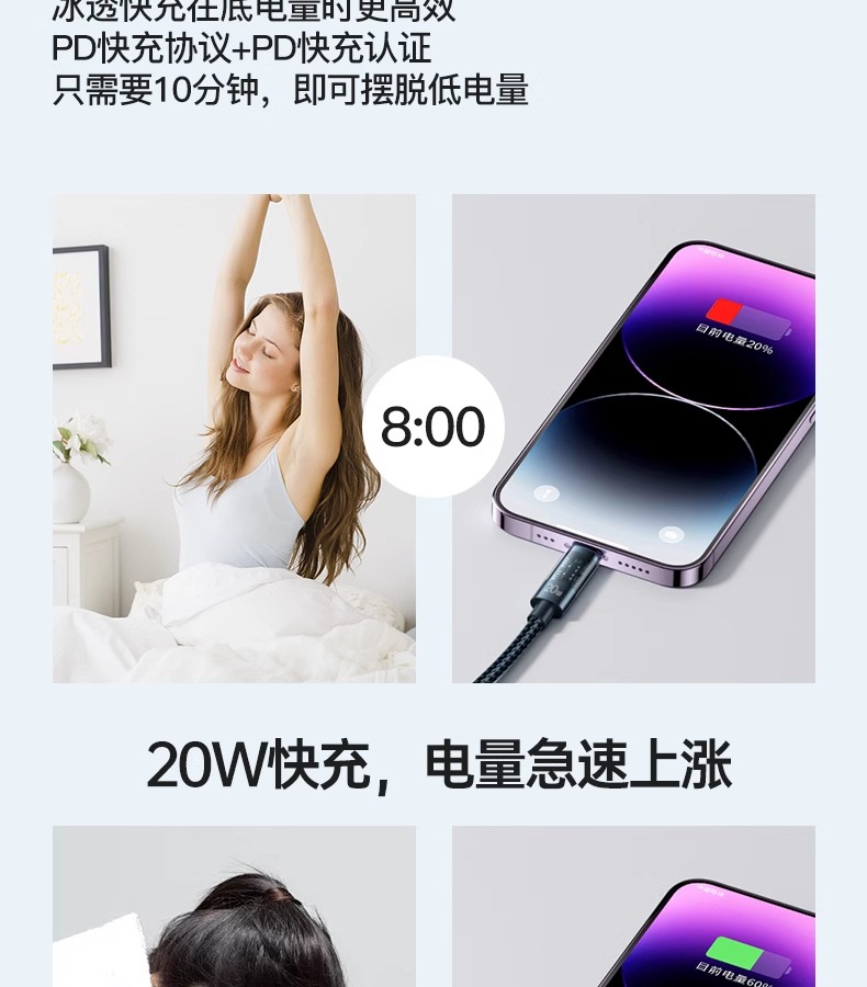 Applicable to Apple Lightning Data Cable Iphone14 Charging Cable 15promax Charging Cable 13typec Mobile Phone 20W Fast Charging PD Genuine Goods USB Suit 11 Car iPad