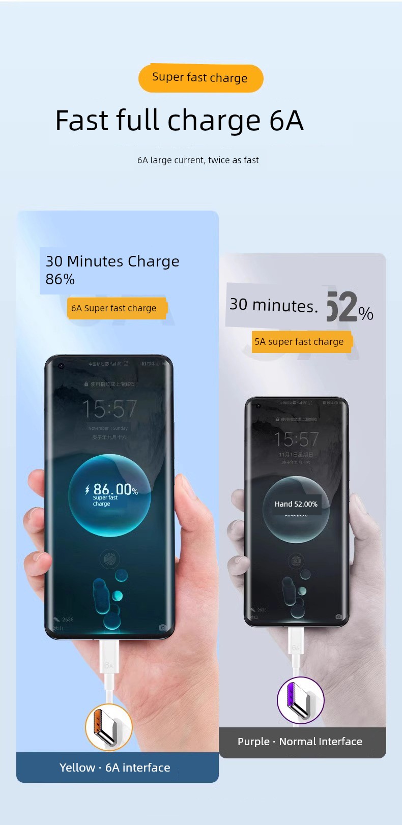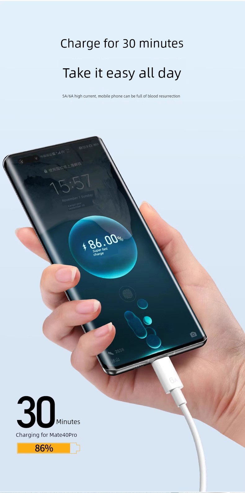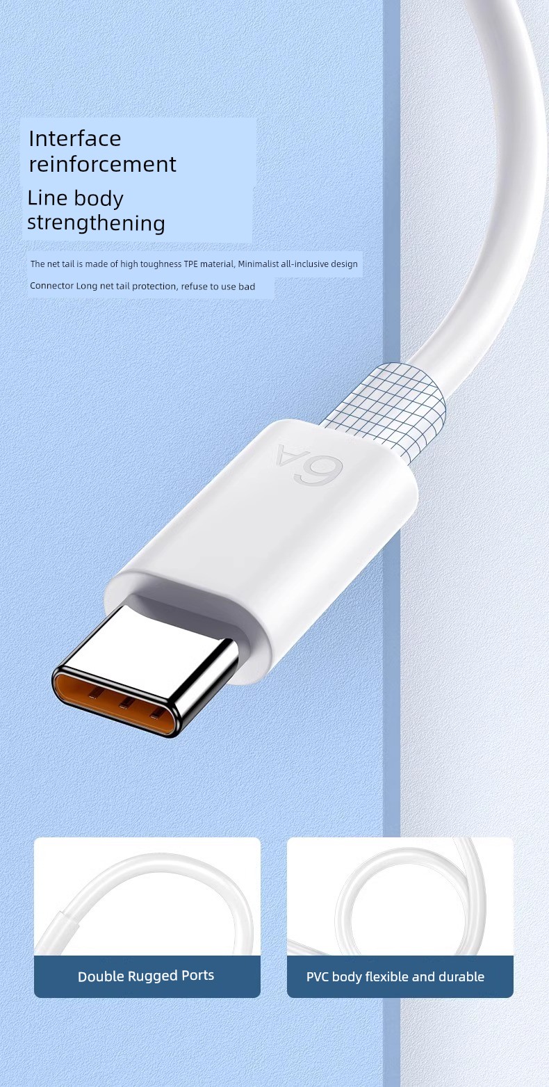 Applicable to Huawei USB Type-C Cable 6A Fast Charge Mate40pro Glory P20/30 Charger
