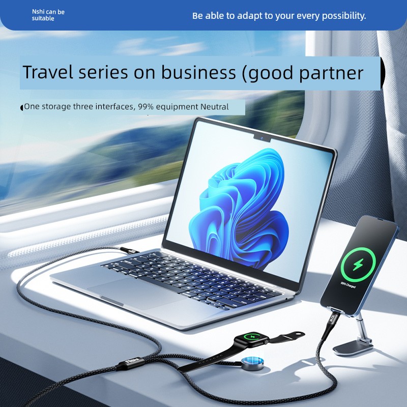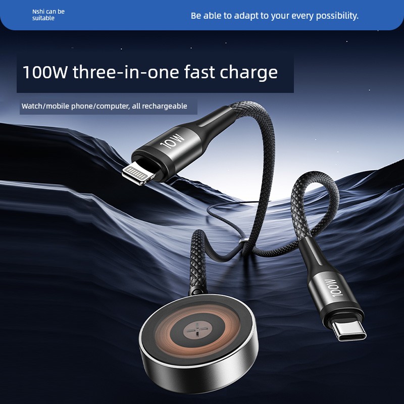 Applicable to Three-in-One Data Cable Type-C + Lightning + Magnetic Watch Wireless Charger 3-in-1 Charging Wire for Apple Huawei Iphone16 Fast Charge Iwatch9 Car PD