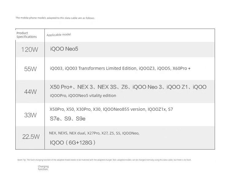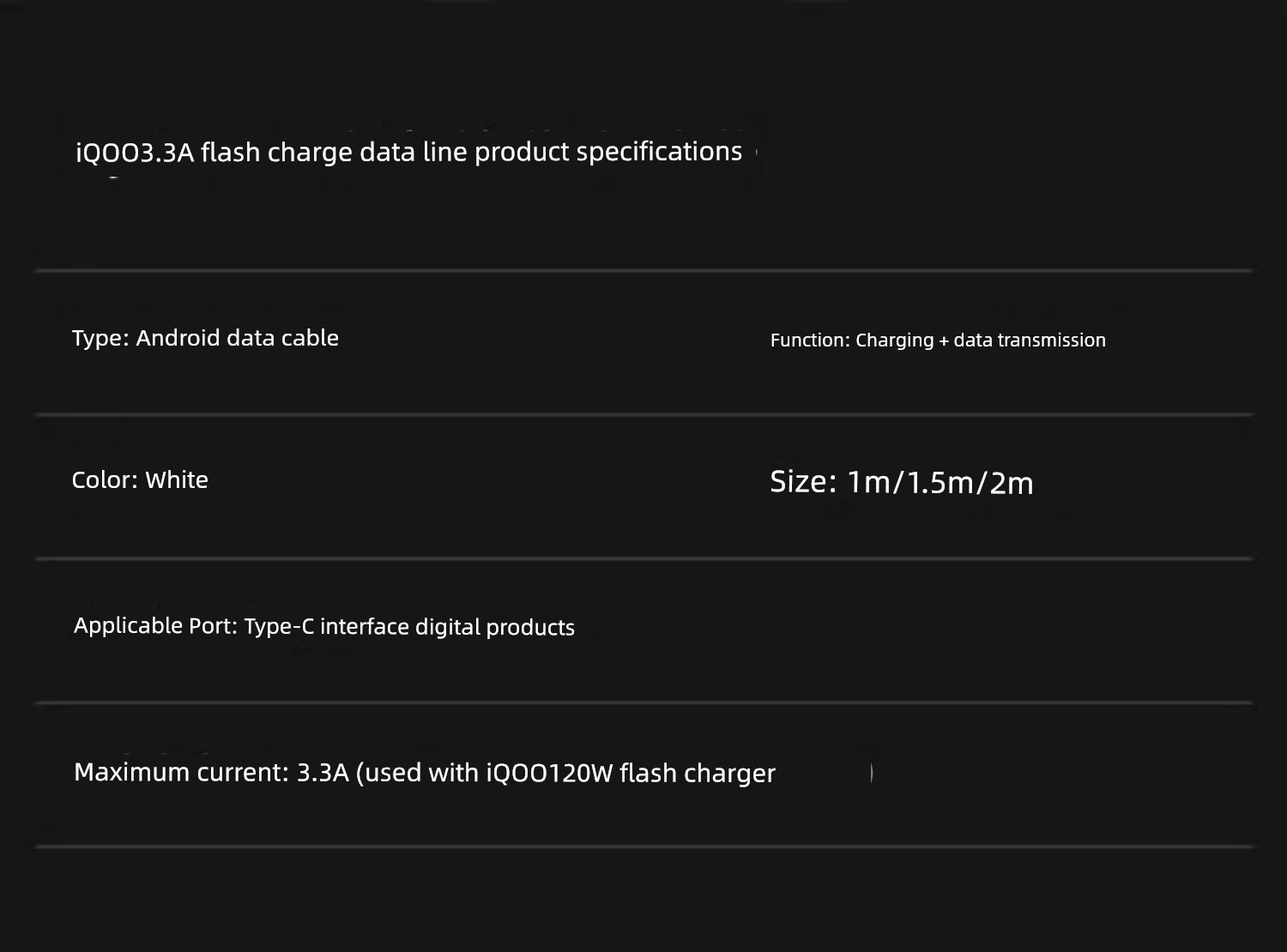 Applicable to Vivo Iqooneo5 Charging Cable 66W Mobile Phone Data Cable 5se Flash Charging Typec Fast Charging Iqoo5 Device