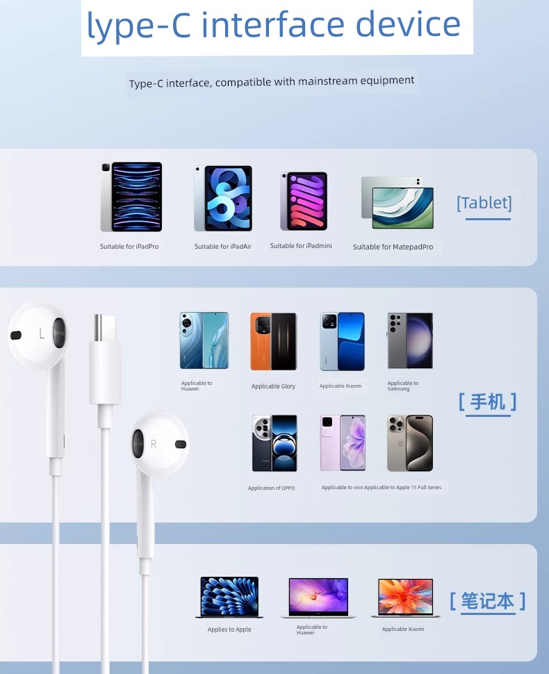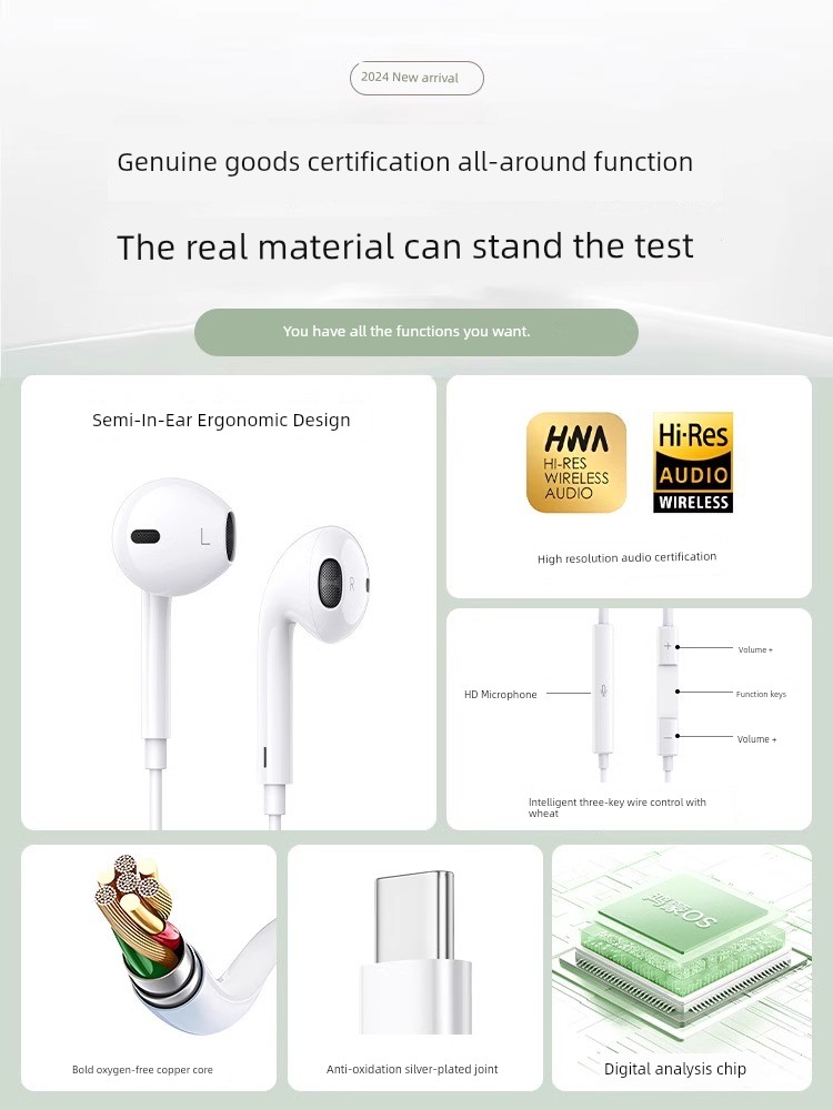 Applicable Wired Headset Typec Interface for Huawei Mate60 Mobile Phone Pura50/70 round Hole Nova12 Original