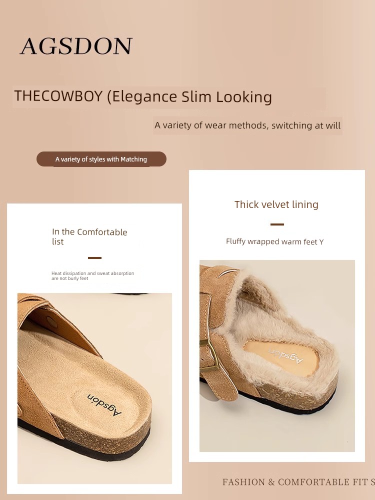 Augusto Autumn and Winter Thick Bottom Fleece-Lined Birkenstock