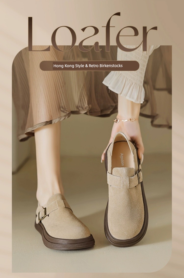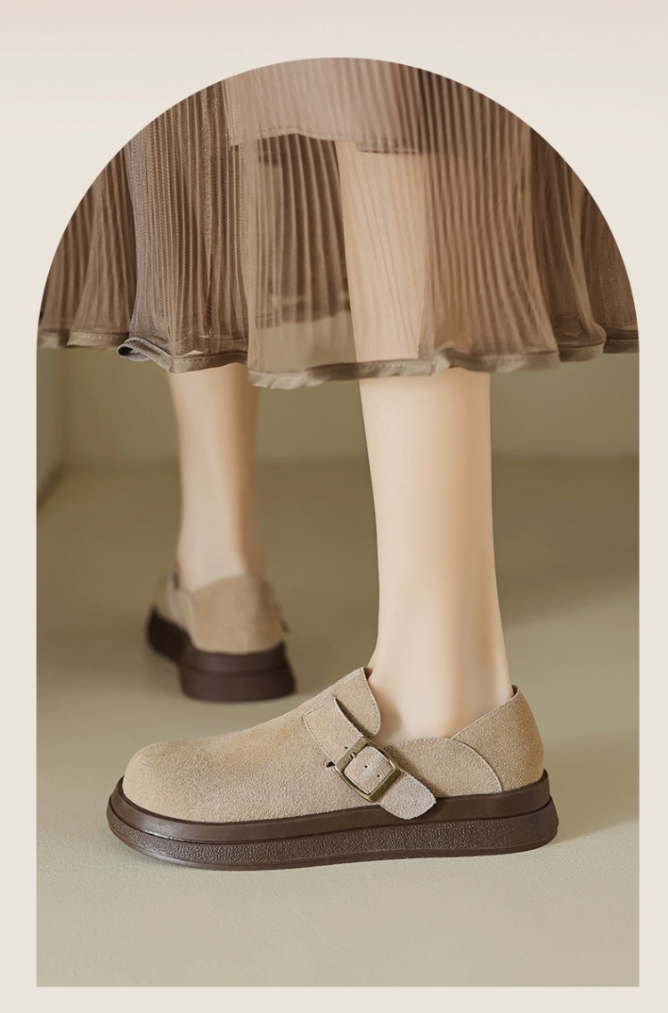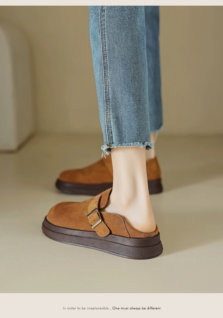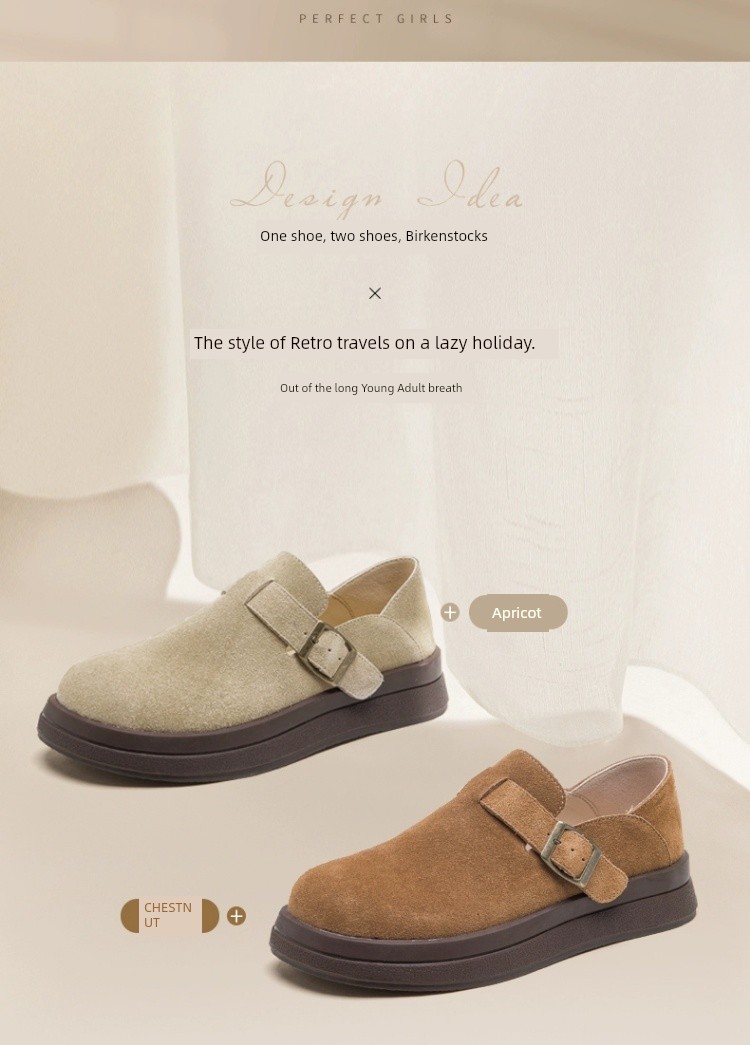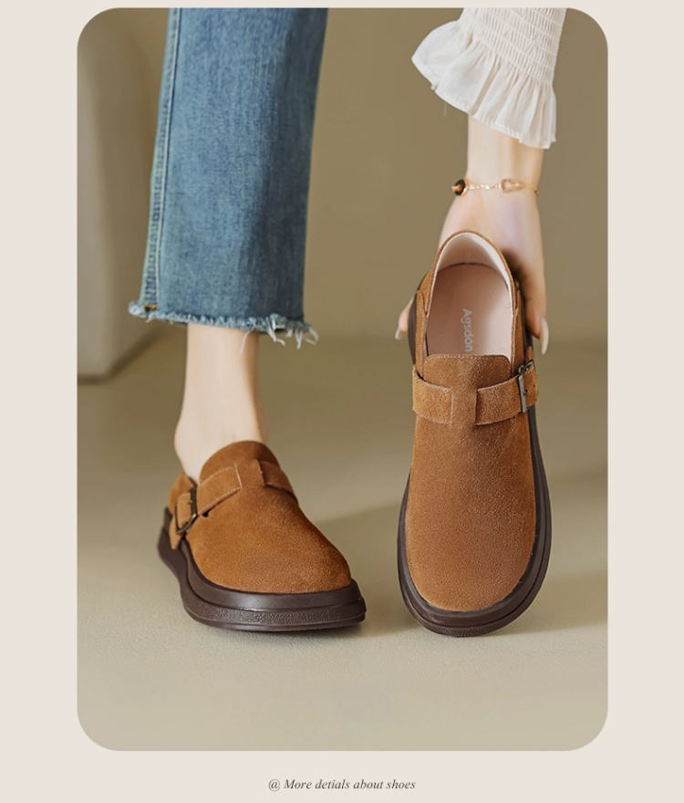 Augusto Genuine Leather Birkenstock Women's Fall and Winter 2024 New Arrival Thick Sole All-Inclusive Flats Soft Bottom Boken Slip-on Winter