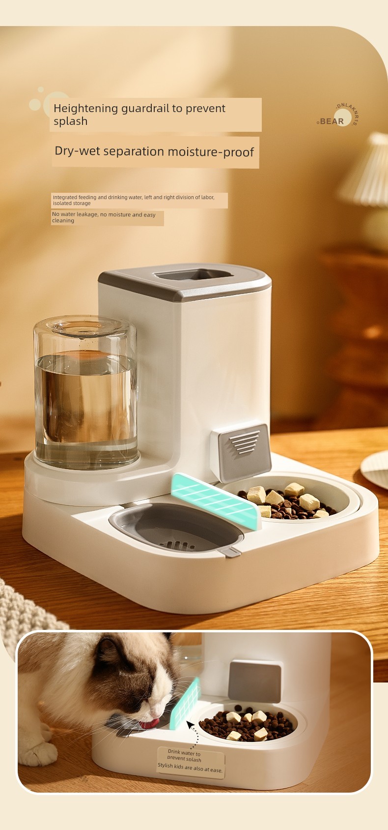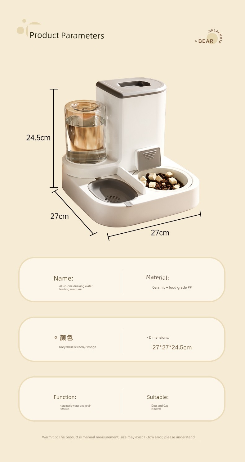 Automatic Bevel Water Bowl Integrated Protection Cervical Spine Food Basin