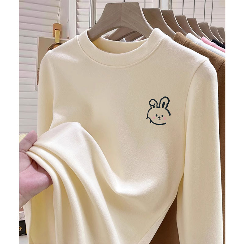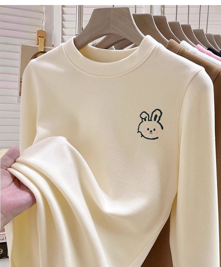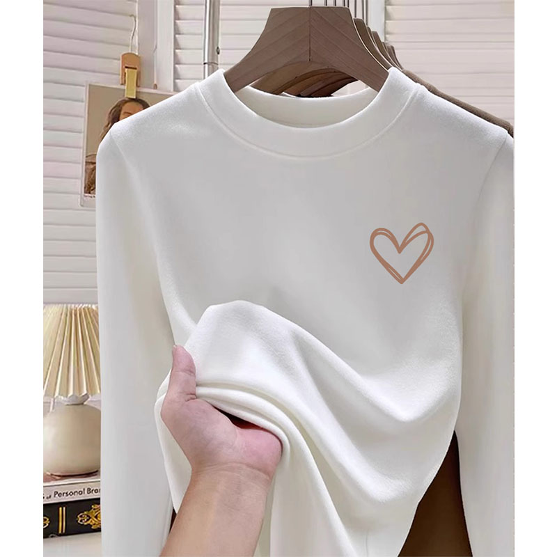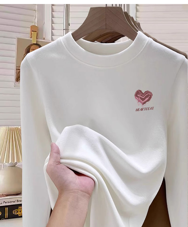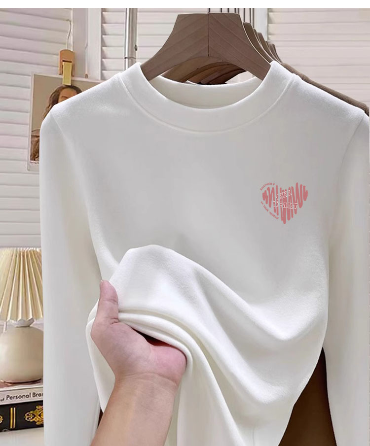 Autumn and Winter Dralon round Neck Bottoming Shirt Women's Inner Wear Fleece-lined Thickened Long Sleeves T-Shirt Women's Loose and Warm Shoulder Tops