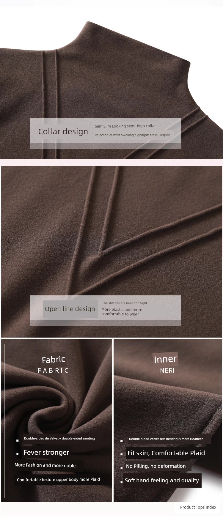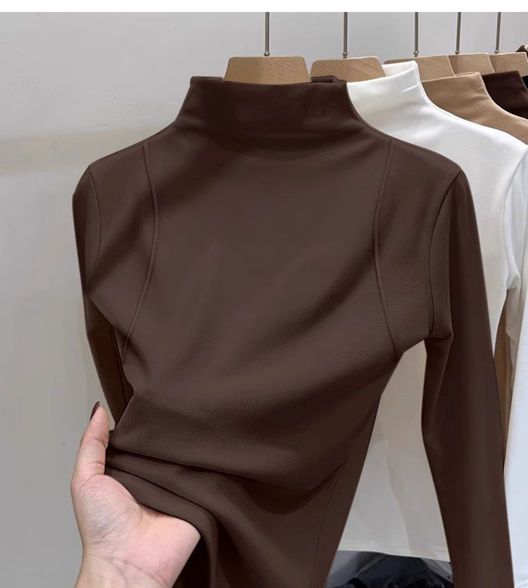 Dralon Stand Collar Women's Long Sleeve Base Shirt - Autumn/Winter Apricot Slimming & Warm, Wearable Outer