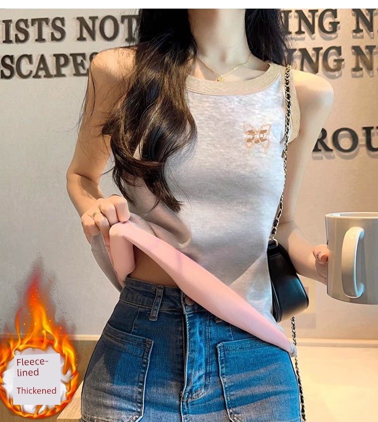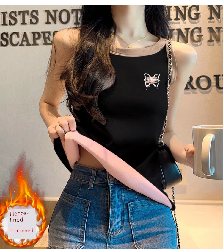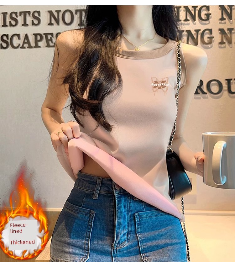 Autumn and Winter New Arrival Fleece-lined Thickened Warm Tank Tops Vest Women's Inner Match Sleeveless Tops Silm Bottoming Shirt 2025