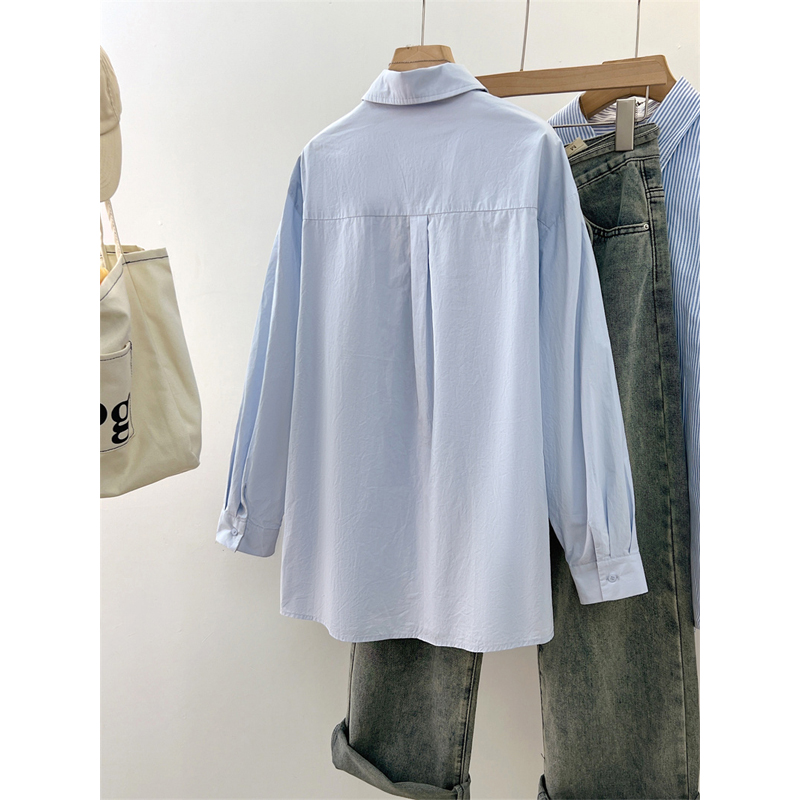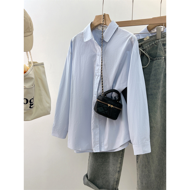 Autumn Artsy Fresh Retro Hong Kong Style Long Sleeve Shirt Men's and Women's Loose Slimming and All-Matching Women's Base Shirt Coat
