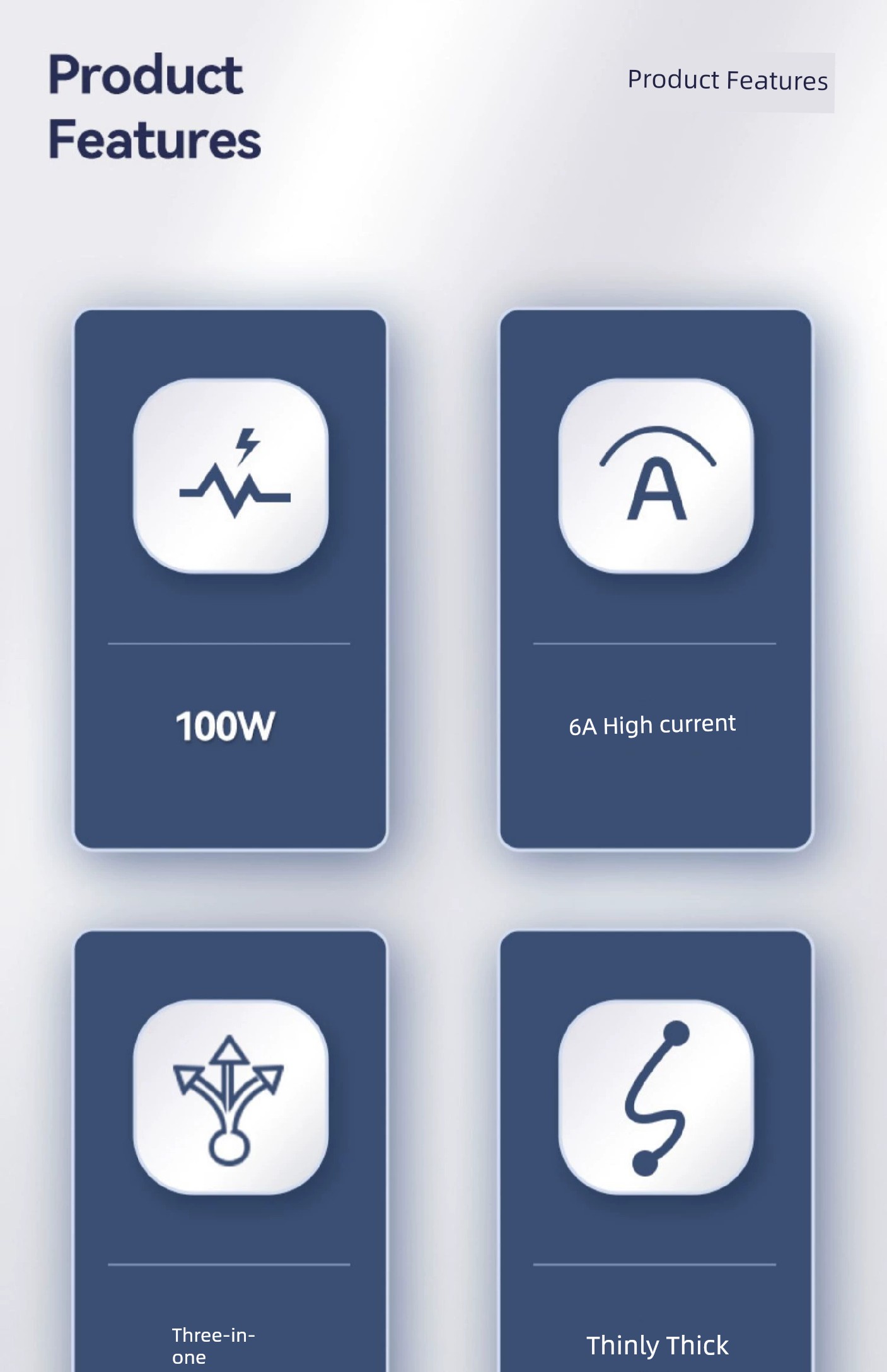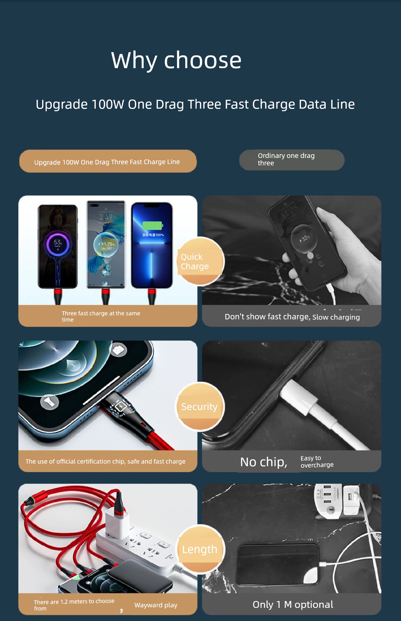 Azoma Three-in-One 100W Super Fast Charge Data Cable