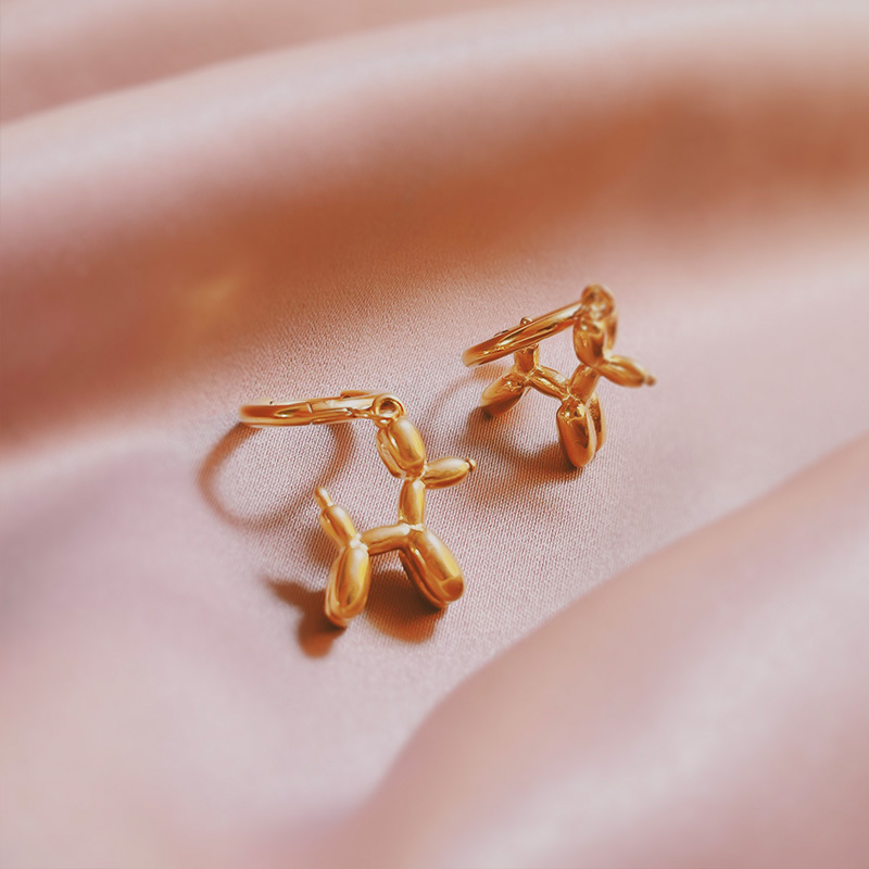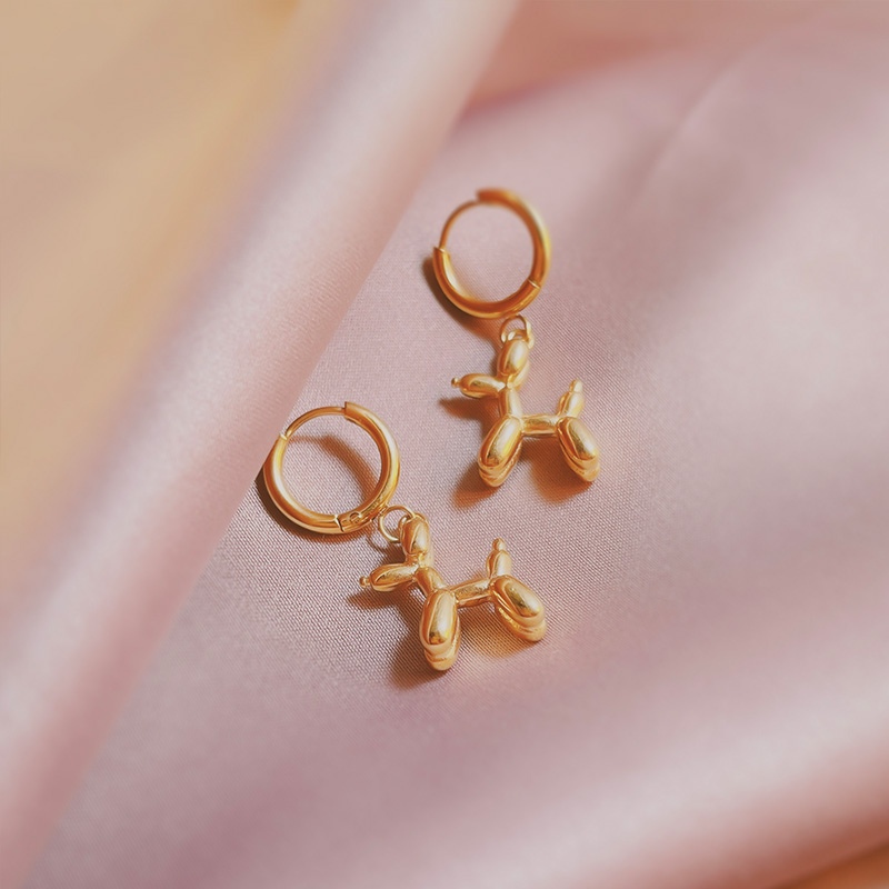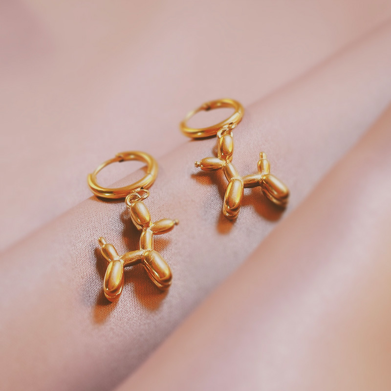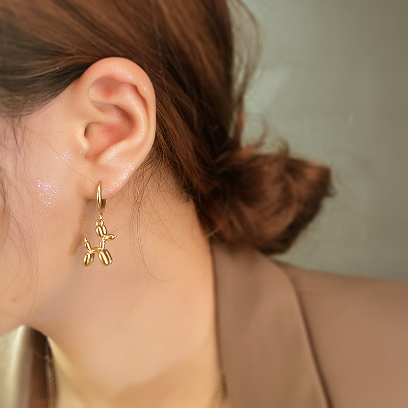 Balloon Dog Ear Clip Anti-Drop Disco Dancing Earrings Female Cute Young Adult Student Earrings Titanium Steel Material Niche Personality Ornament