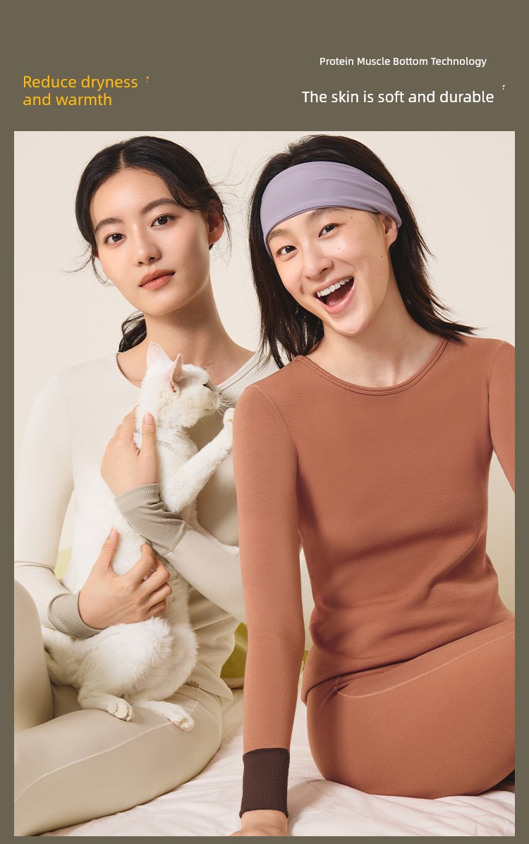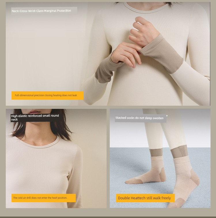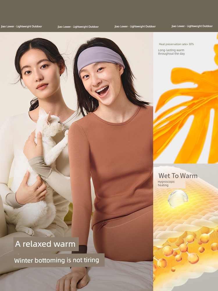 Banana Bottom Heattech Intimates Men's and Women's Suit Fleece-lined Thickened Self-Heating Winter Non-Dry Close-Fitting Long Johns