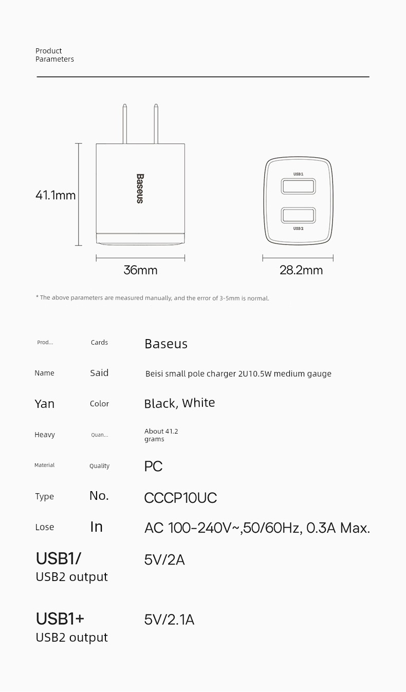 BASEUS 11pro Android Neutral Dual Port Charging Plug