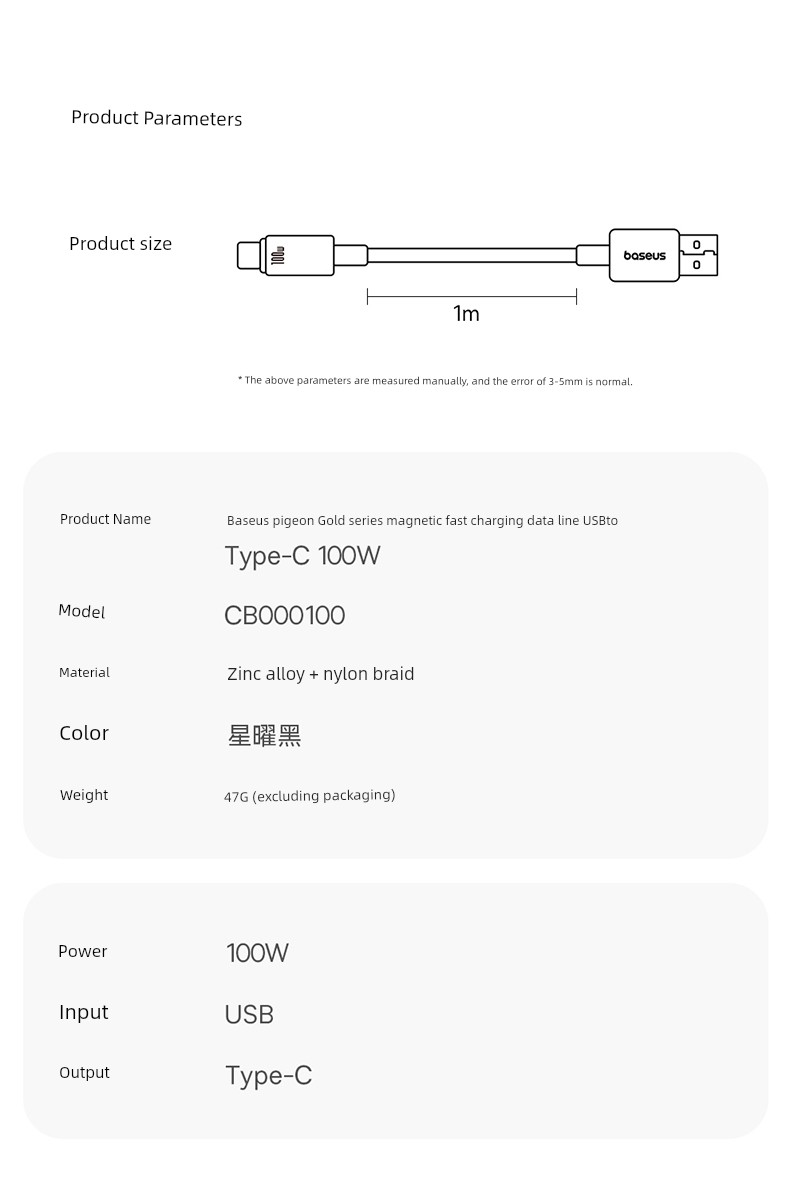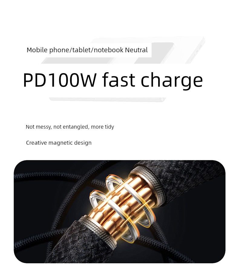 BASEUS Magnetic Suction Type-c Charger for Huawei Pura70pro Glory Vivo Xiaomi 6 A5A Data Cable Mate60 Android Phone 100 W88w Super Fast Charge USB to Tpyec
