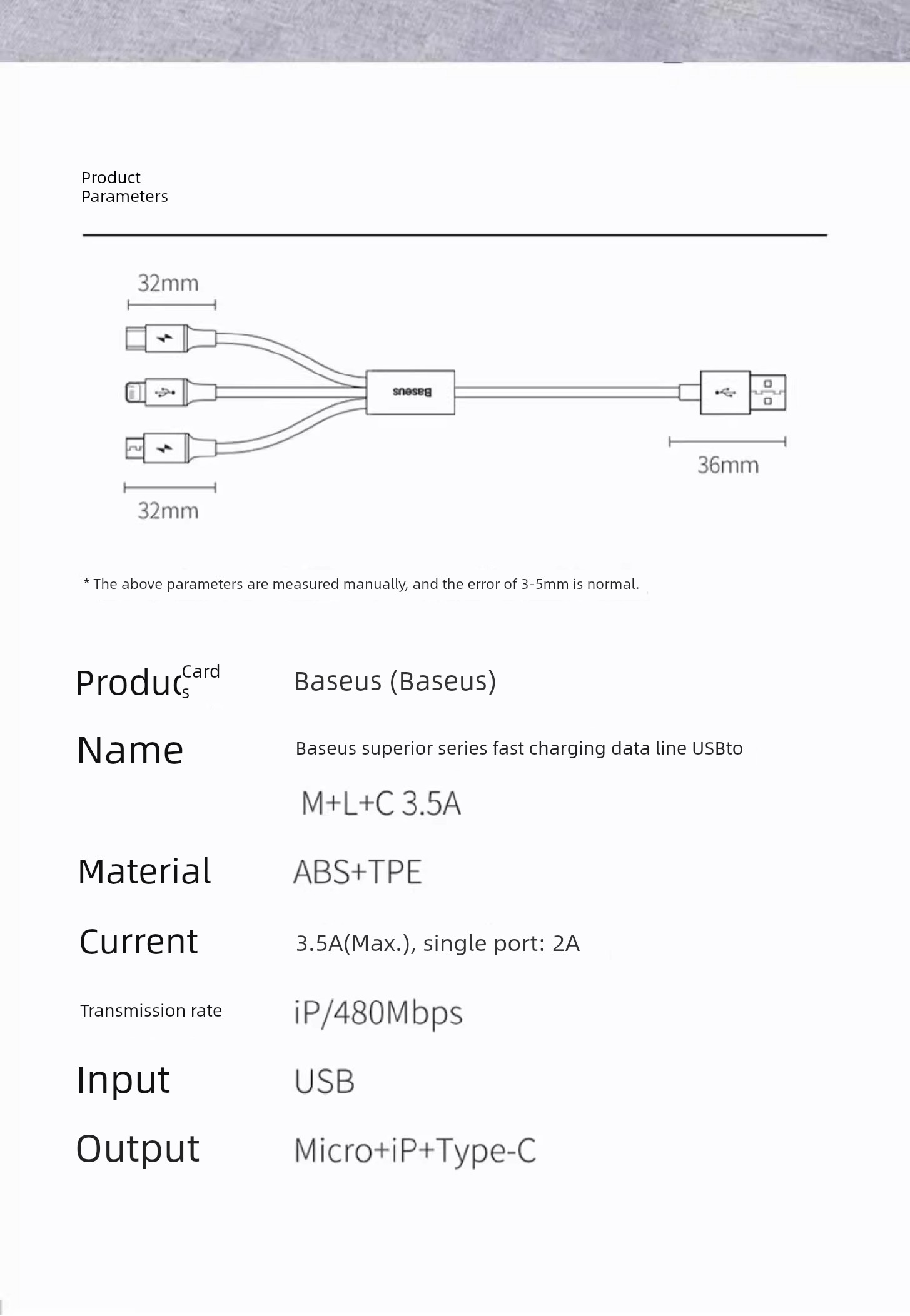 BASEUS One-to-Three Multifunctional Typec Charging Cable