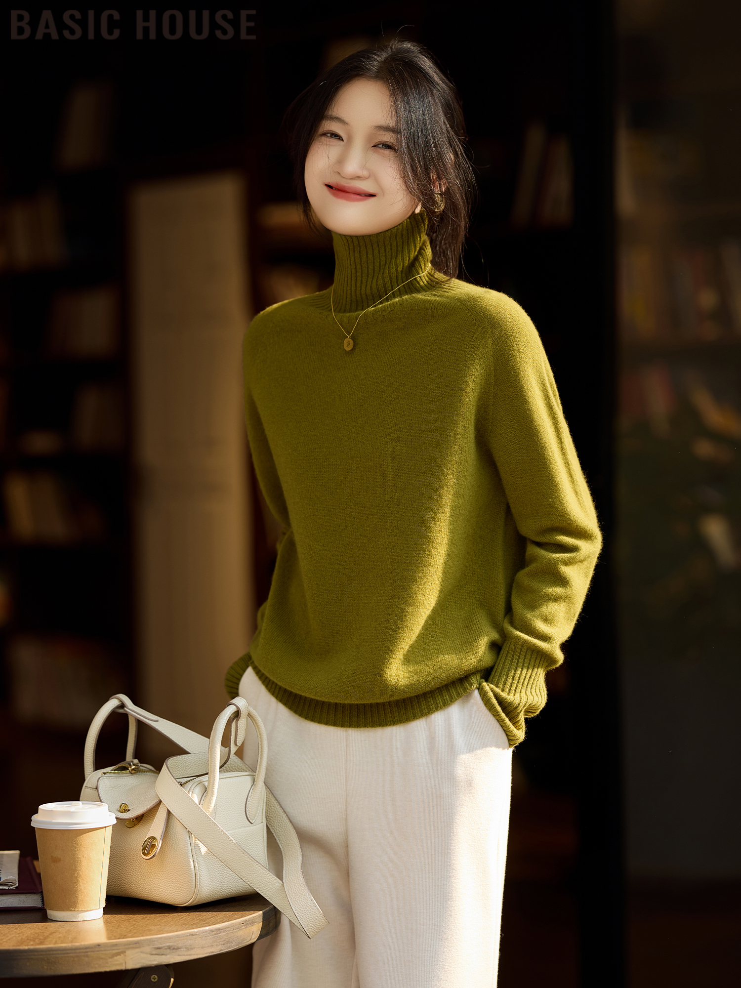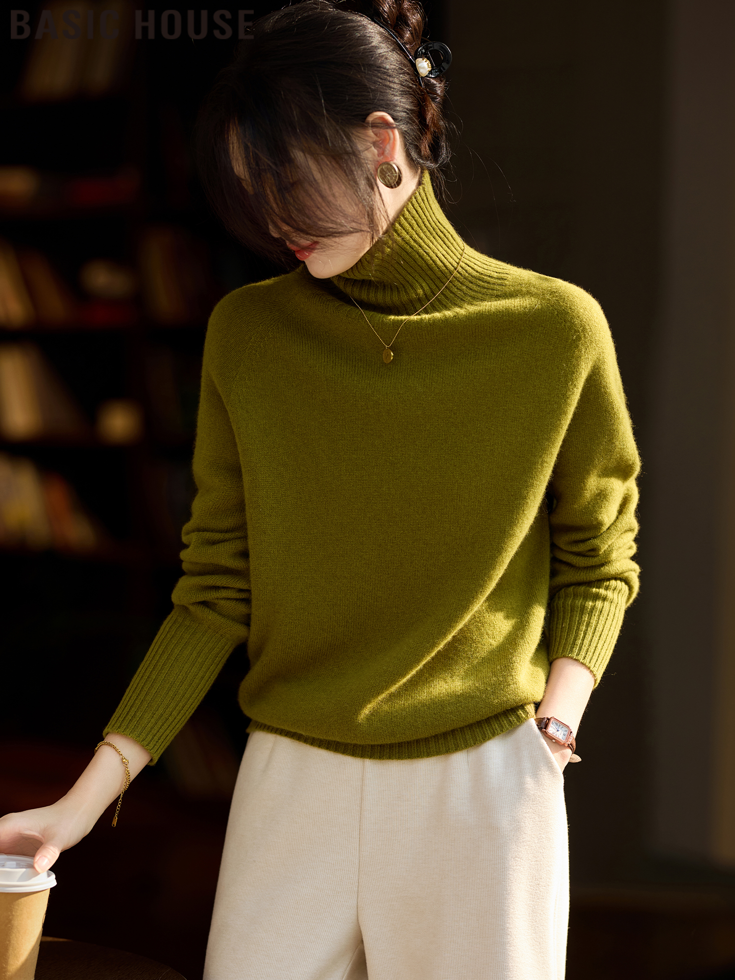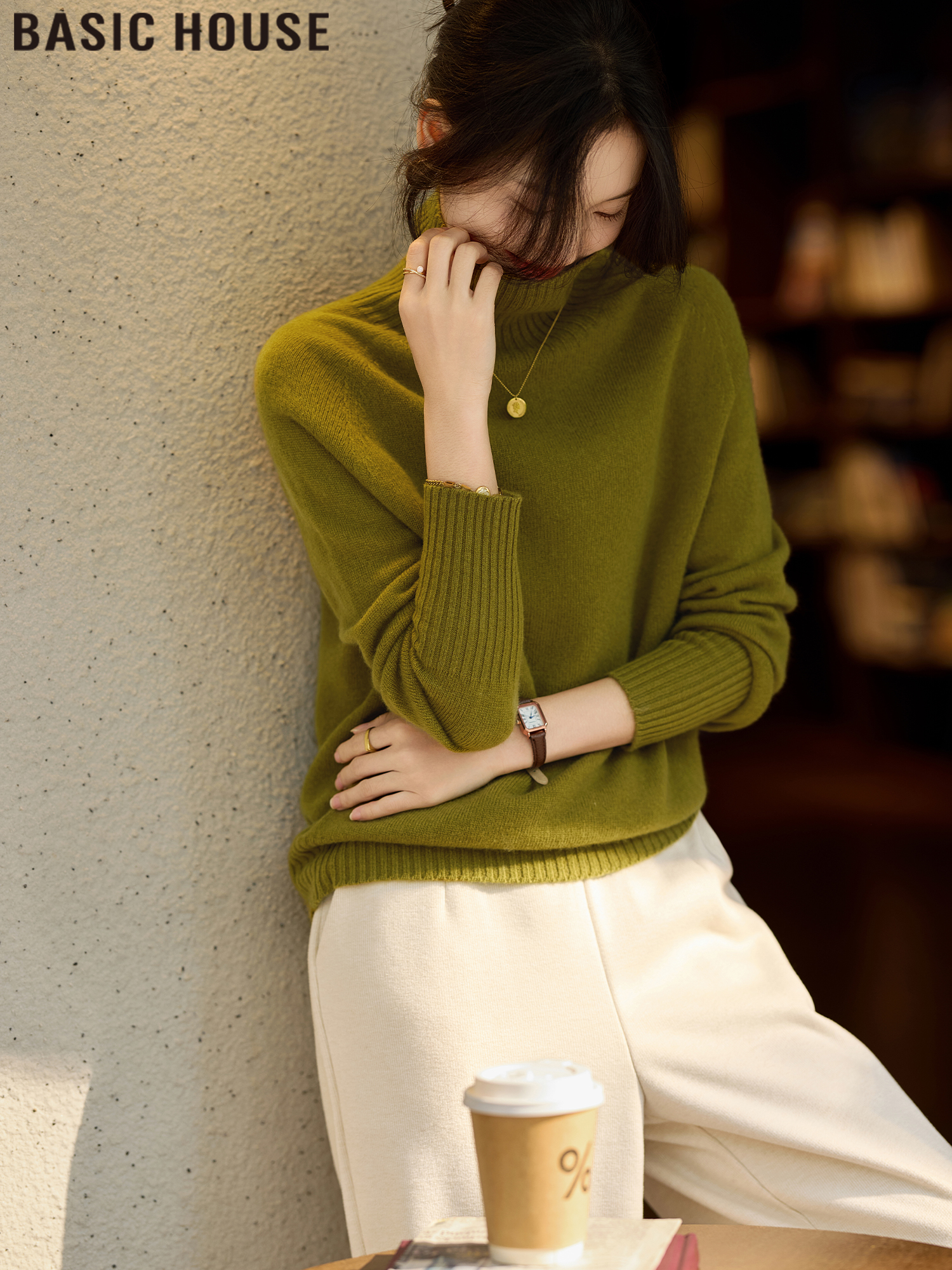Basic House/Baijiahao Dopamine Wool Turtleneck Knitted Bottoming Shirt Women Spring Pile Collar Sweater