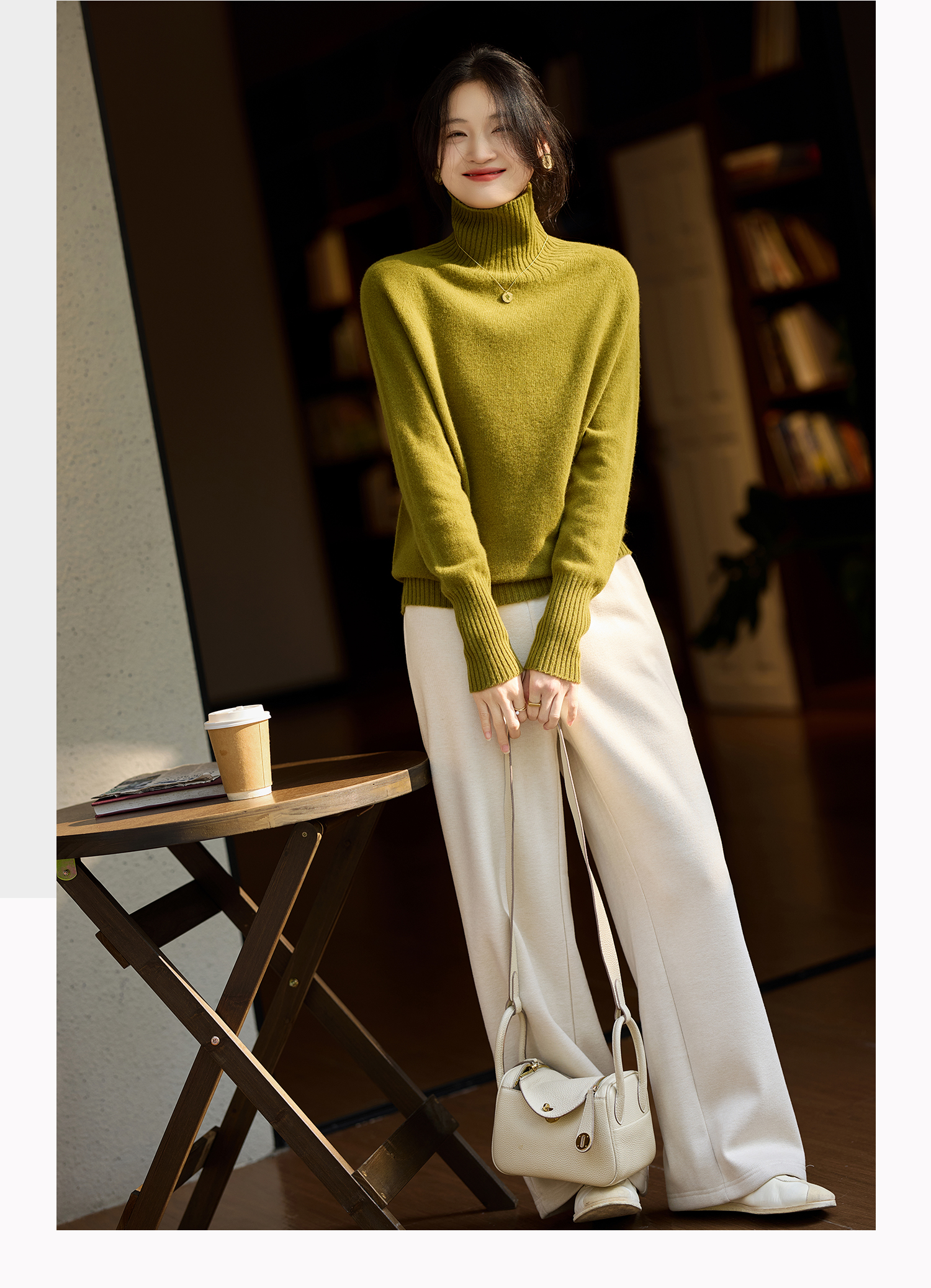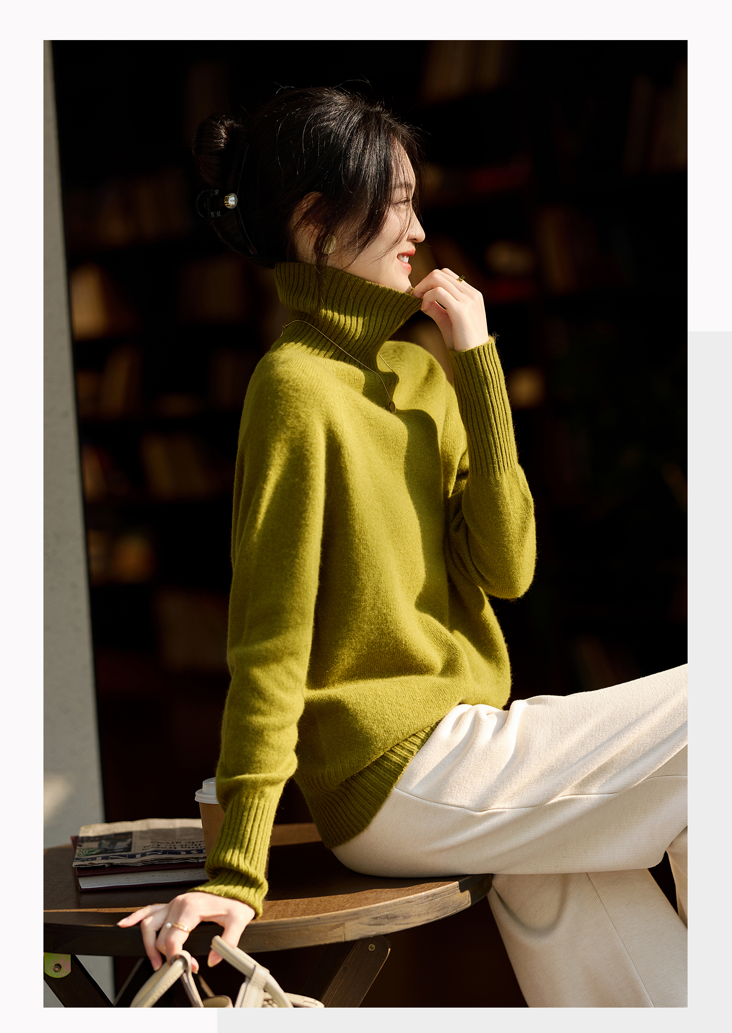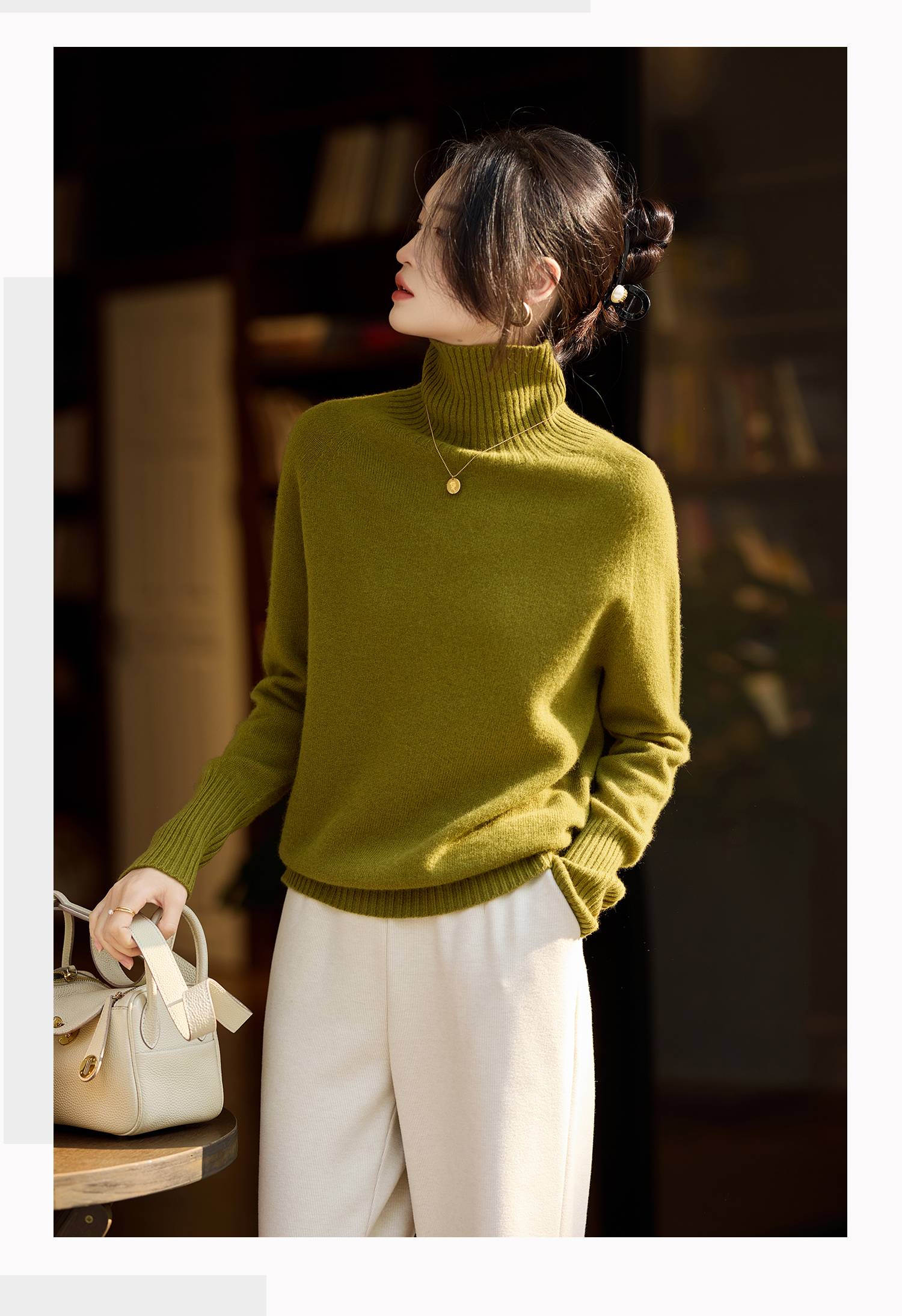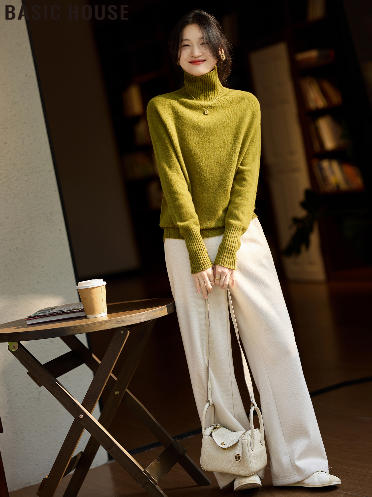 Basic House/Baijiahao Dopamine Wool Turtleneck Knitted Bottoming Shirt Women Spring Pile Collar Sweater