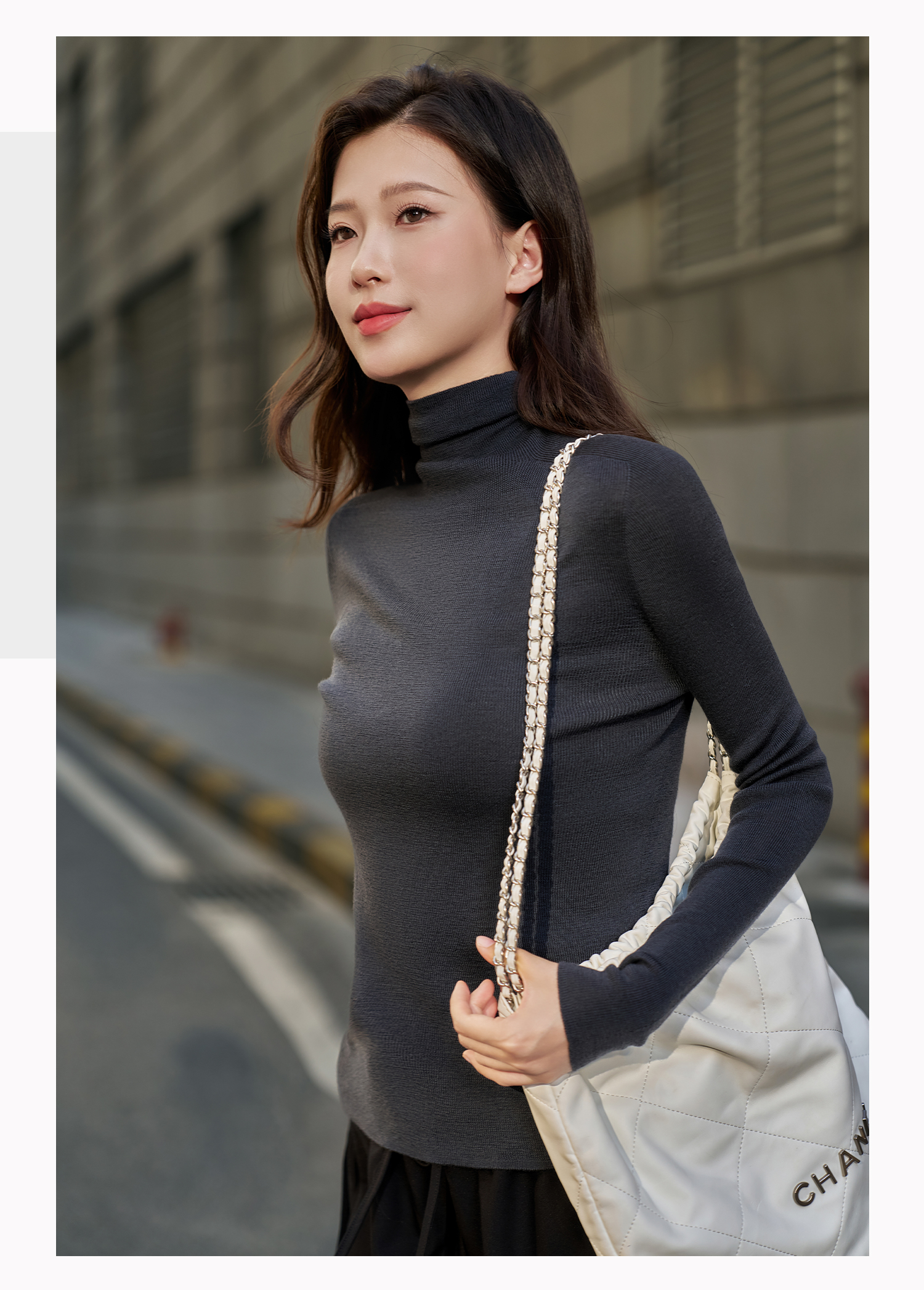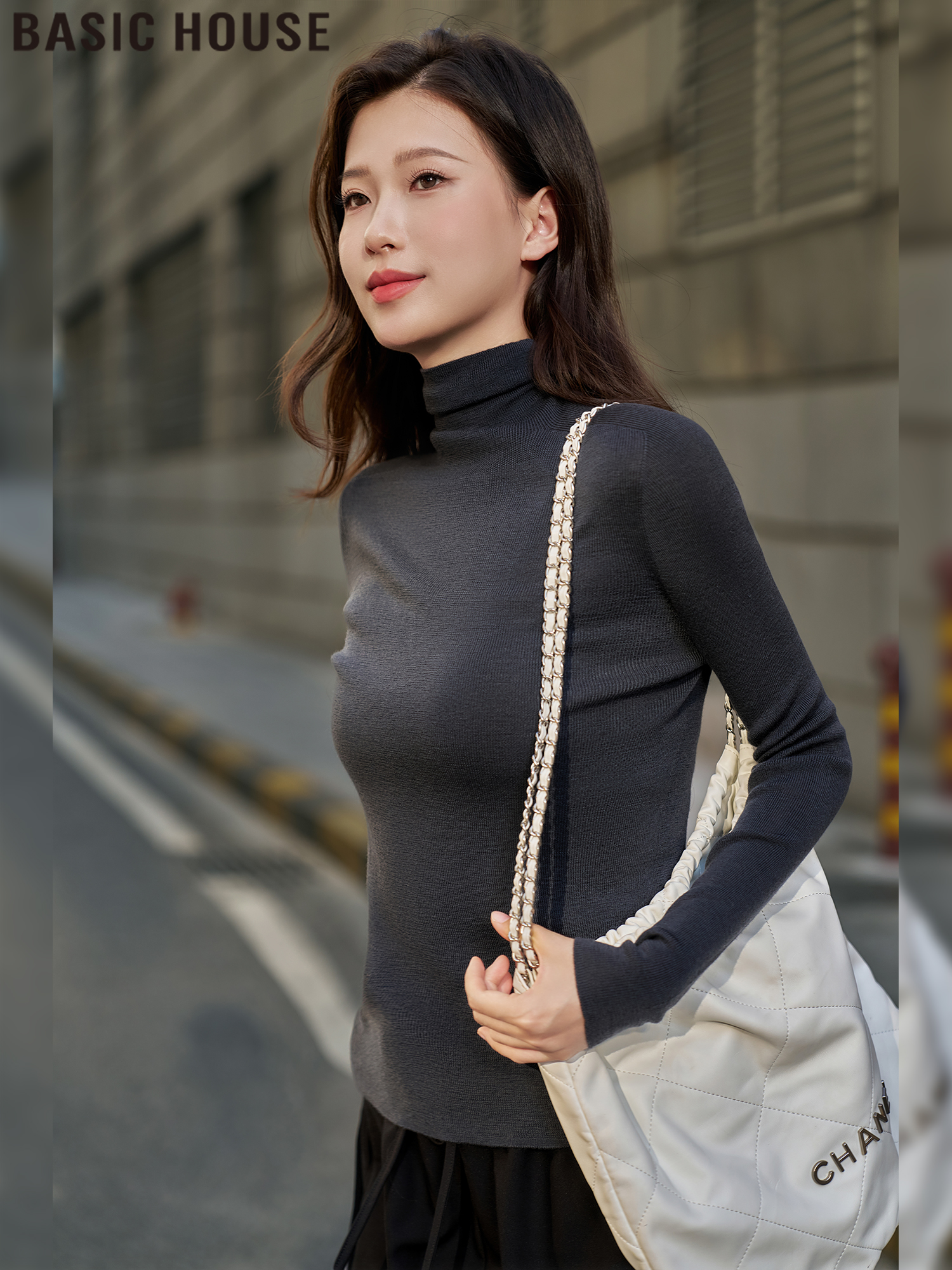 Basic House/Baijiahao High Neck Inner Wear Base Elasticity Wool Knitwear Ladies 2025 Spring New Arrival
