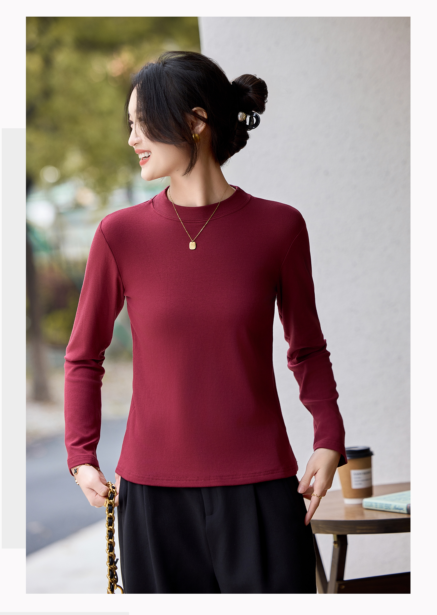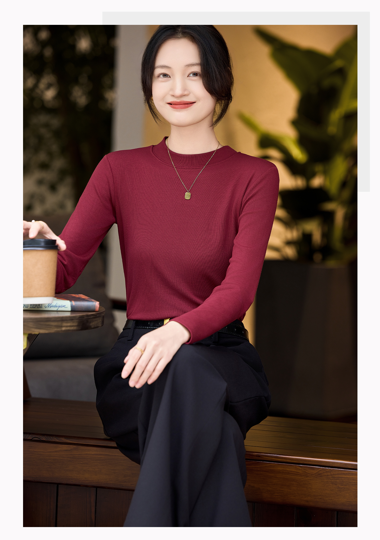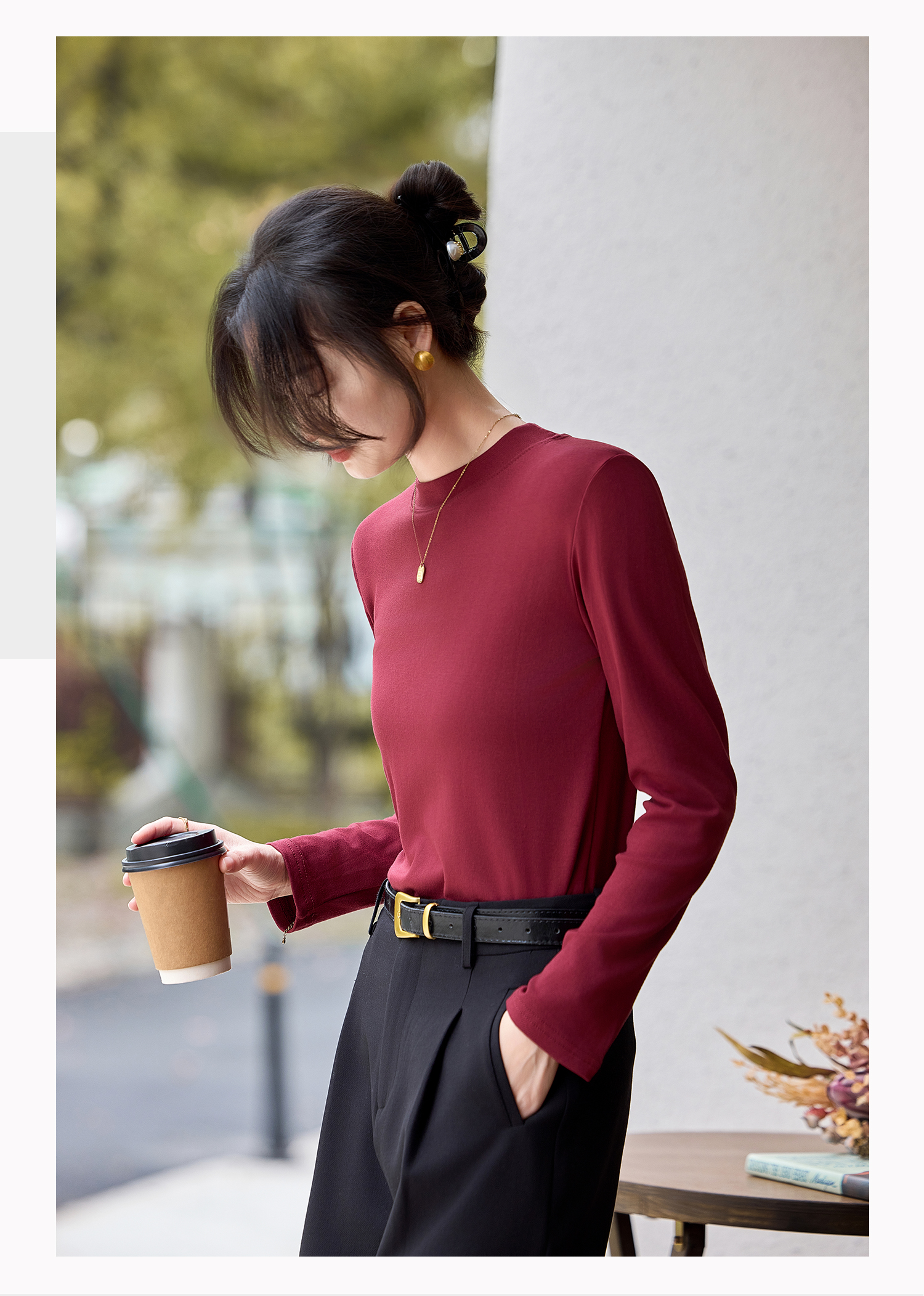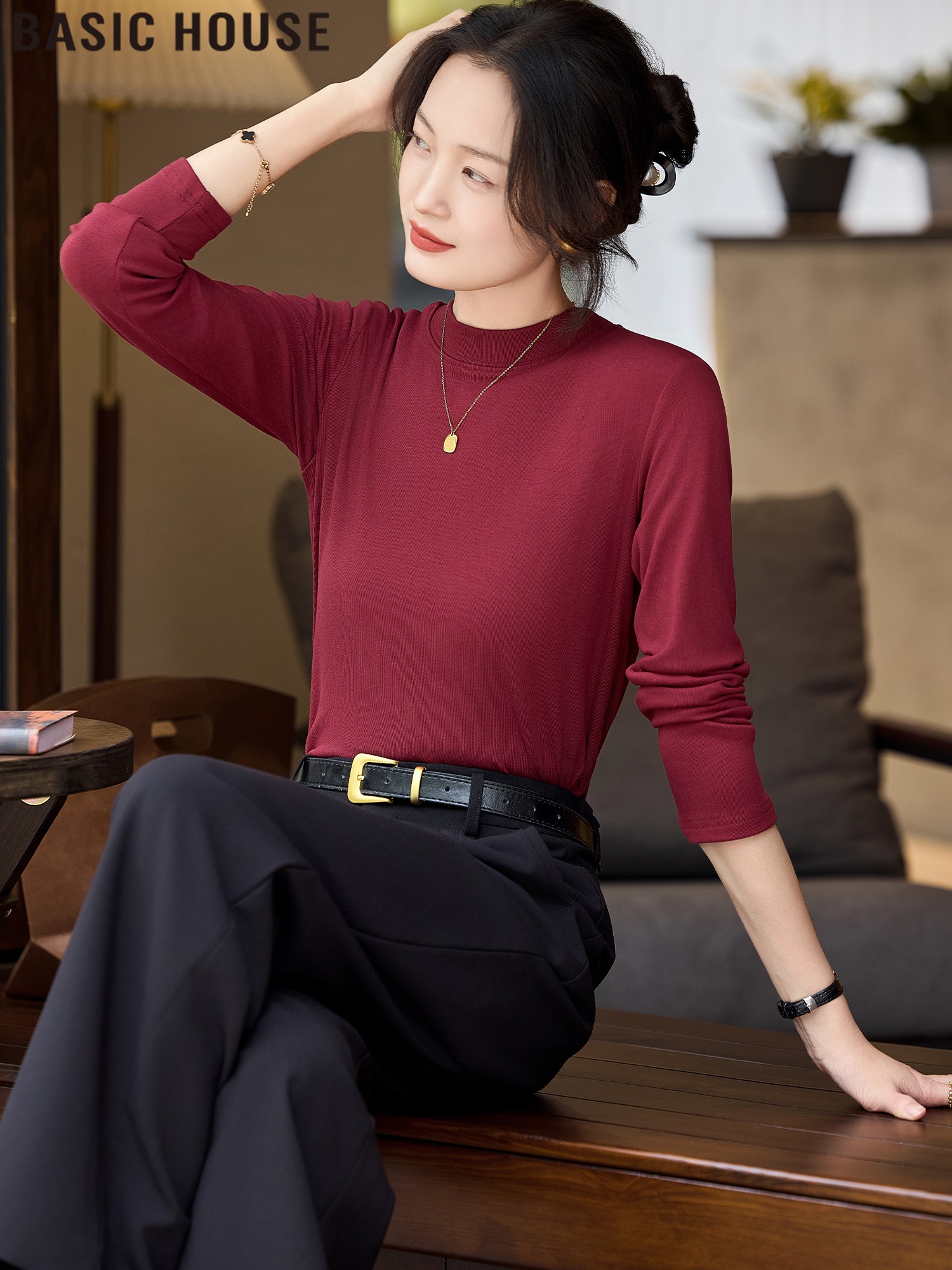 Basic House/Baijiahao New Year Red Half Turtleneck Shoulder Inner Bottoming Shirt Women's Spring 2025 New Arrival