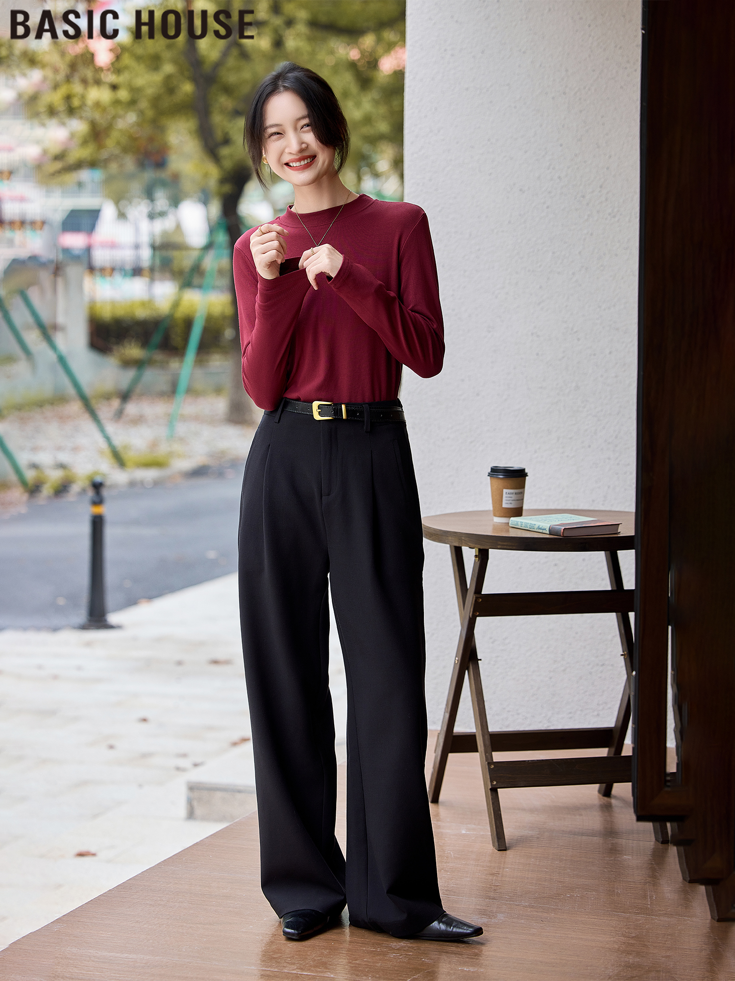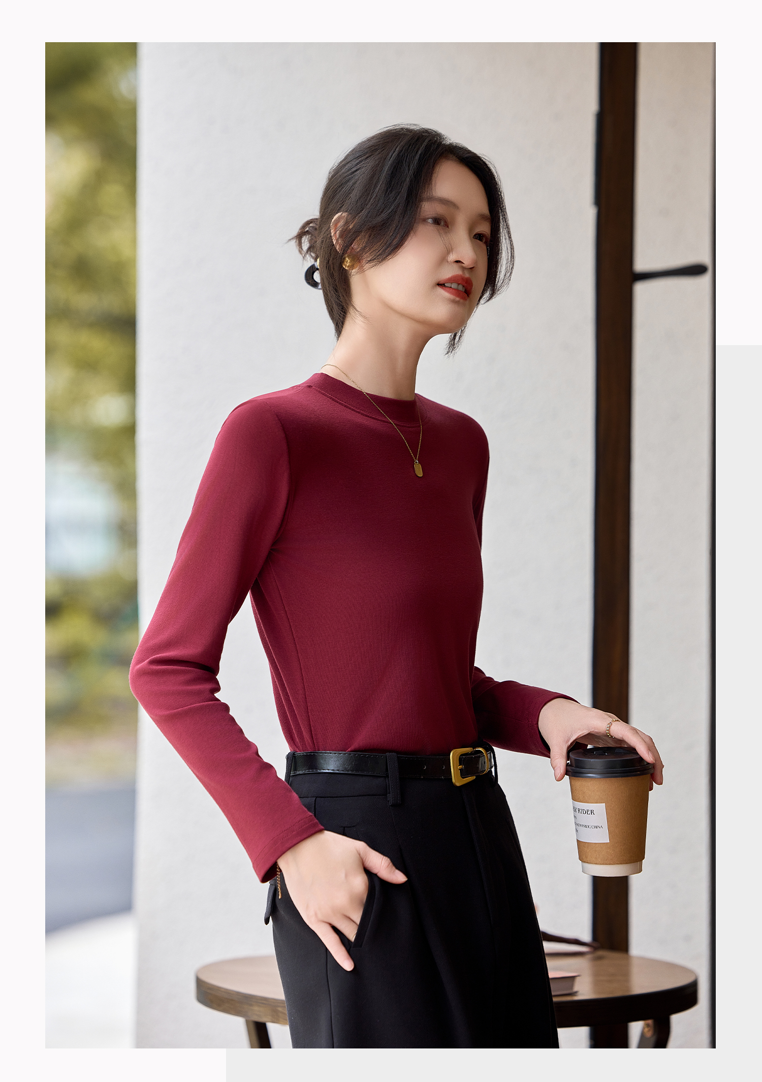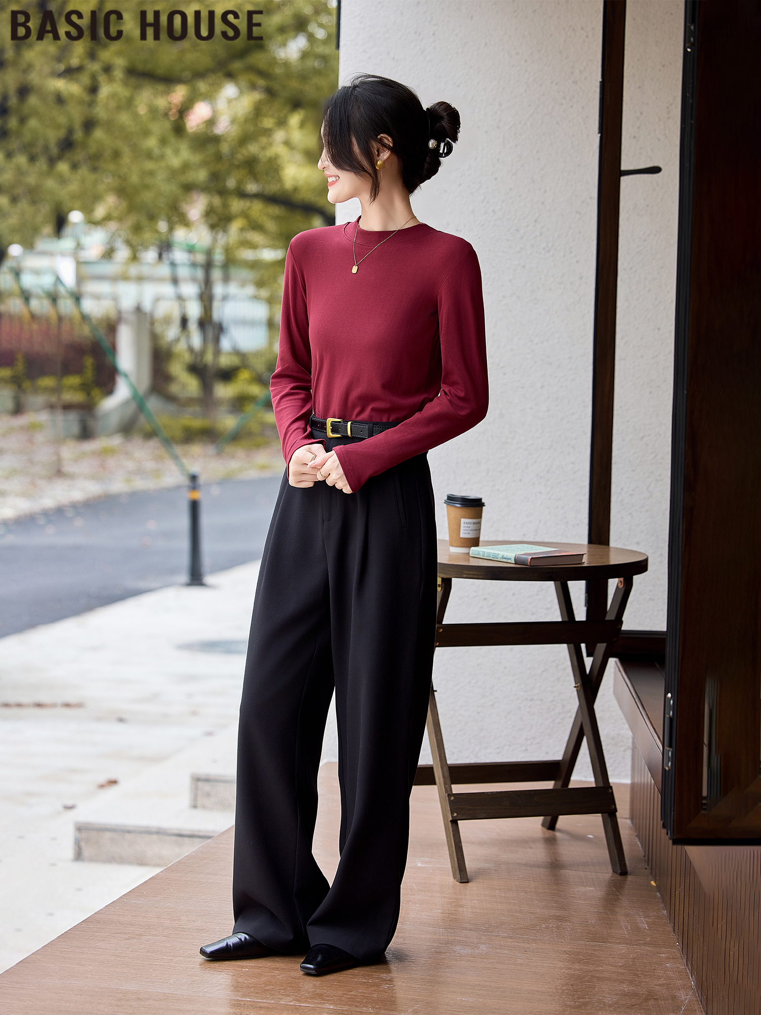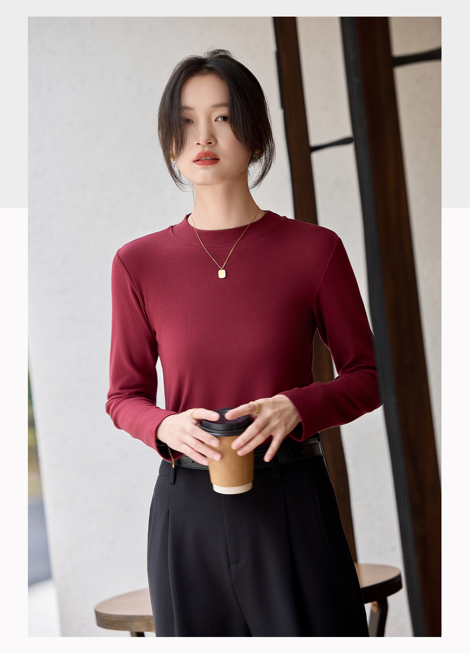 Basic House/Baijiahao New Year Red Half Turtleneck Shoulder Inner Bottoming Shirt Women's Spring 2025 New Arrival