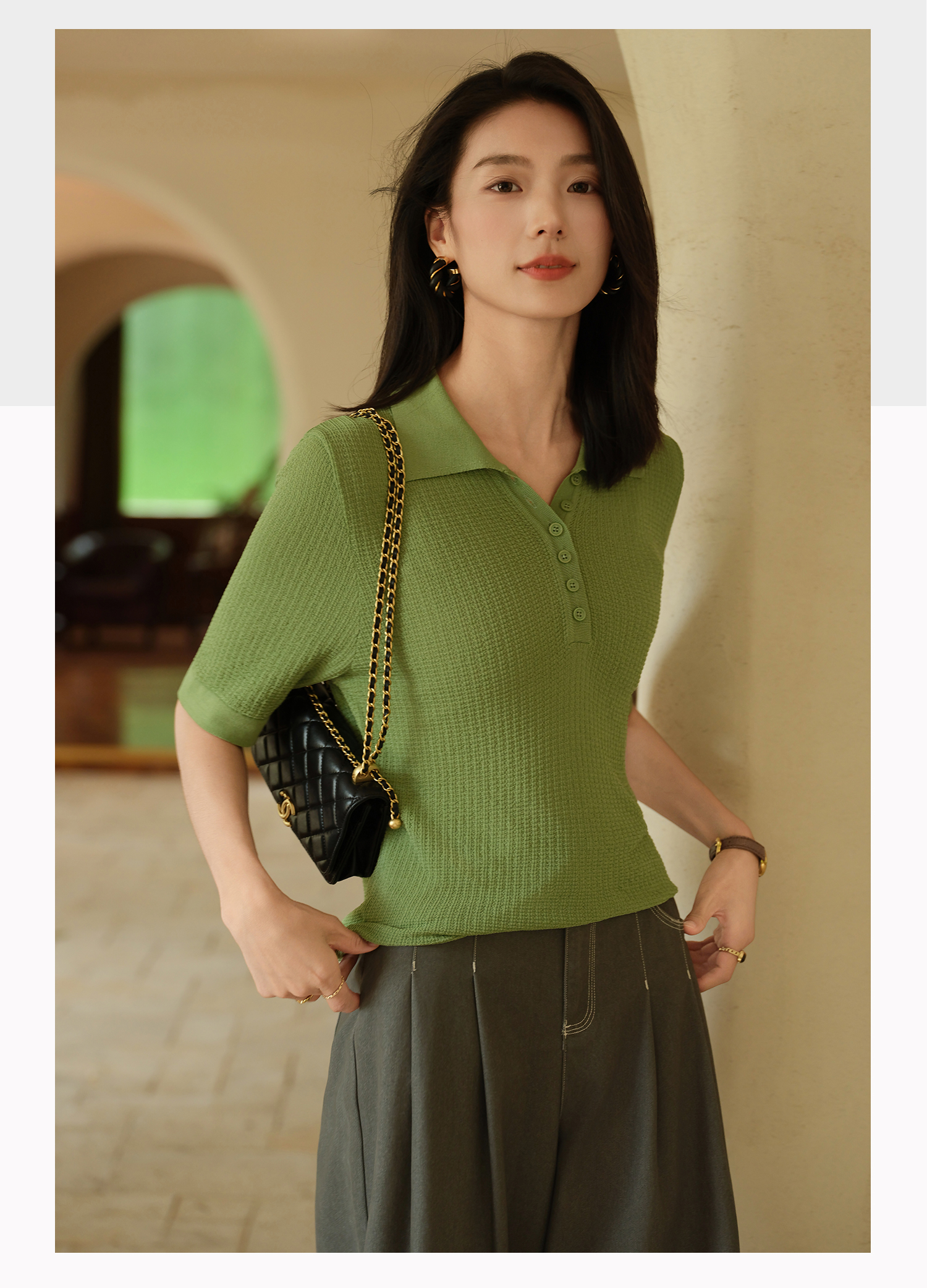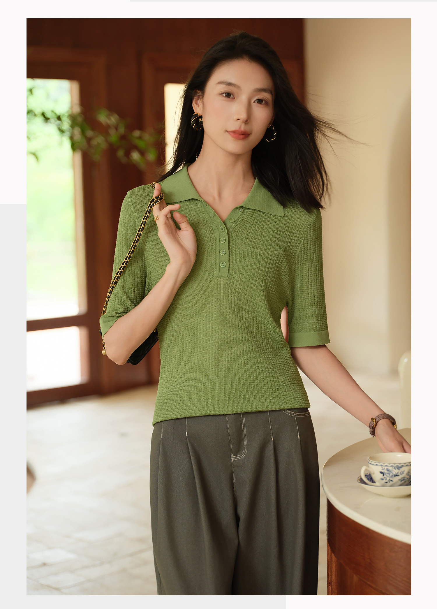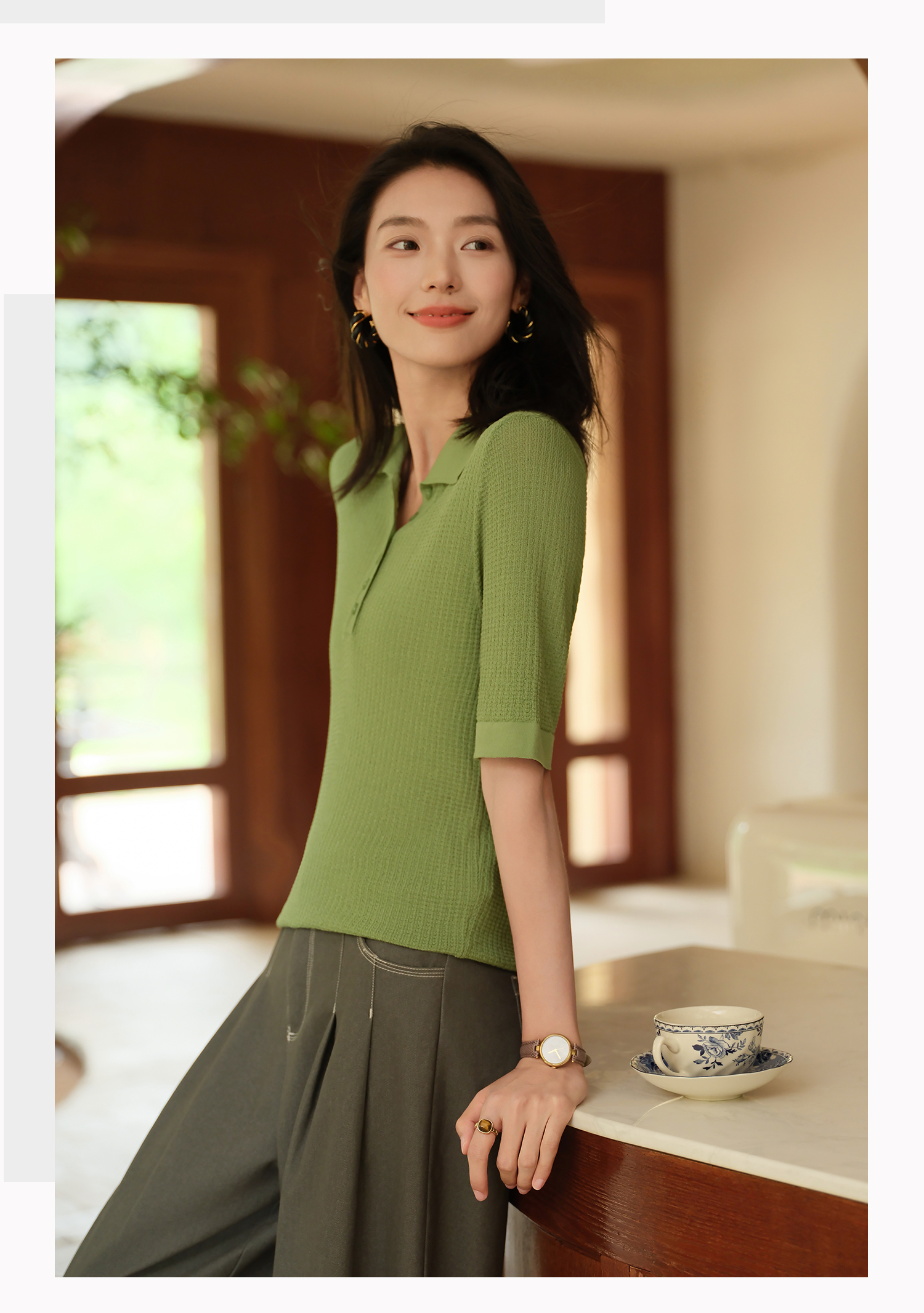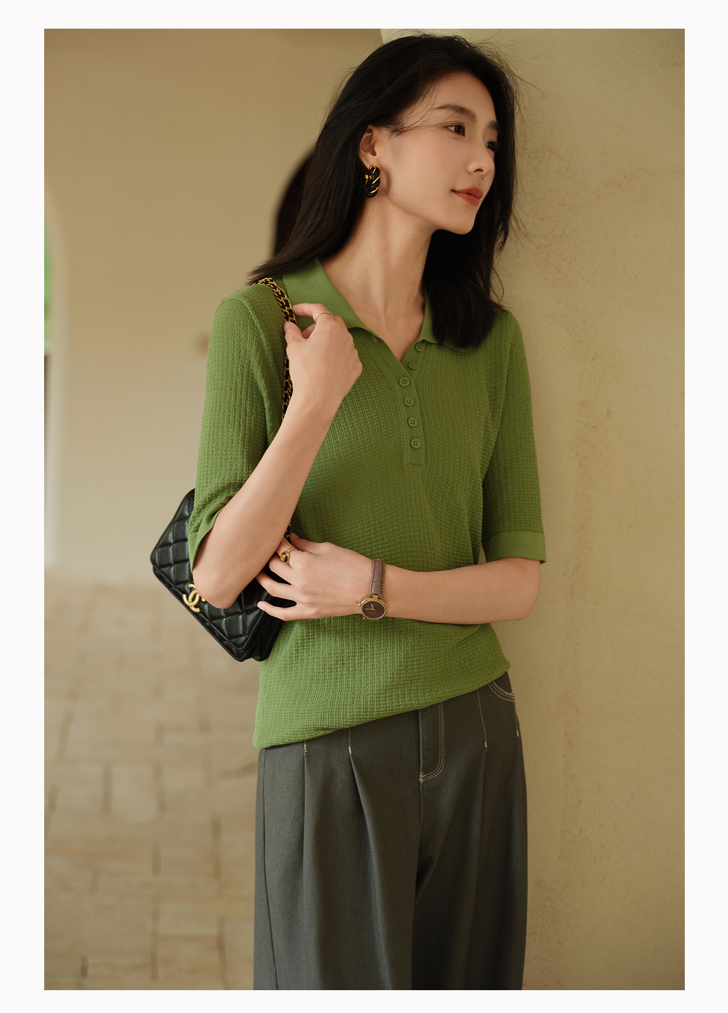 Basic House/Baijiahao Recovery Green Polo Collar Stretch Short Sleeve T-shirt Tops Female 2025 Summer New Arrival