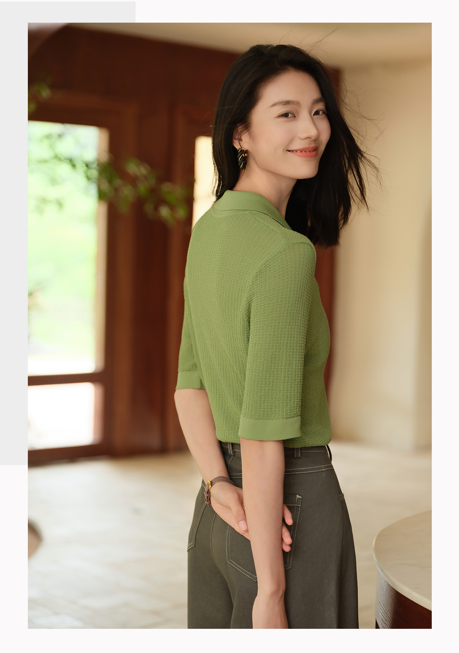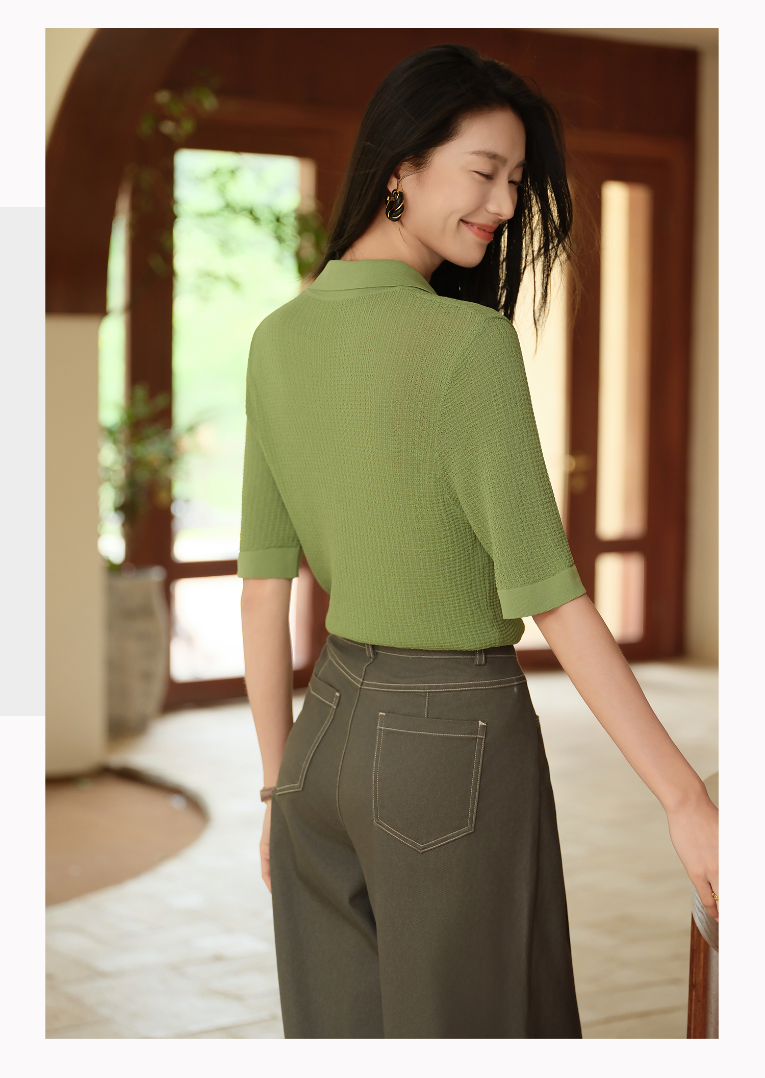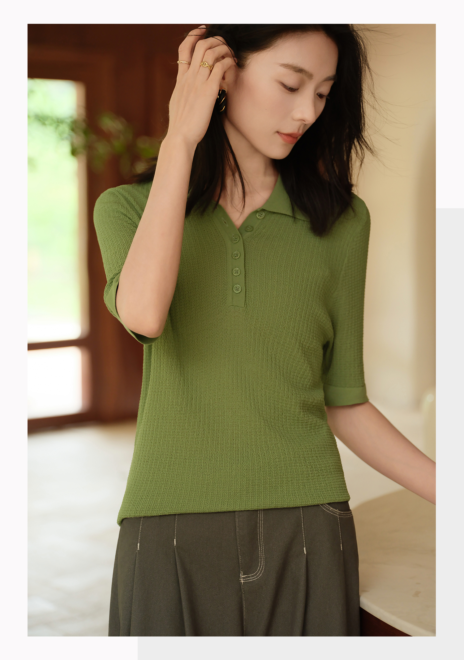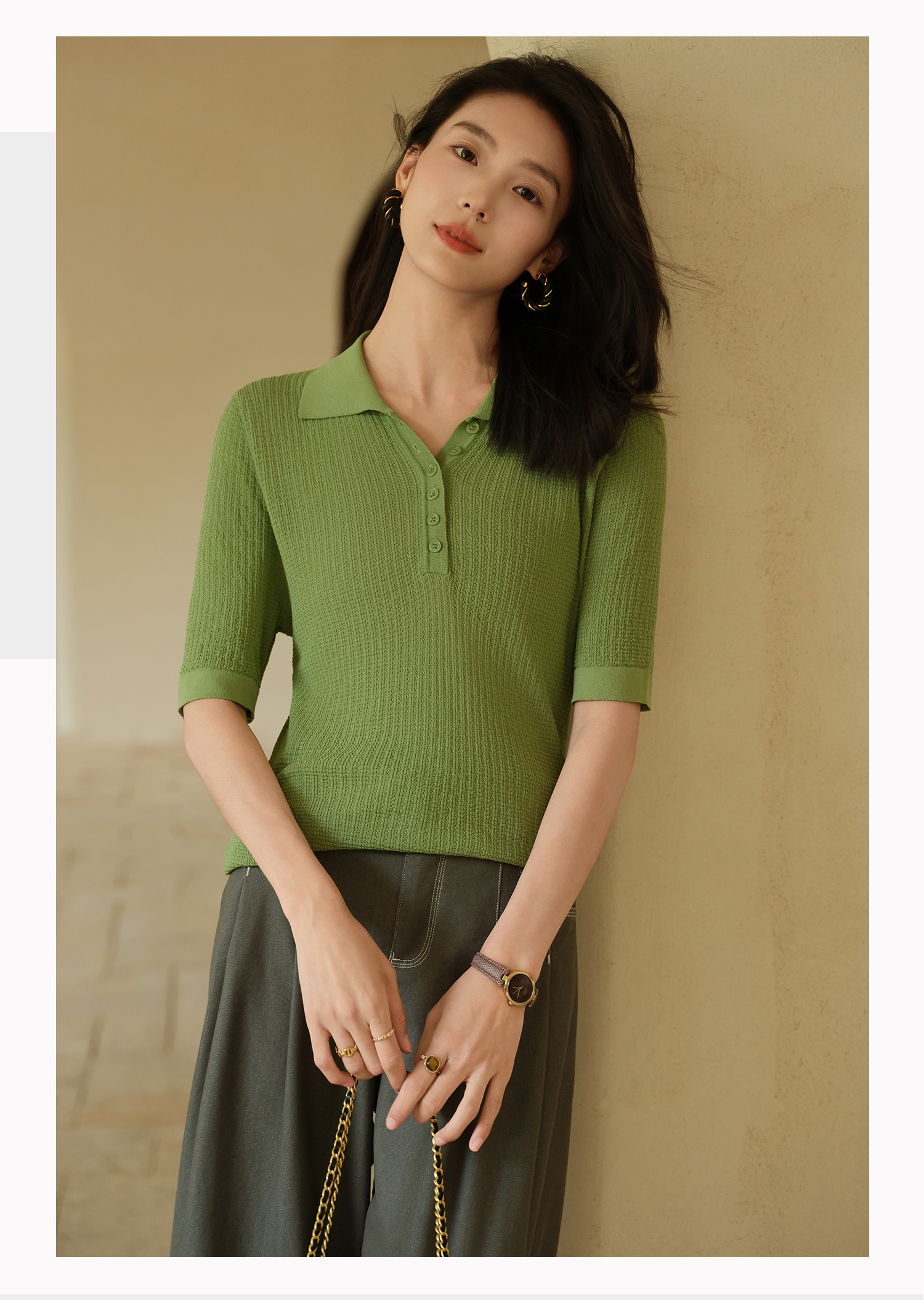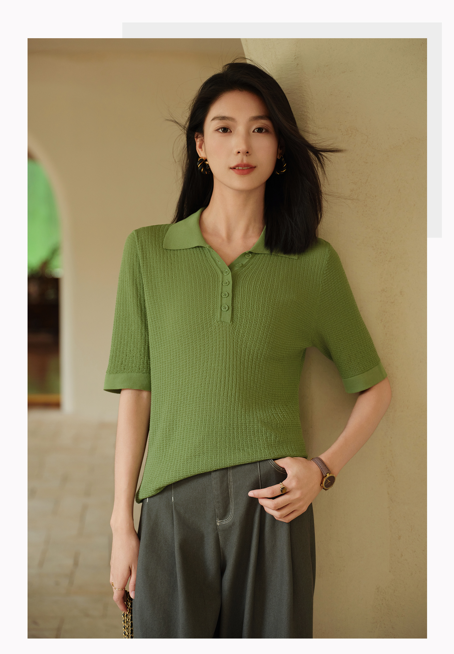 Basic House/Baijiahao Recovery Green Polo Collar Stretch Short Sleeve T-shirt Tops Female 2025 Summer New Arrival