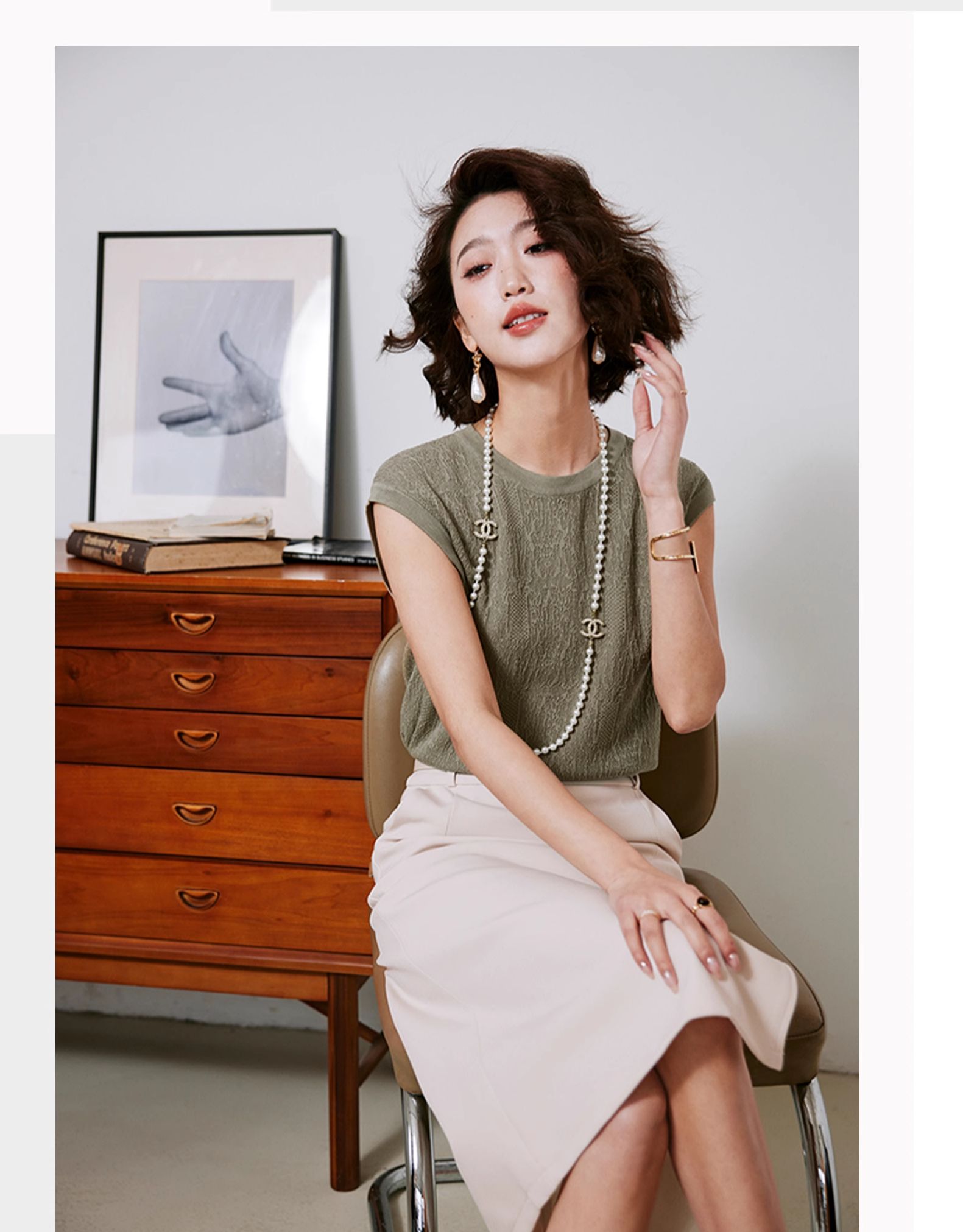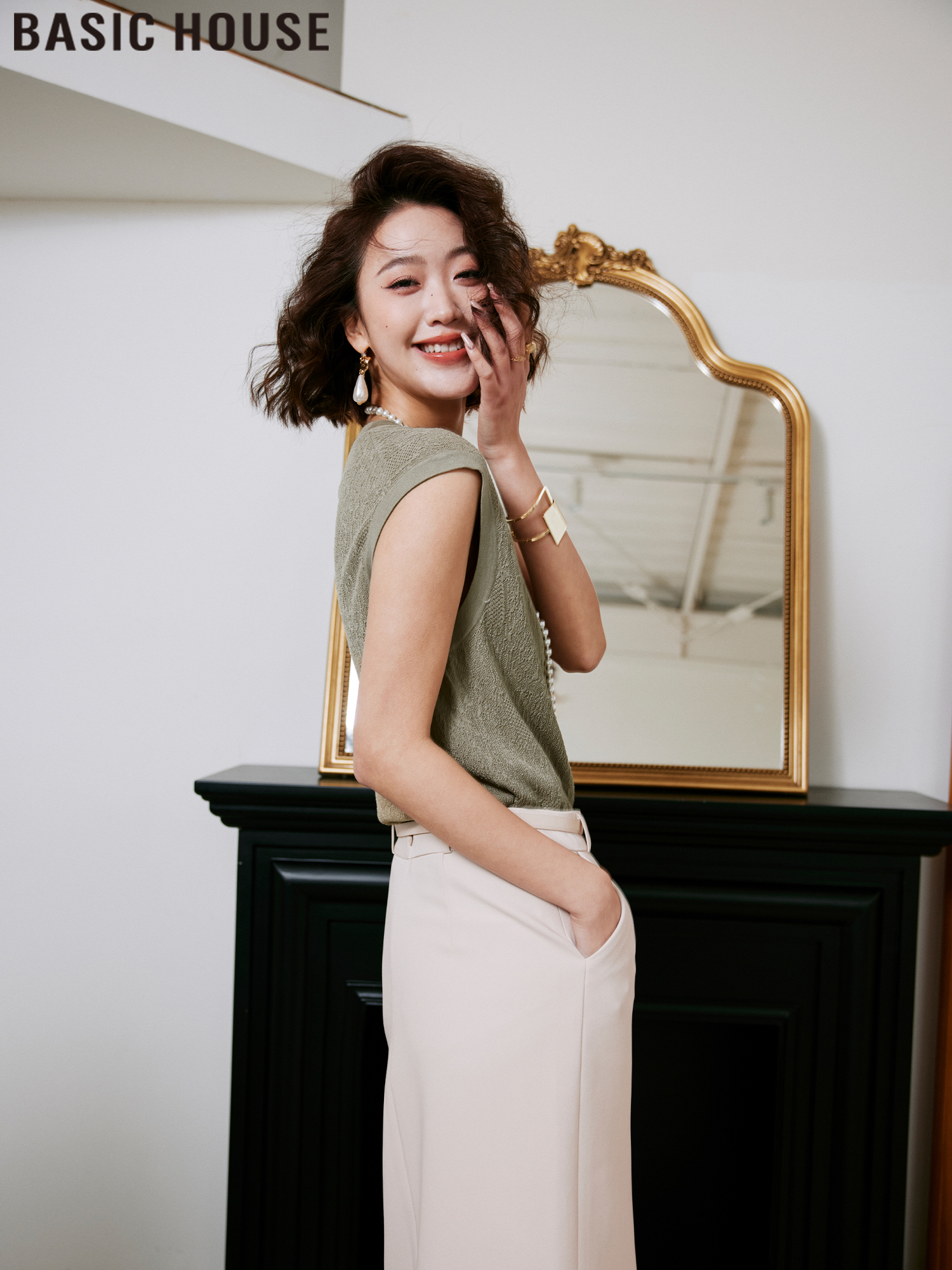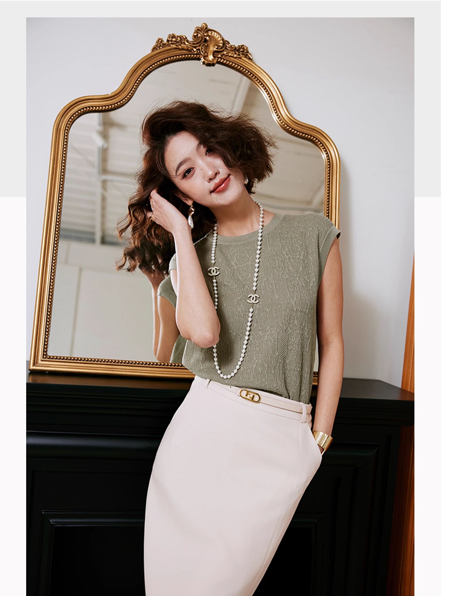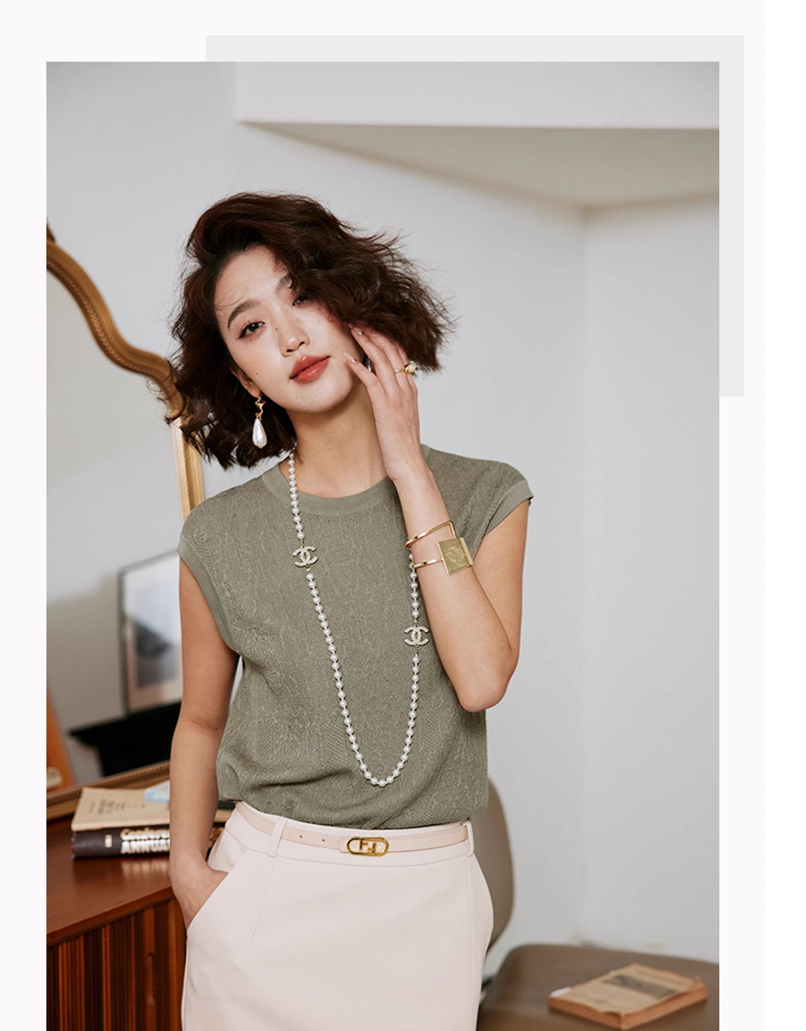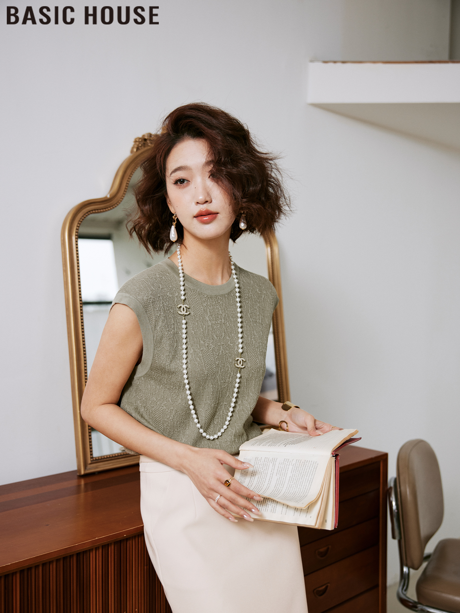 Basic House/Baijiahao Retro Jacquard Flying Sleeves Loose Thin Ice Silk Sweater Tops Women's Summer