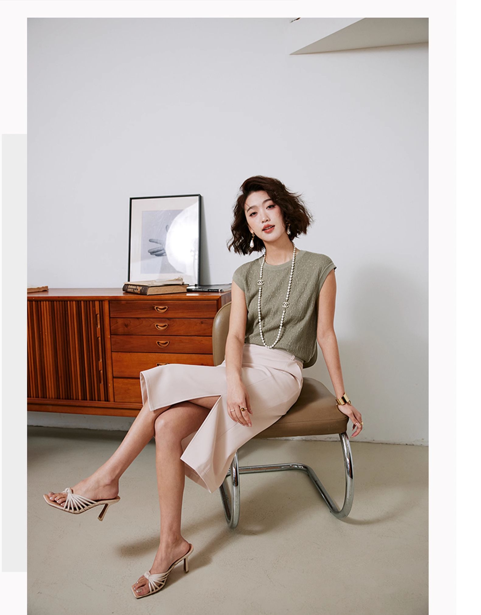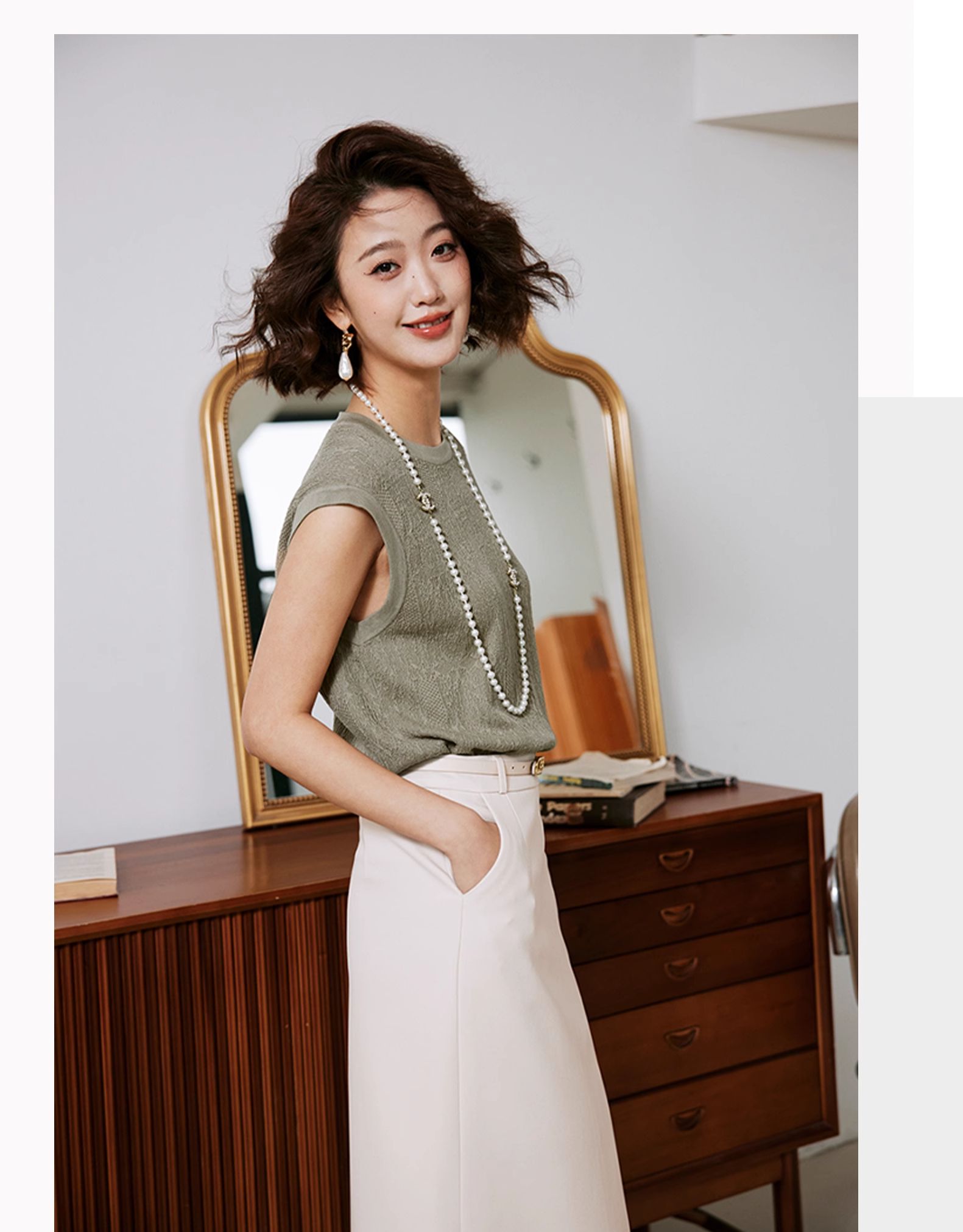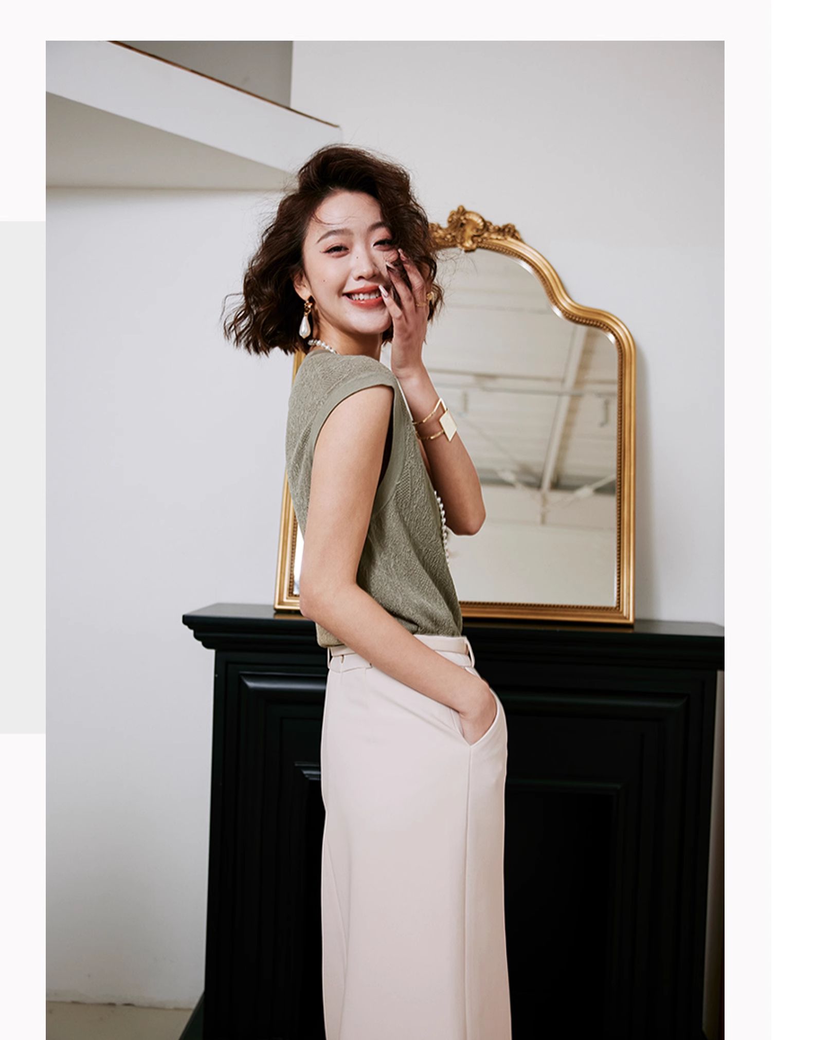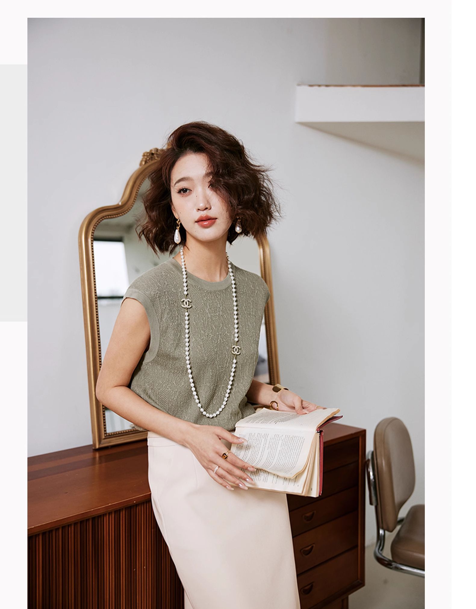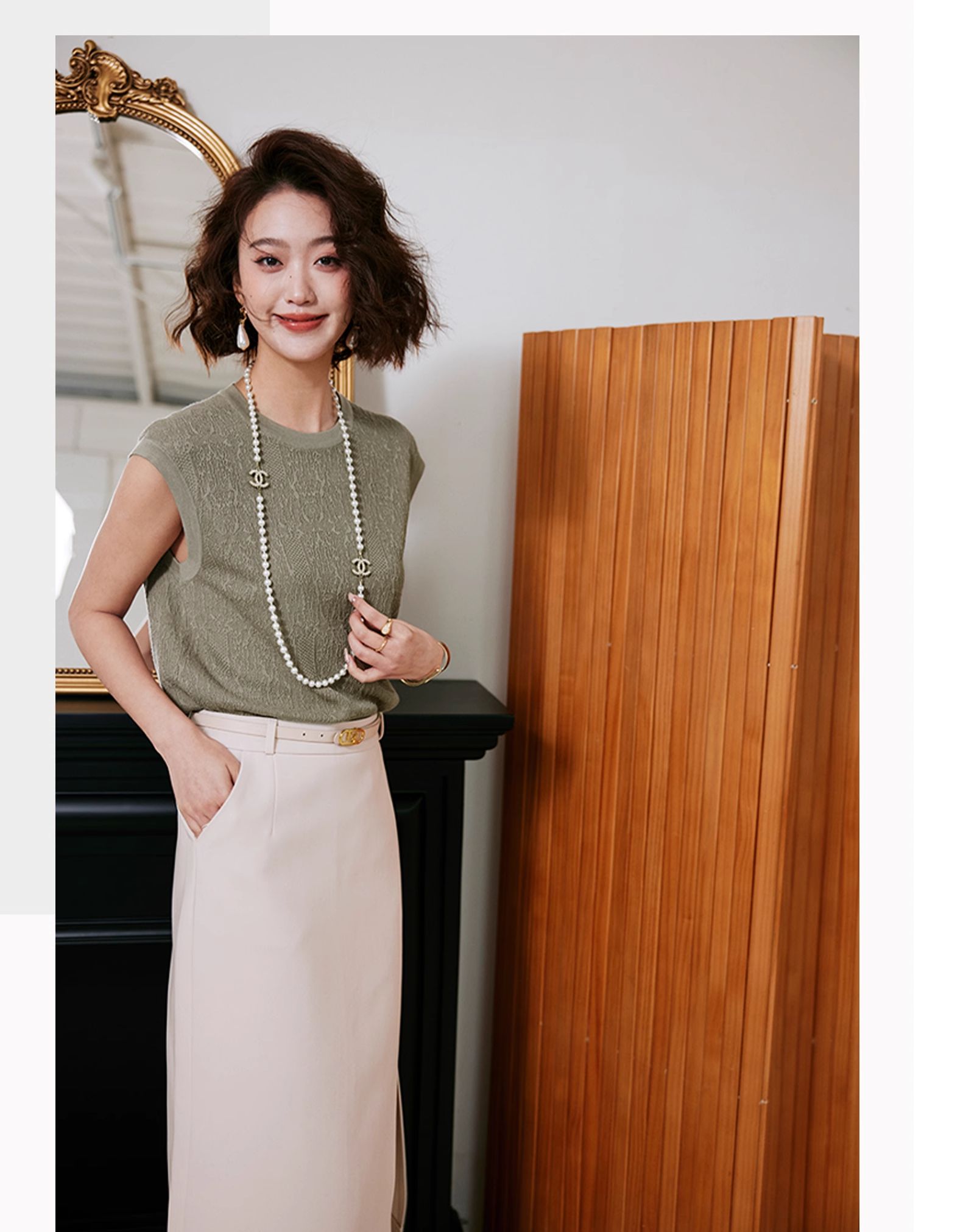 Basic House/Baijiahao Retro Jacquard Flying Sleeves Loose Thin Ice Silk Sweater Tops Women's Summer