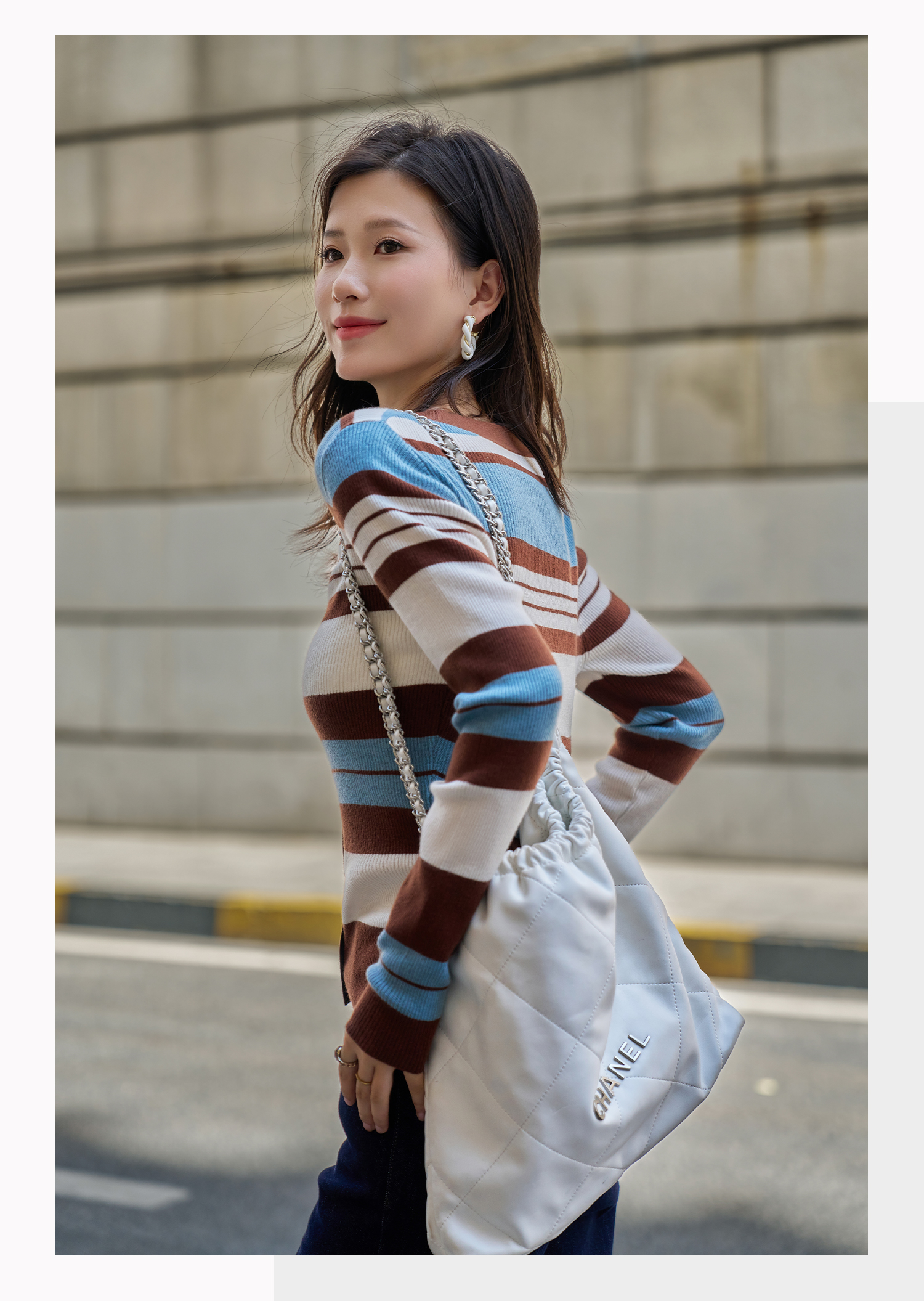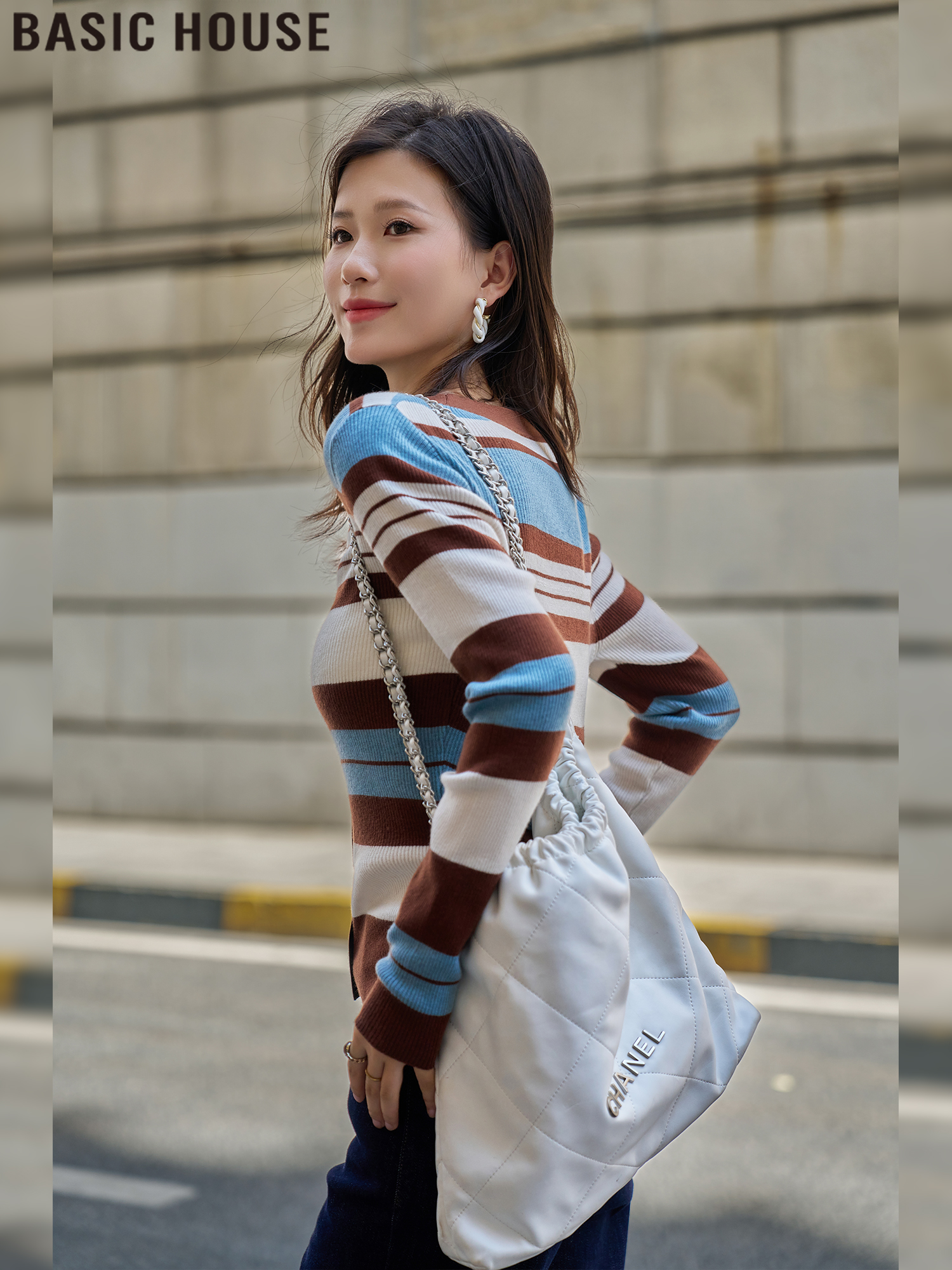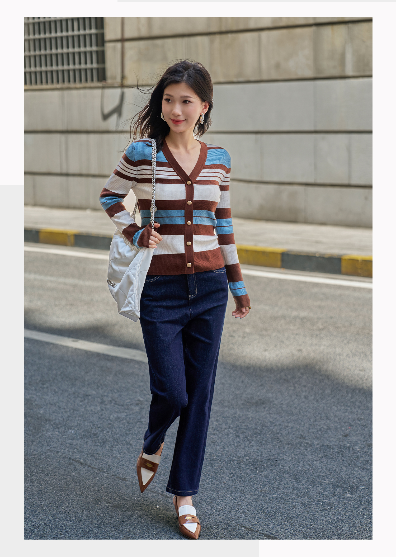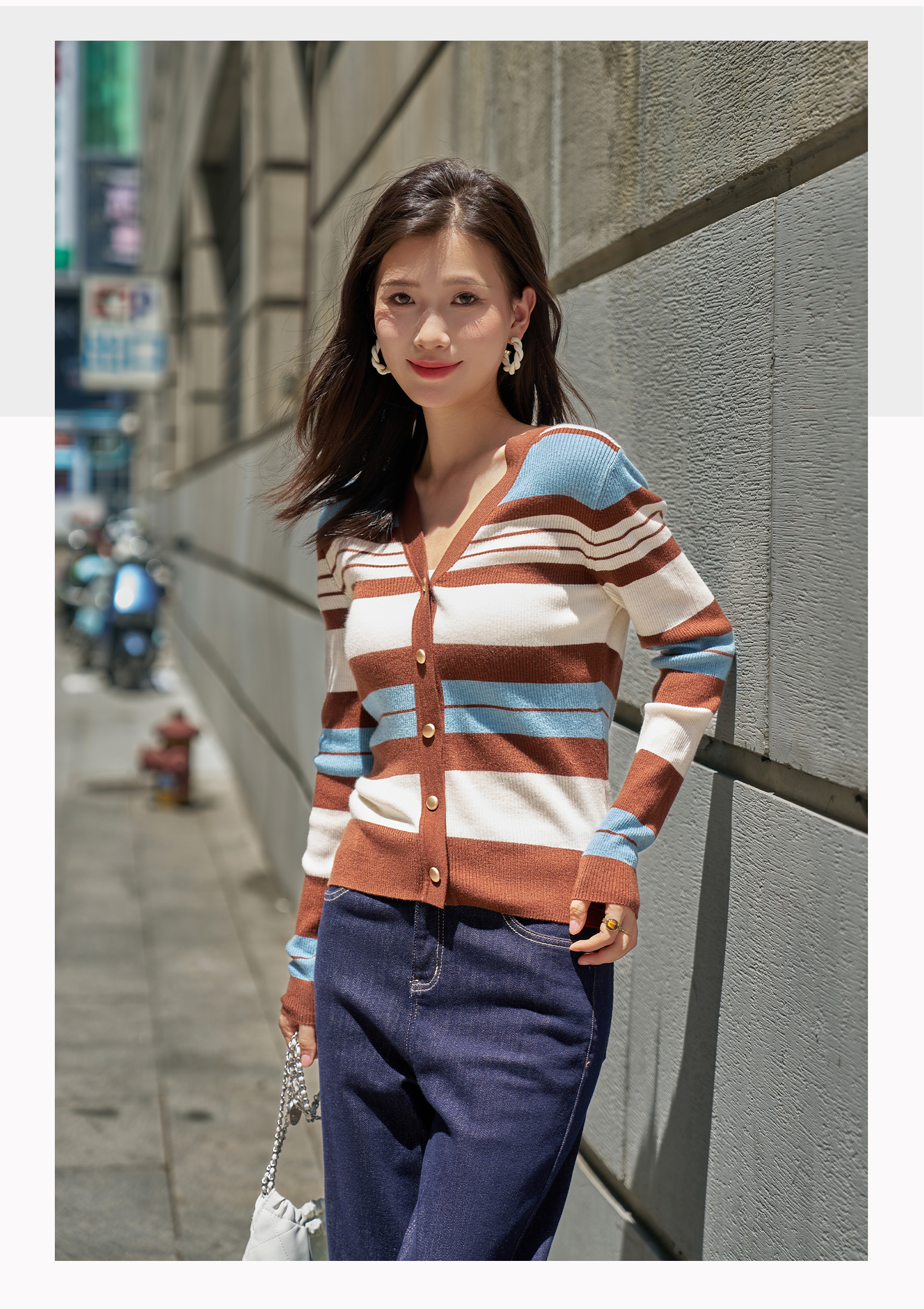 Basic House/Baijiahao V-Collar Contrast Color Striped Short Style Figure Flattering Knit Cardigan Female 2025 Spring New Arrival